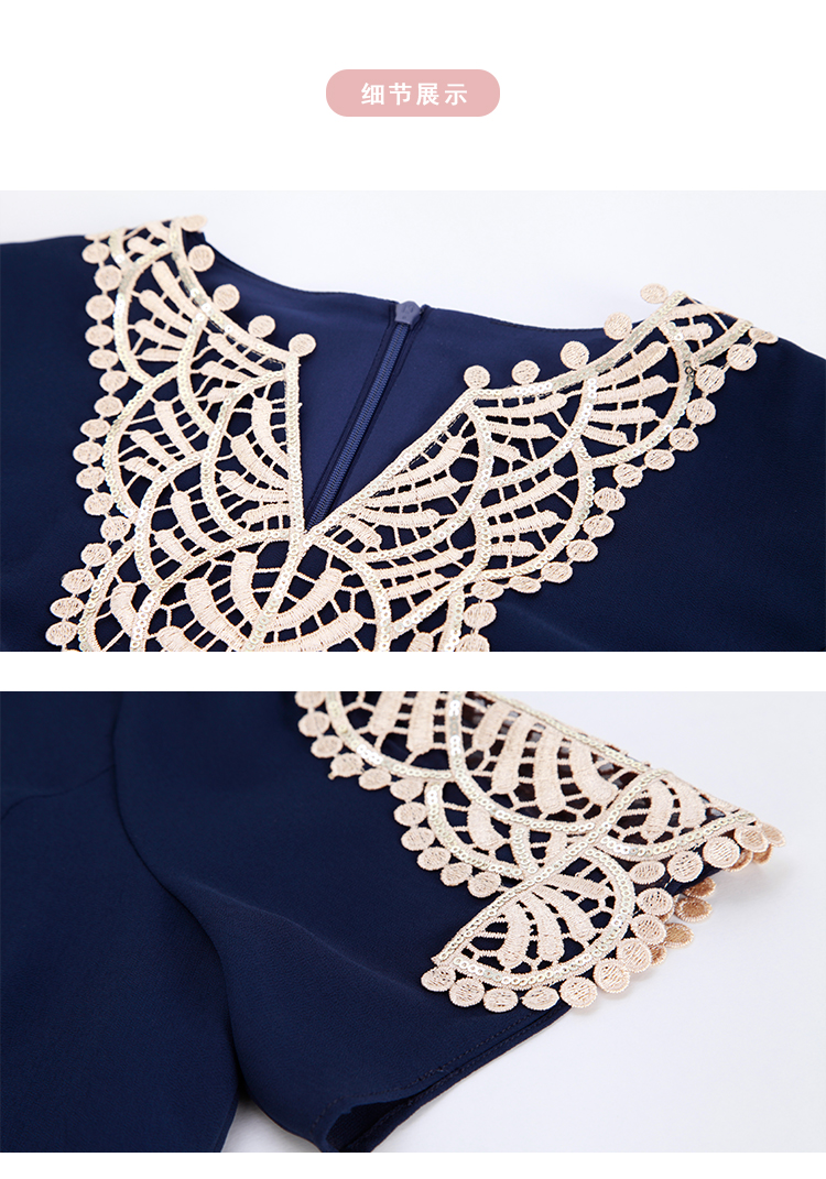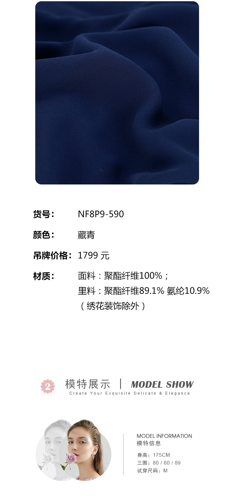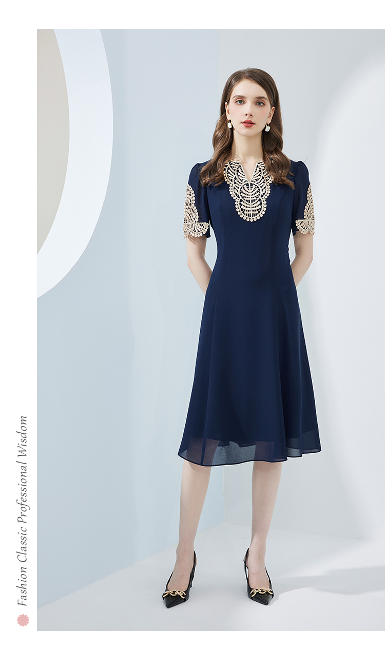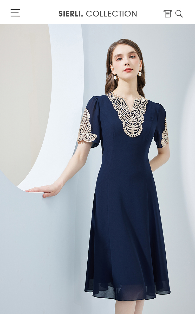 NF8P9斯尔丽瑟俪2023夏季新款高腰节设计收腰散摆法式浪漫贴蕾丝连衣裙