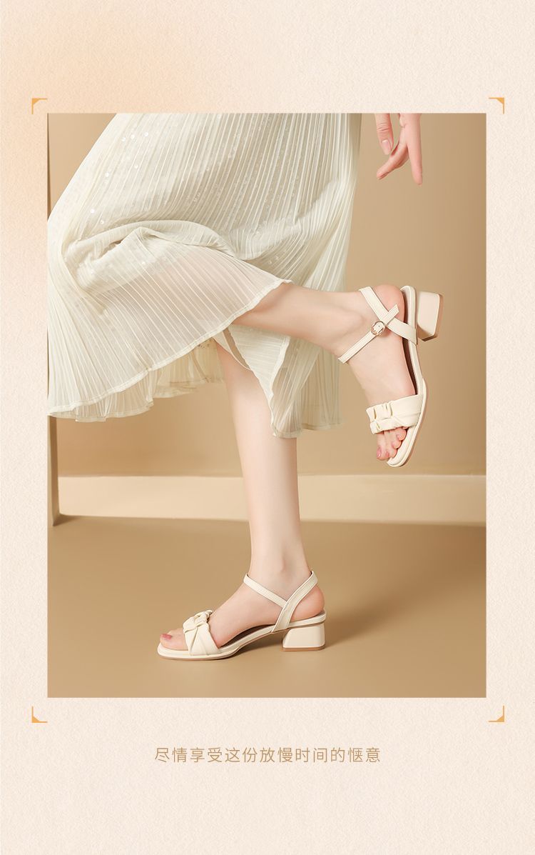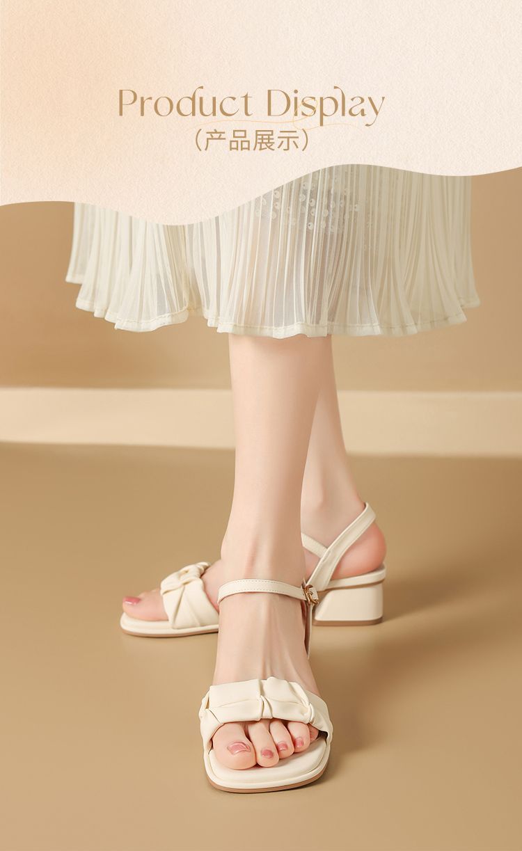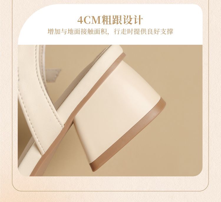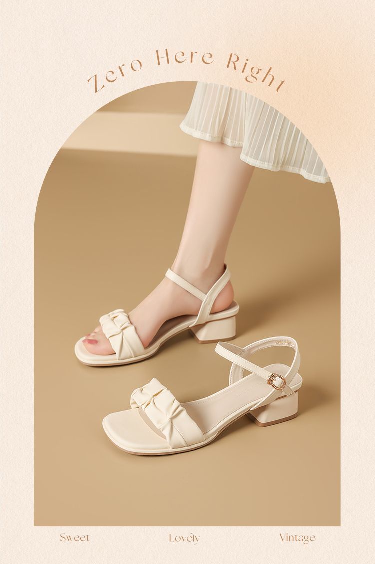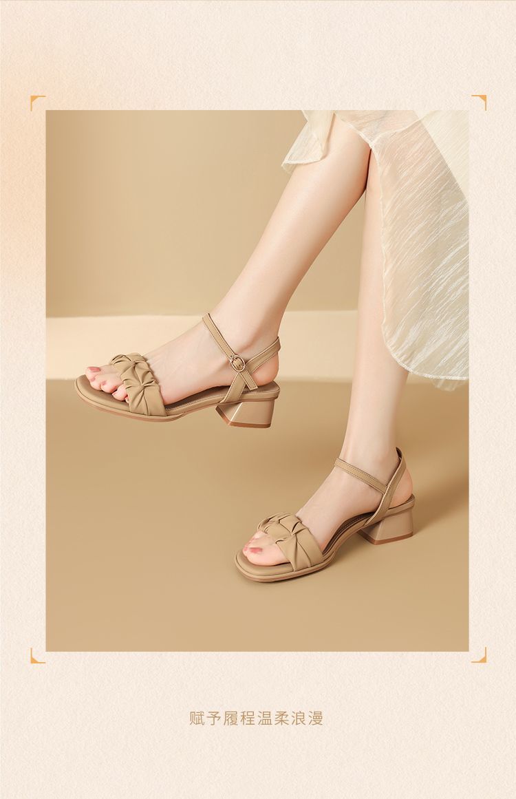 ZHR时装粗跟凉鞋2025夏季新款洋气褶皱一字凉鞋女网红ins高级女鞋