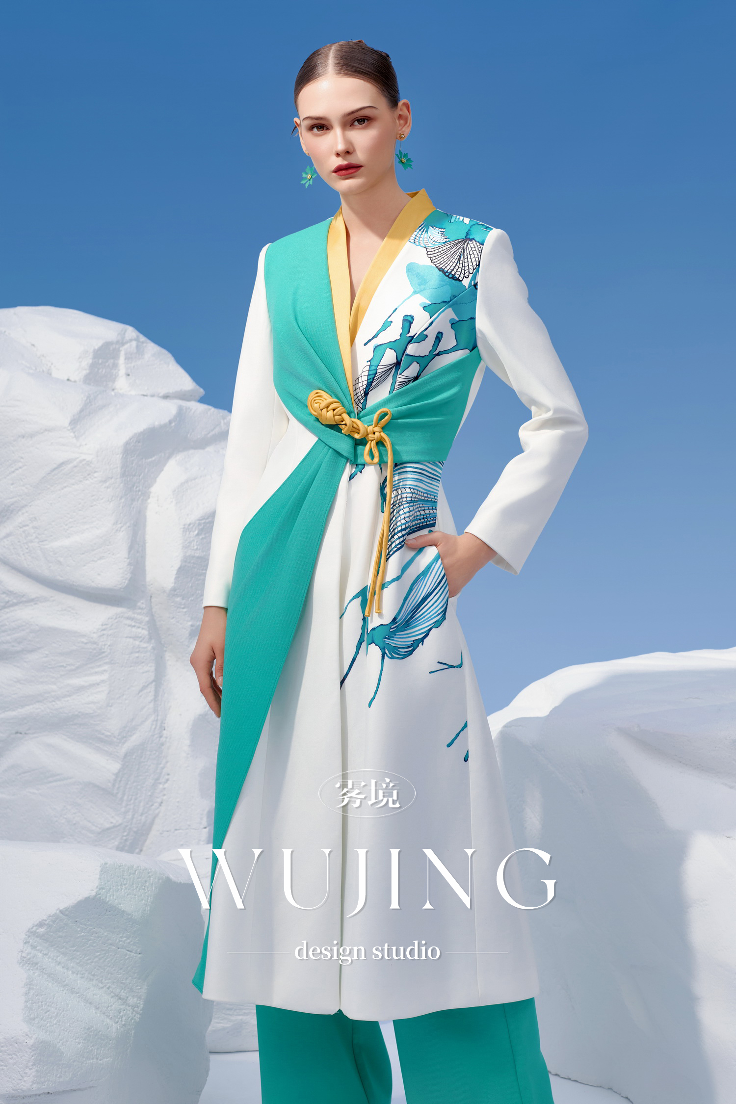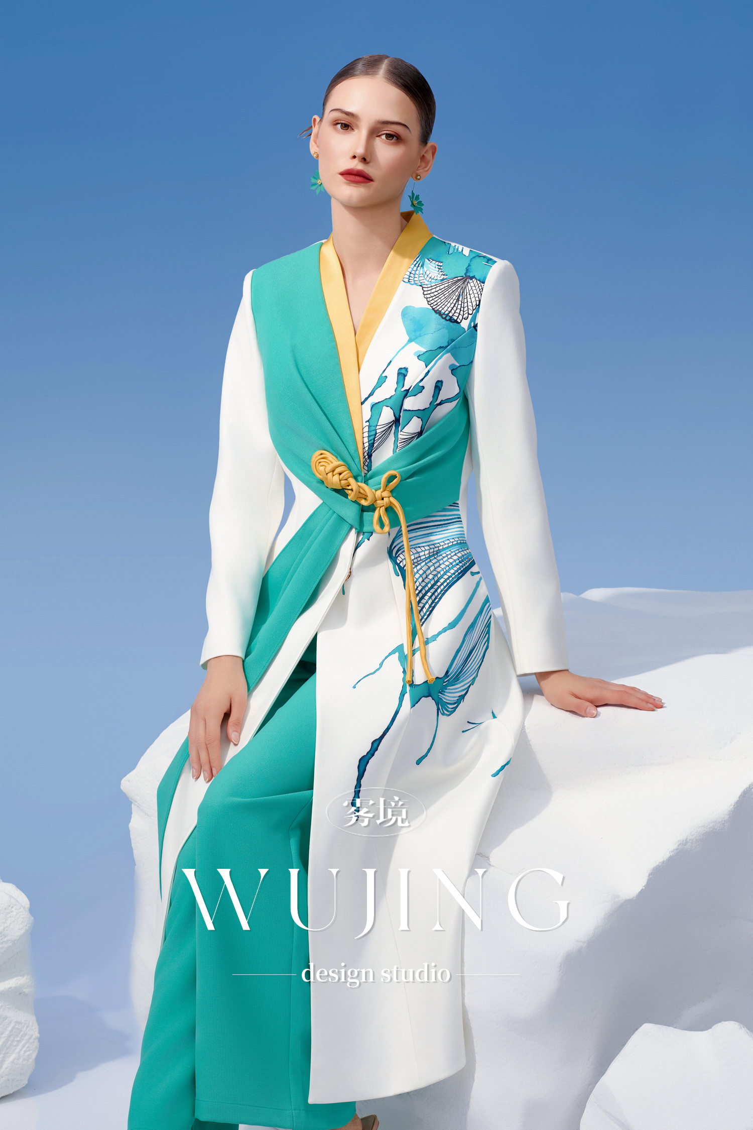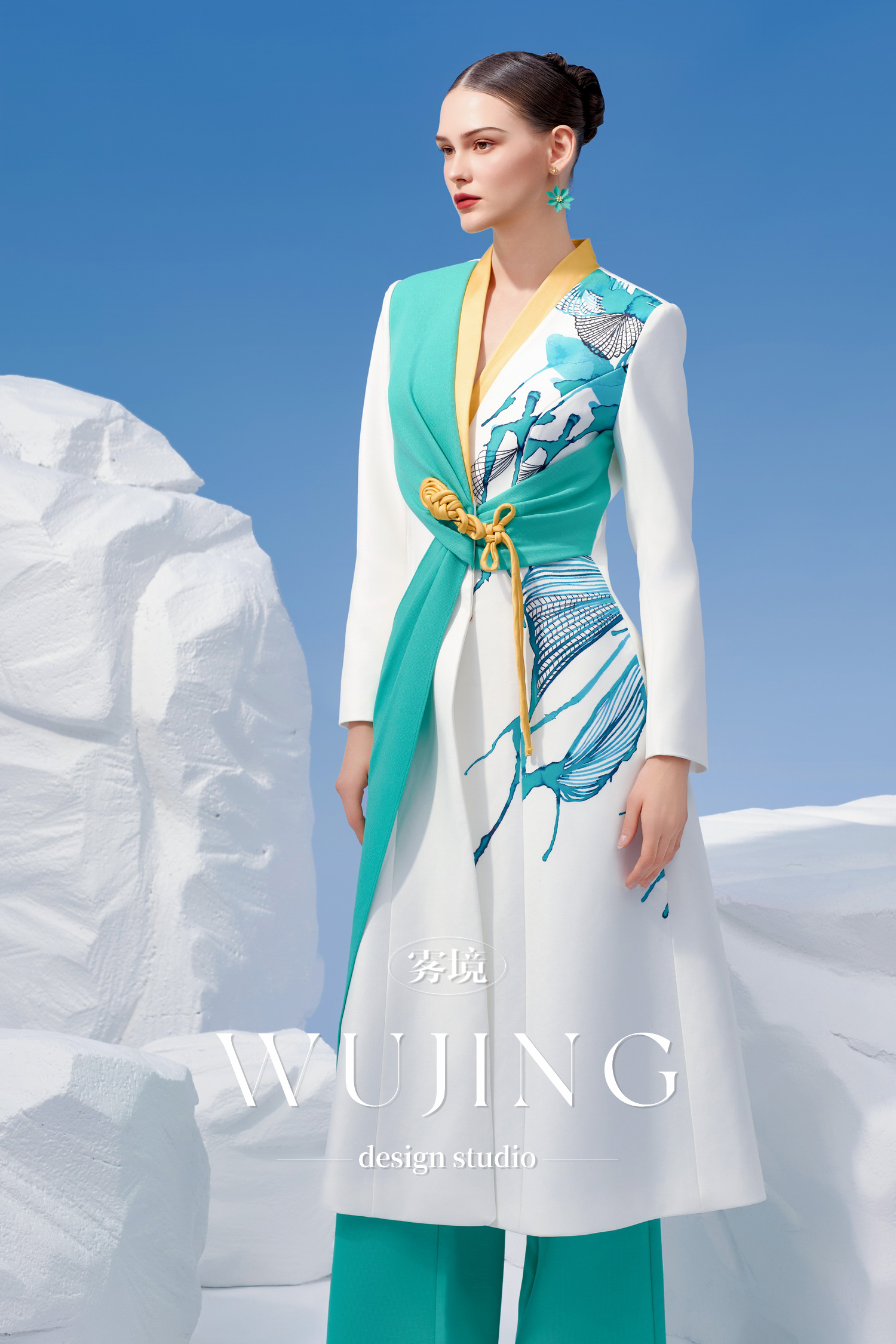 4202091 浑金白玉 定制定位印花大衣 雾境