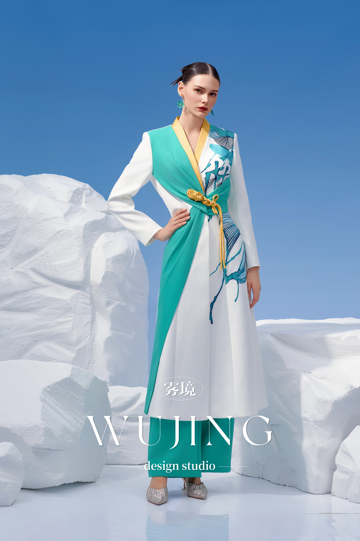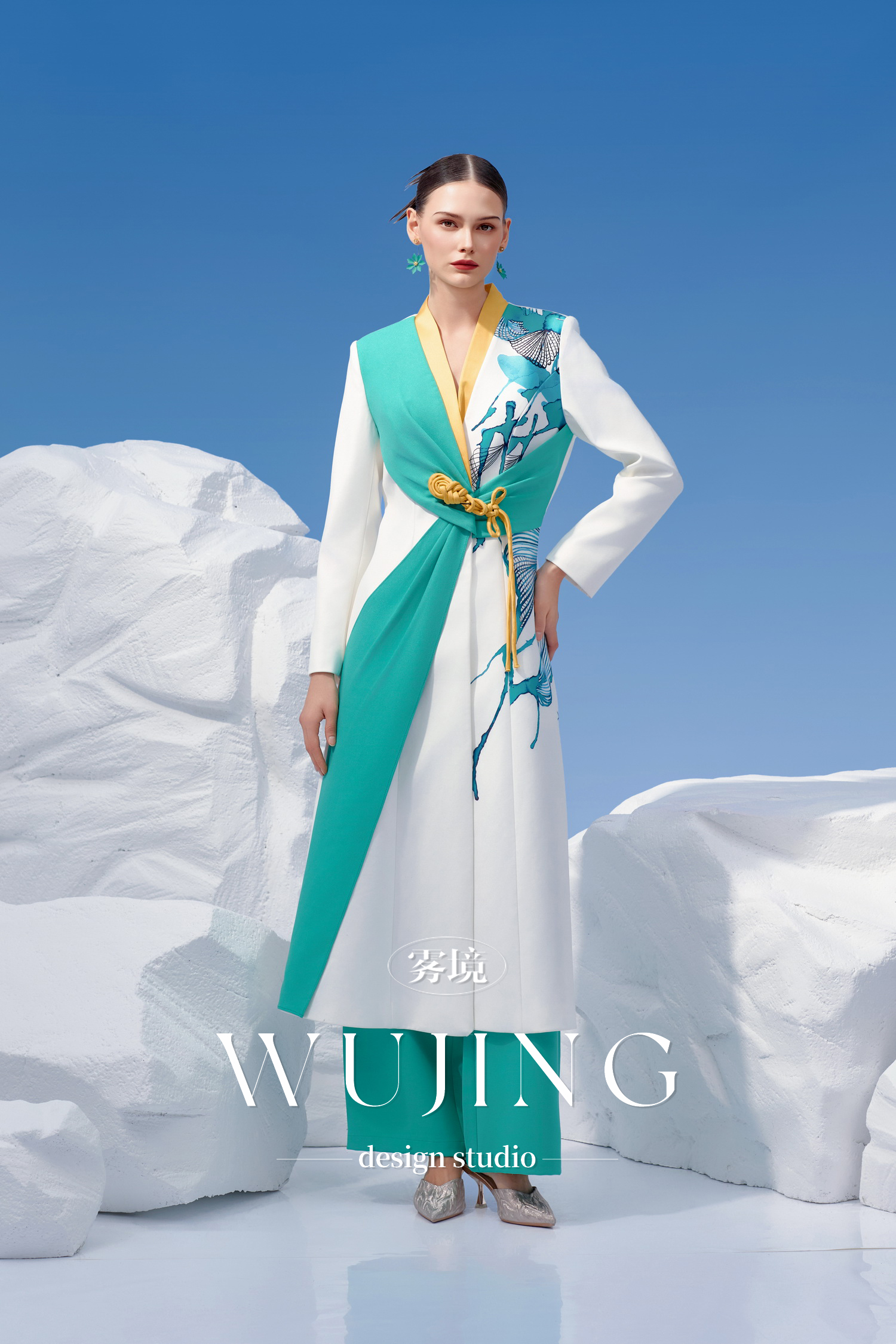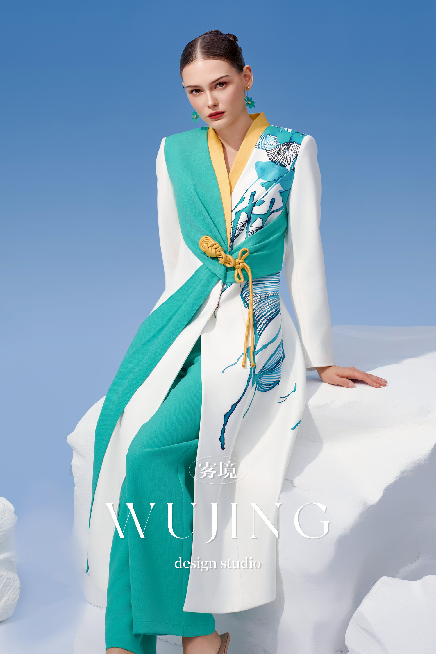 4202091 浑金白玉 定制定位印花大衣 雾境