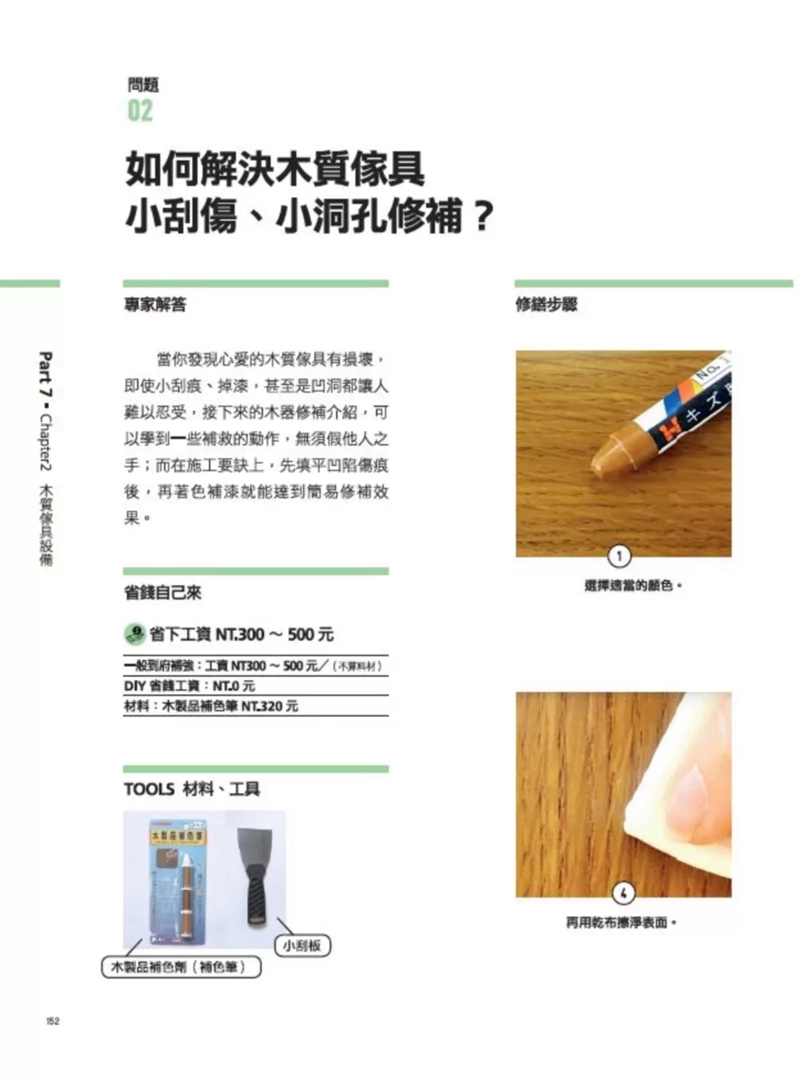 详述工作的分解步骤和完工成果,让完全没有宅修经验的新手也能轻松应付,成为家居不可缺少的工具典藏书。