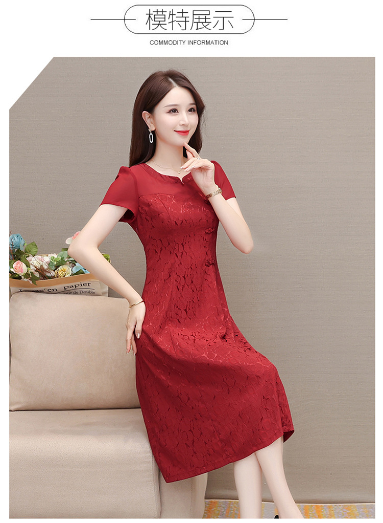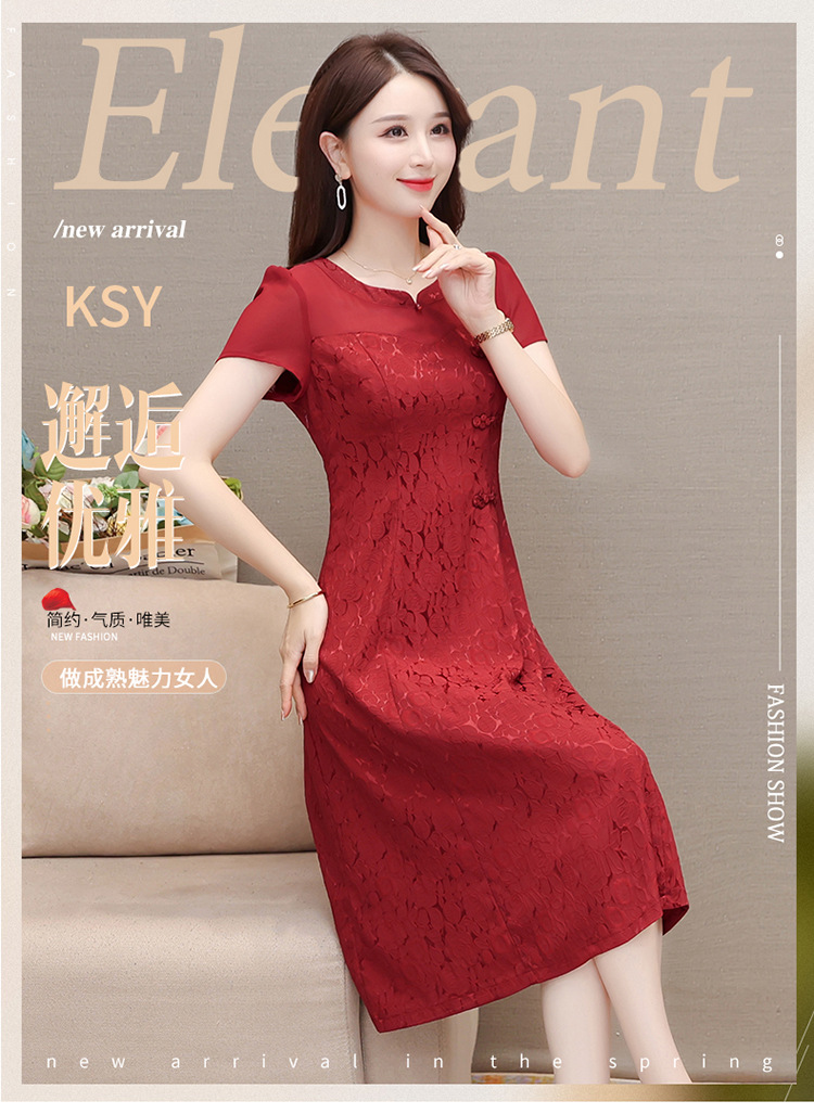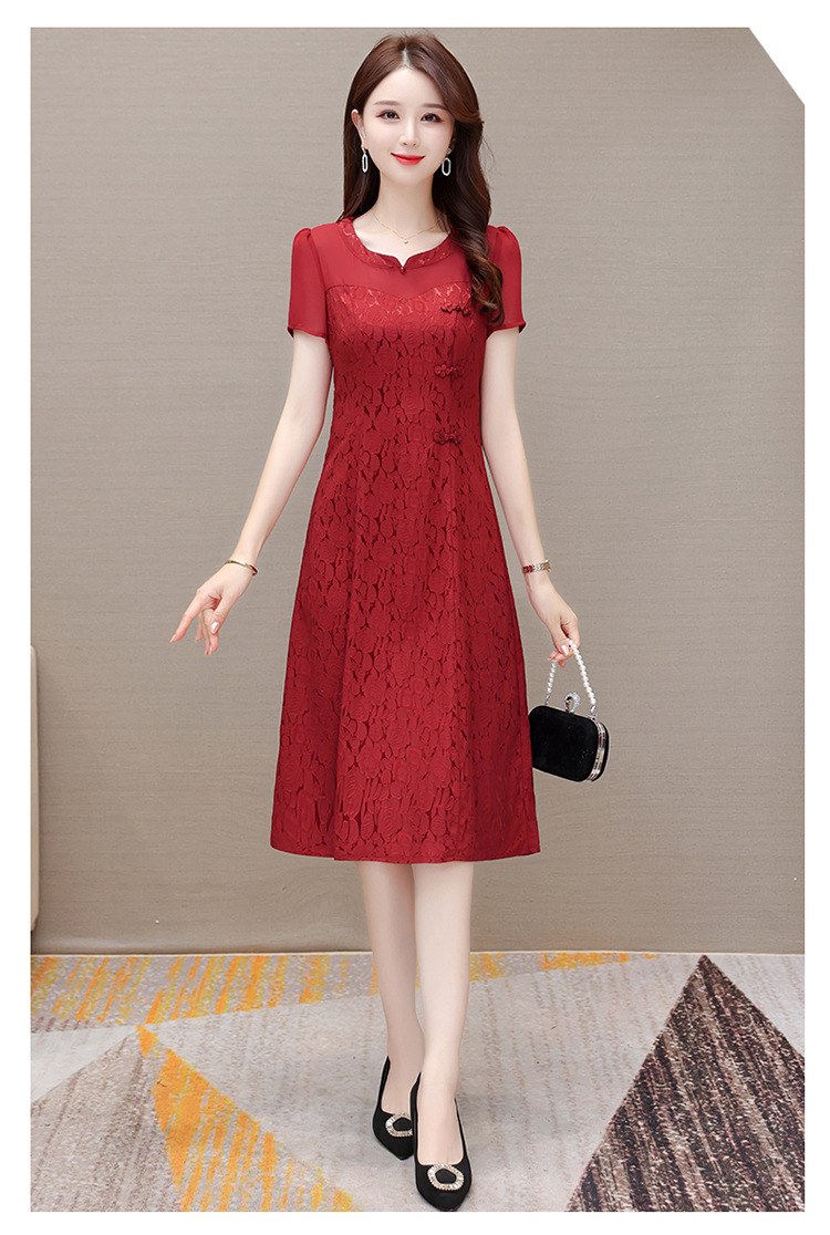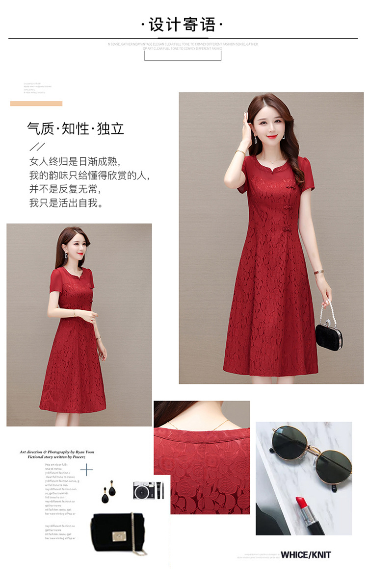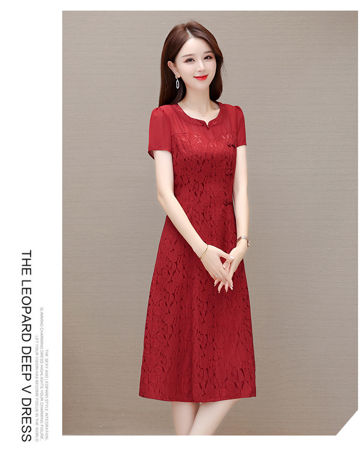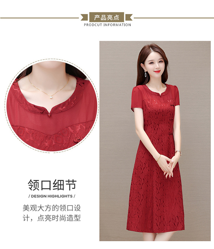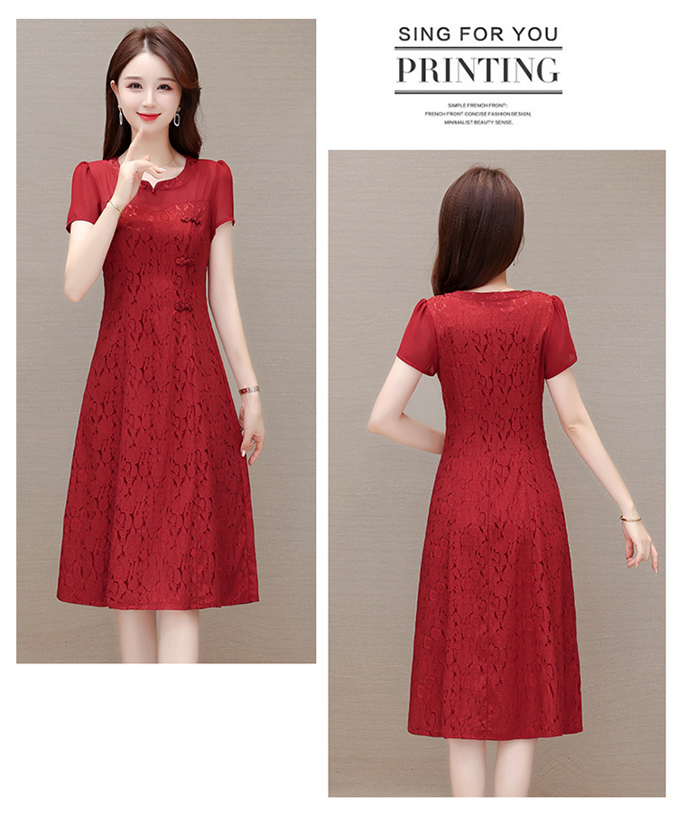 复古国风优雅连衣裙,圆领短袖气质A字裙QYM-GWA16-L