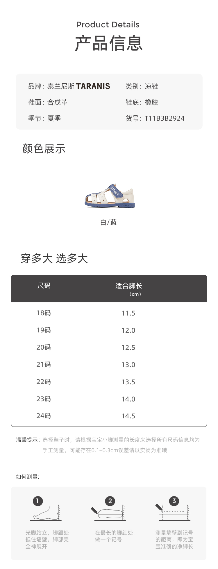泰兰尼斯夏季婴童段时尚柔软包头凉鞋T11B3B2924