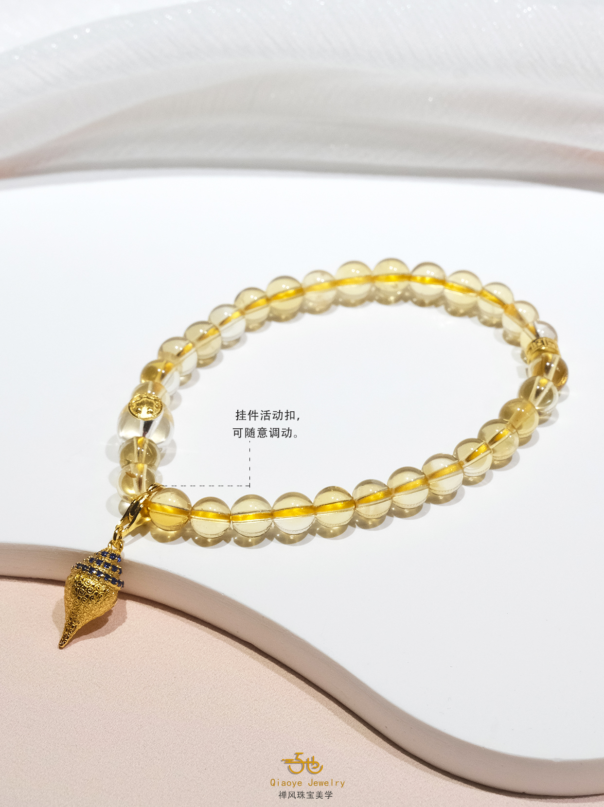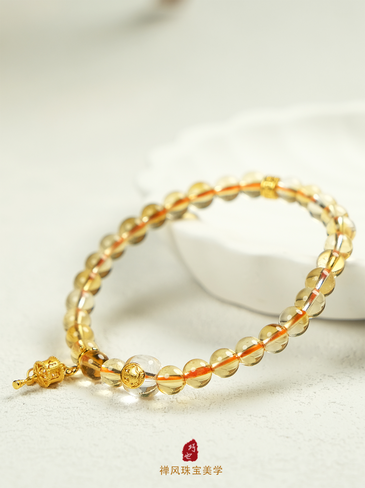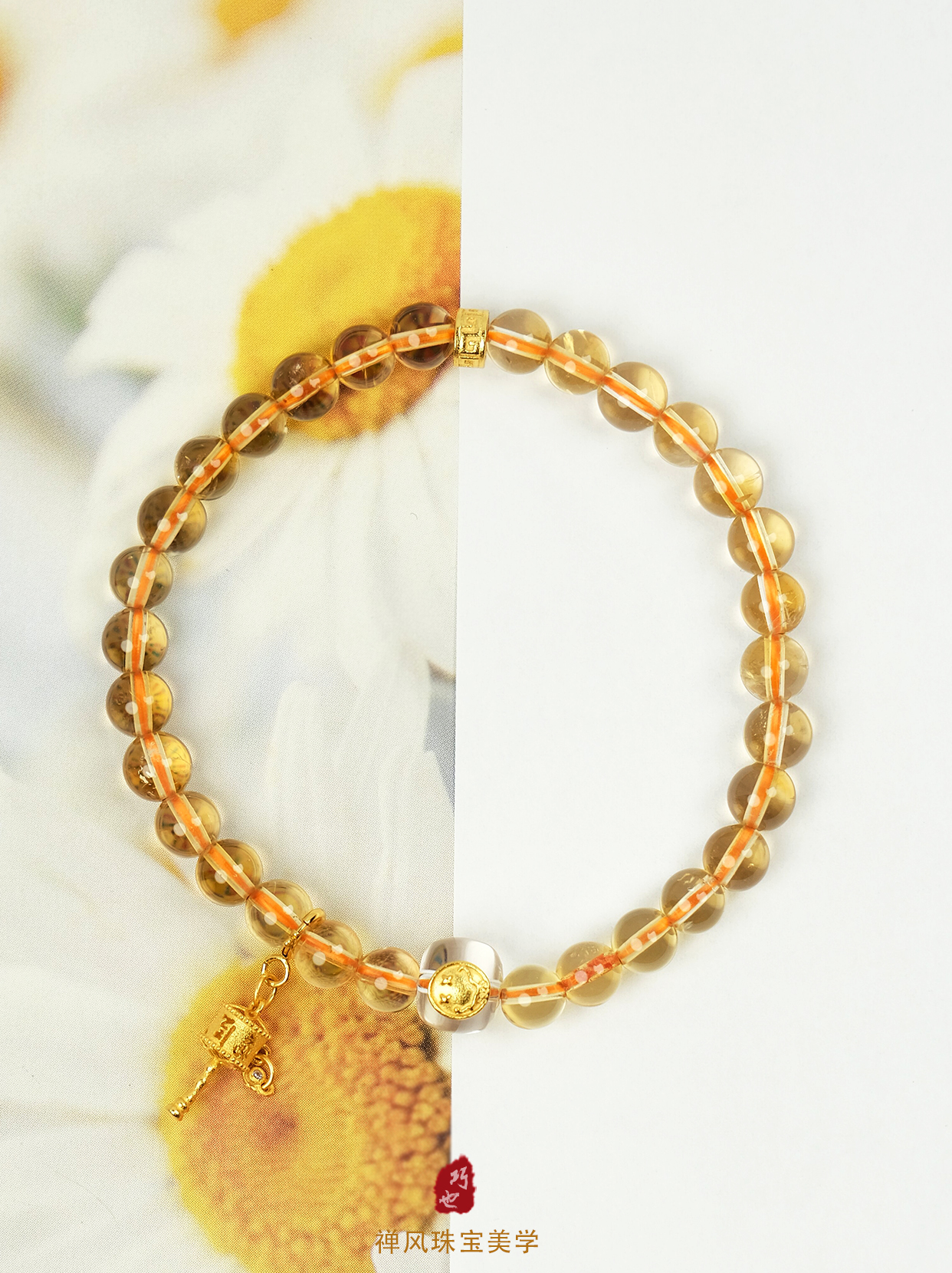 巧也【珀光度】6mm黄水晶配白水晶银鎏金挂饰手珠增上招财手珠国风手串禅意风