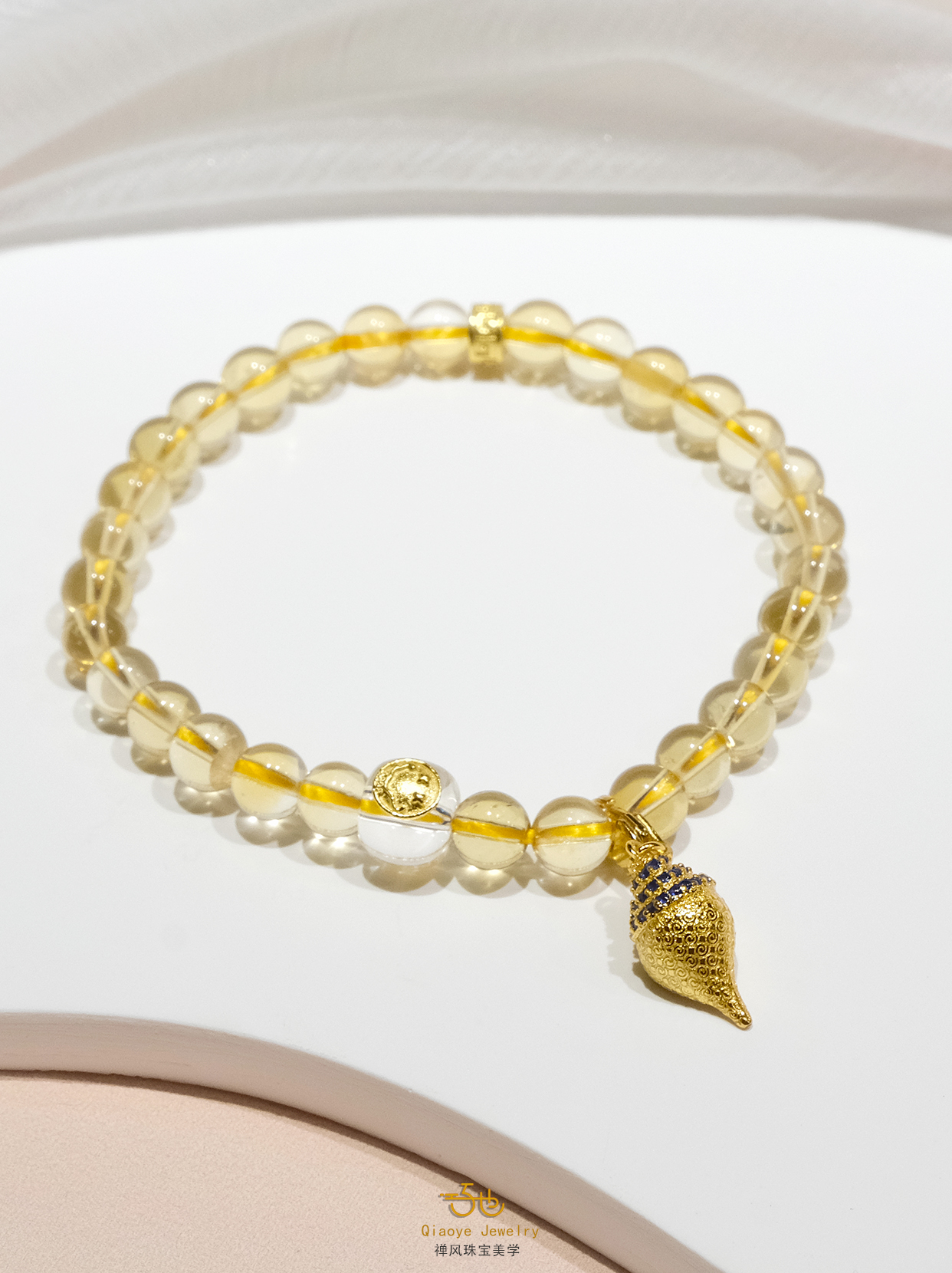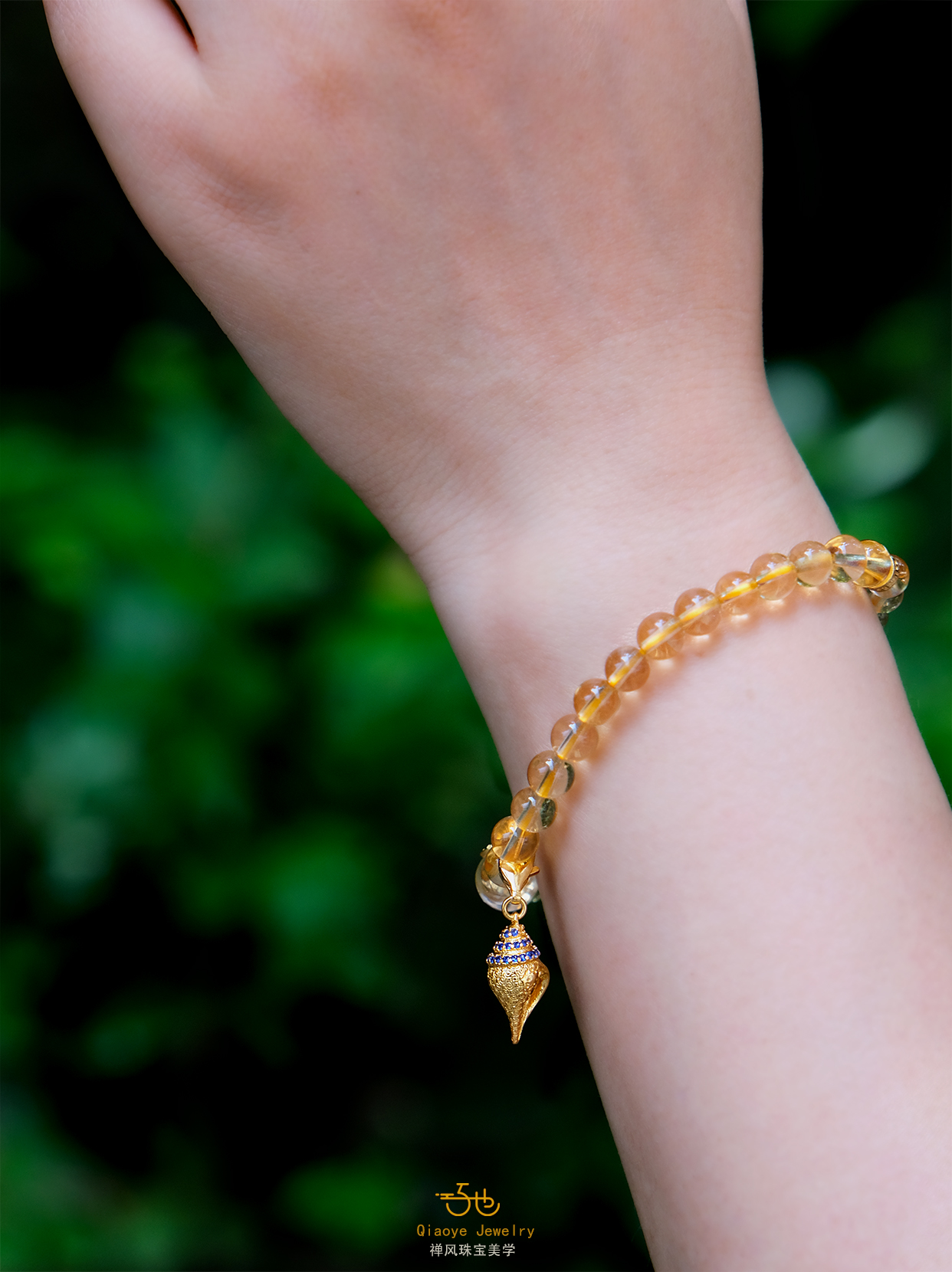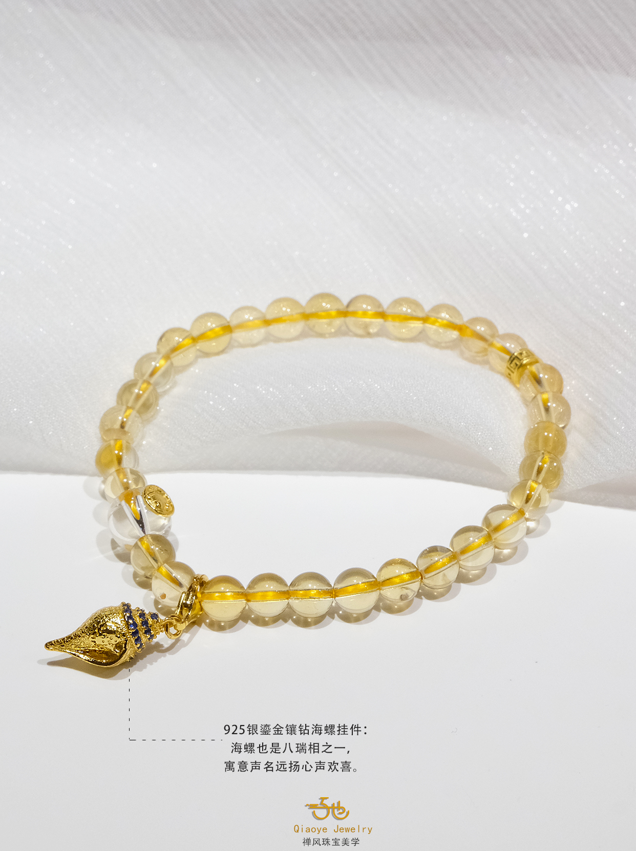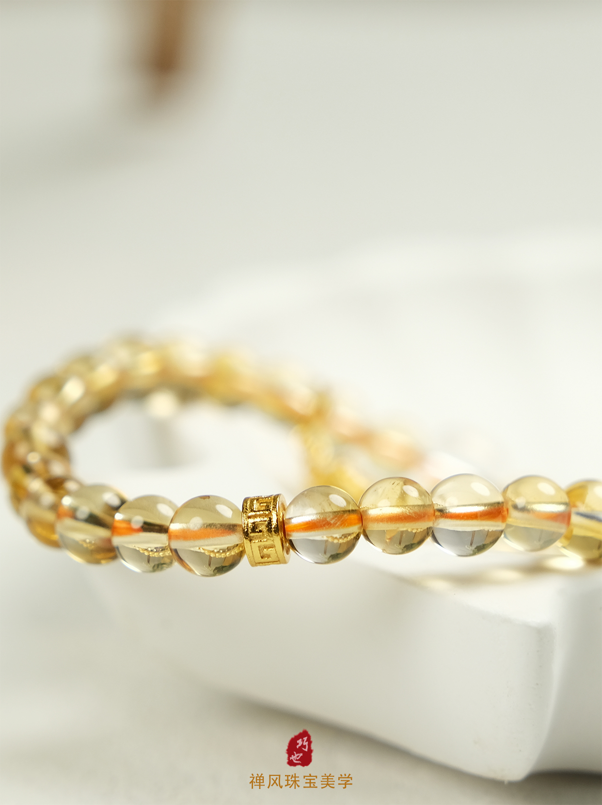 巧也【珀光度】6mm黄水晶配白水晶银鎏金挂饰手珠增上招财手珠国风手串禅意风