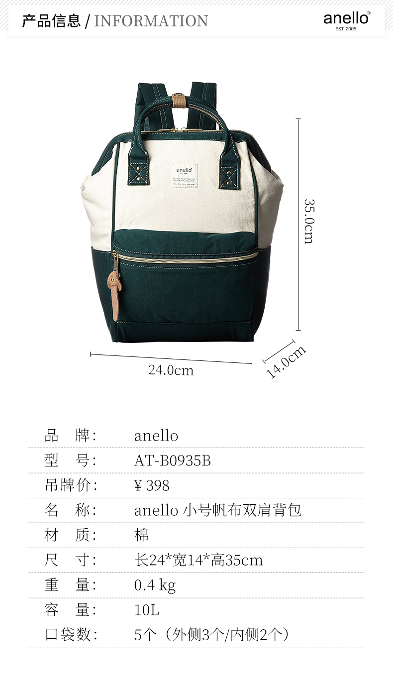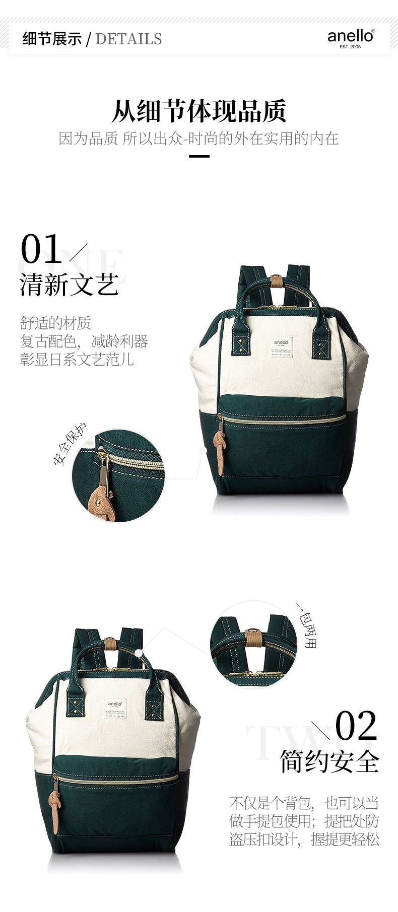 【一般贸易】·anello日本离家出走妈妈包乐天防盗防水大容量书包B0935B 黑白拼接小号