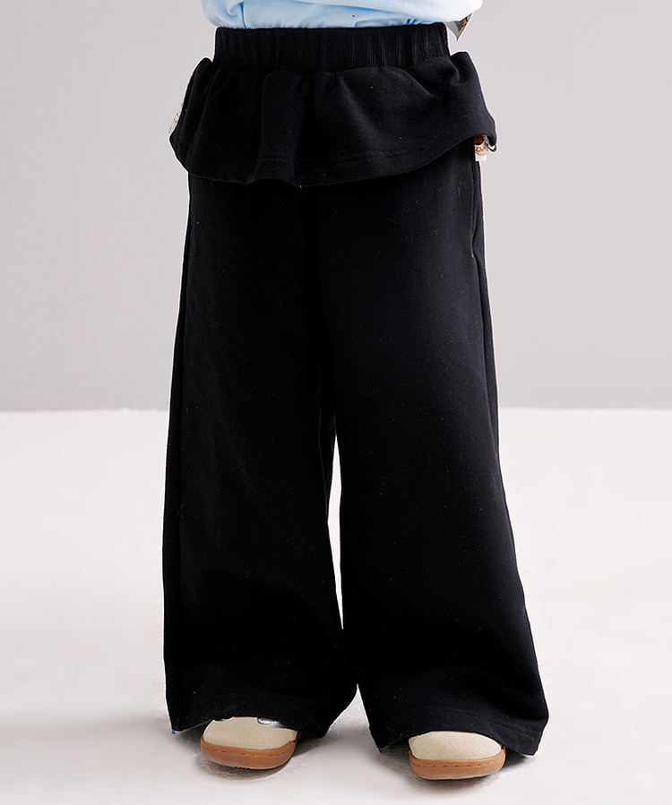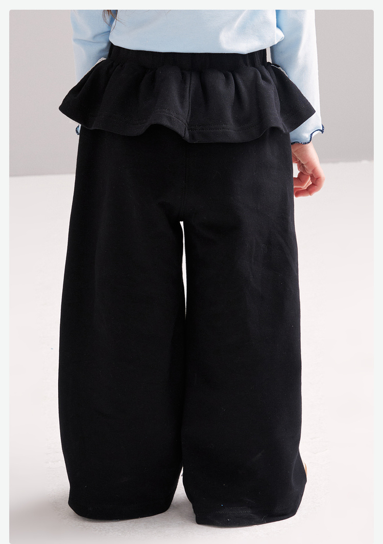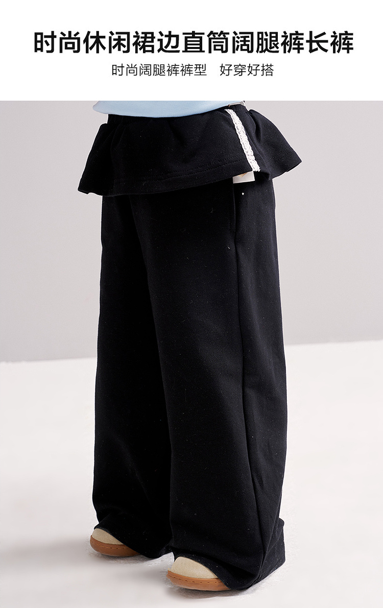 笛莎Deesha 2026春季女童时尚休闲裙边直筒阔腿裤长裤
