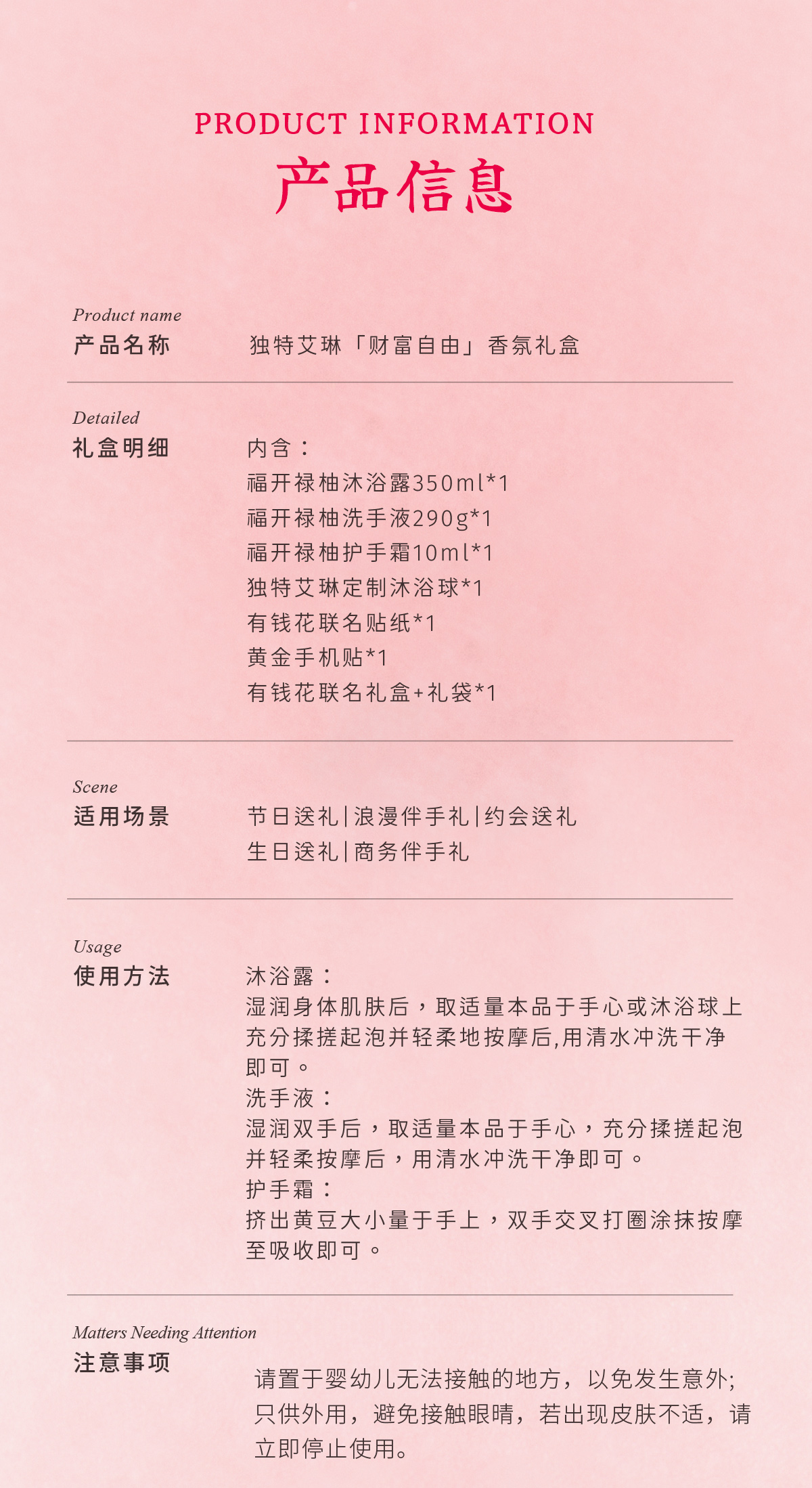 独特艾琳 【福开禄柚&有钱花系列】礼盒 财富自由 香氛礼盒护手霜沐浴露套装生日伴手礼物