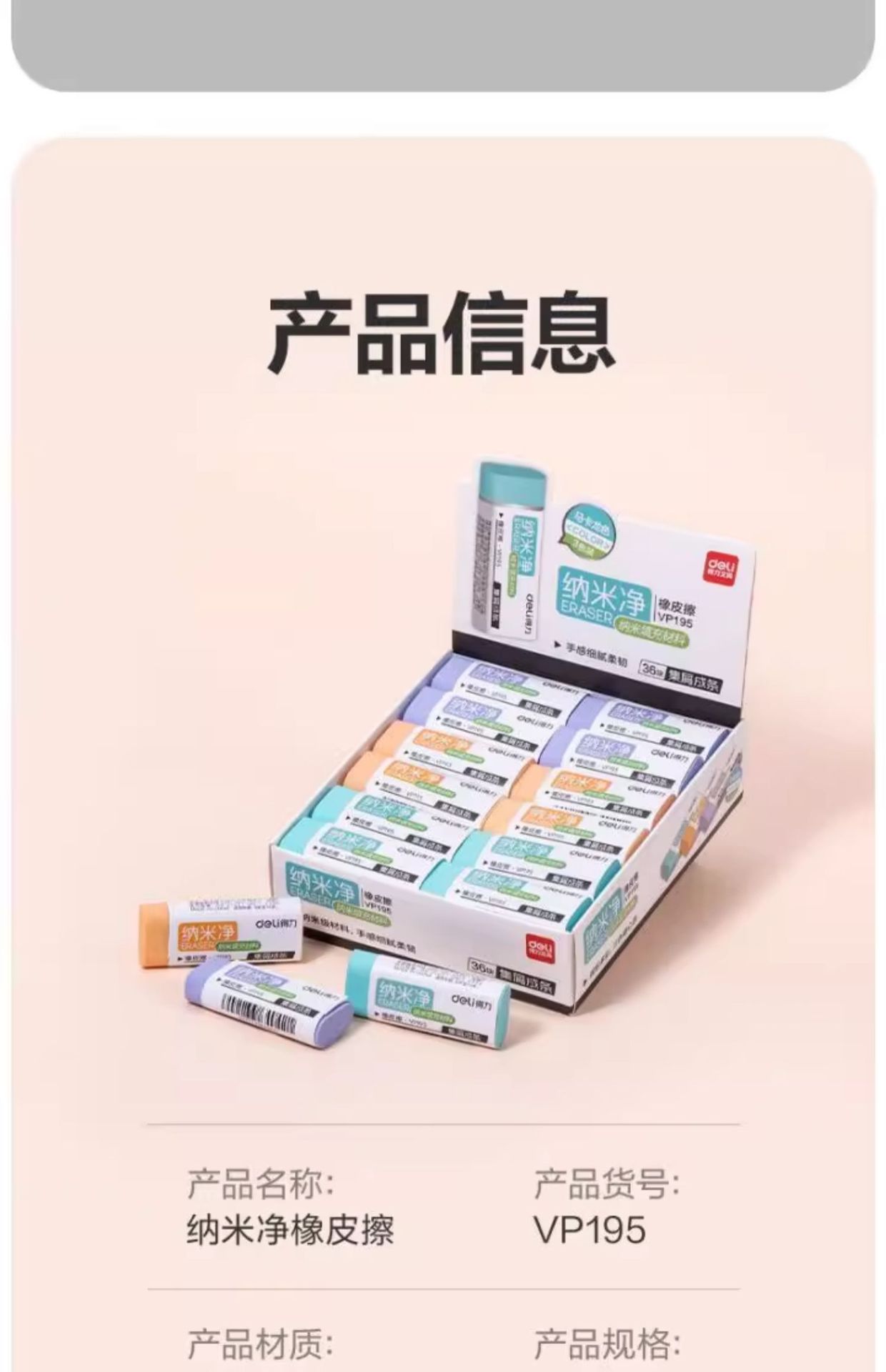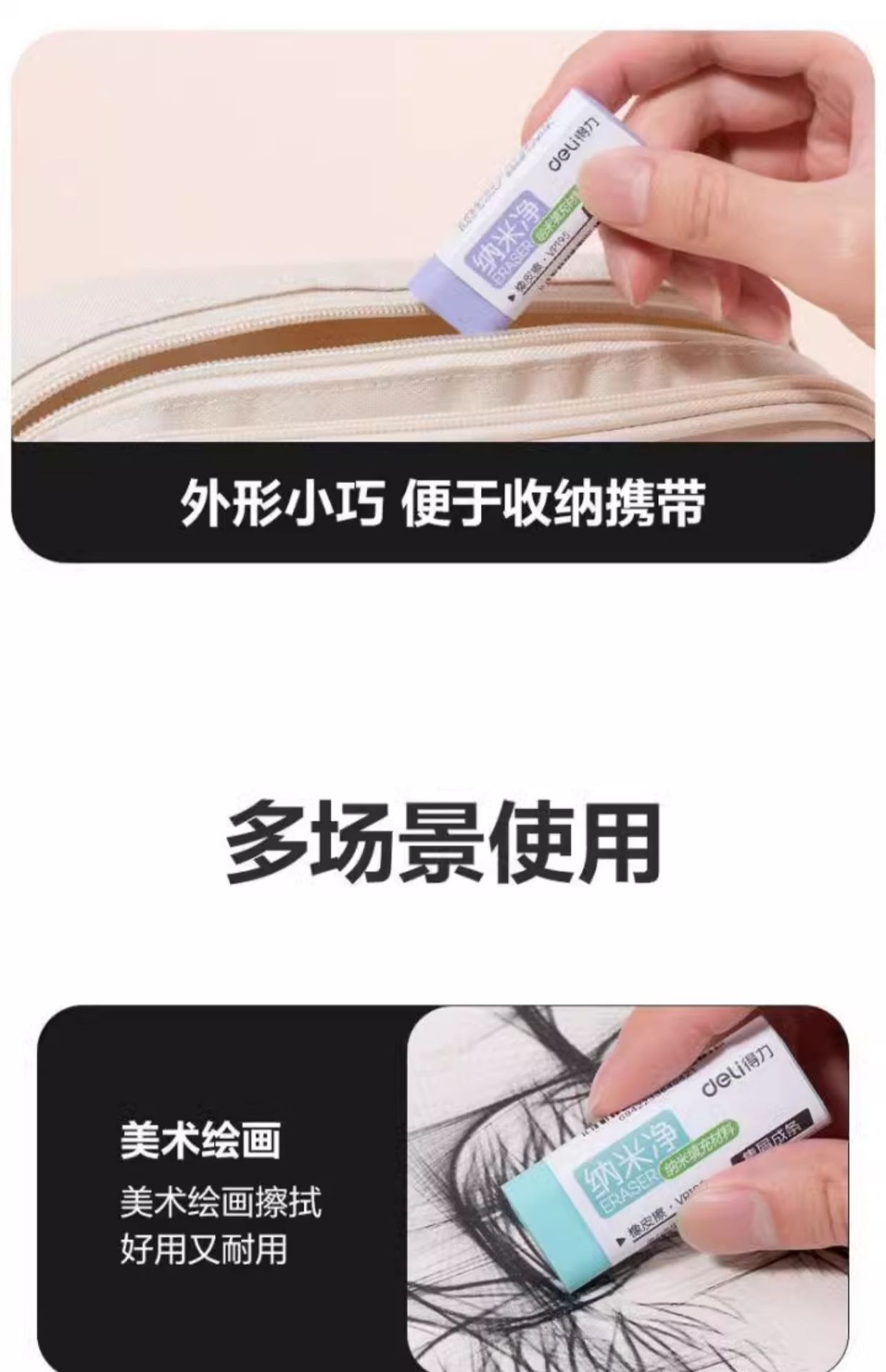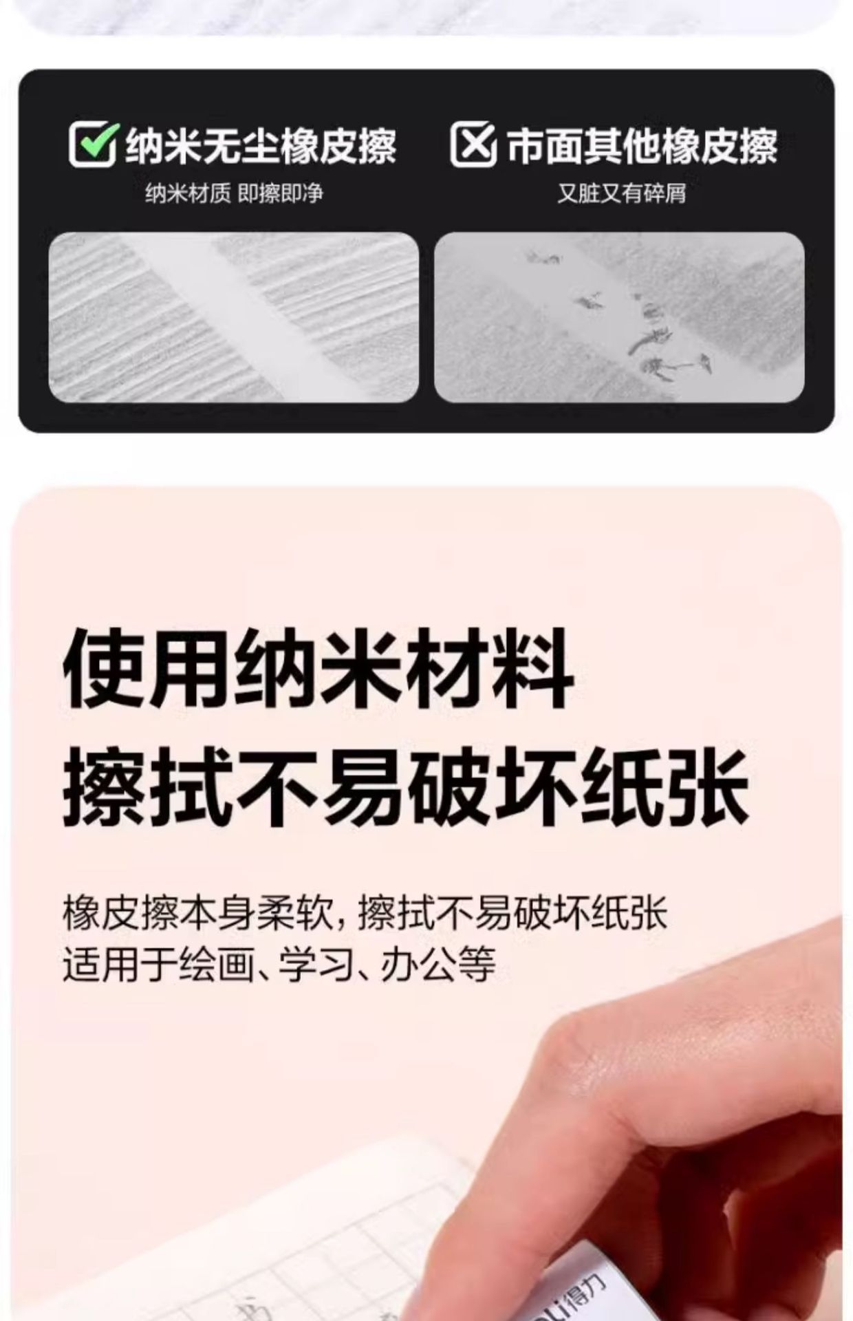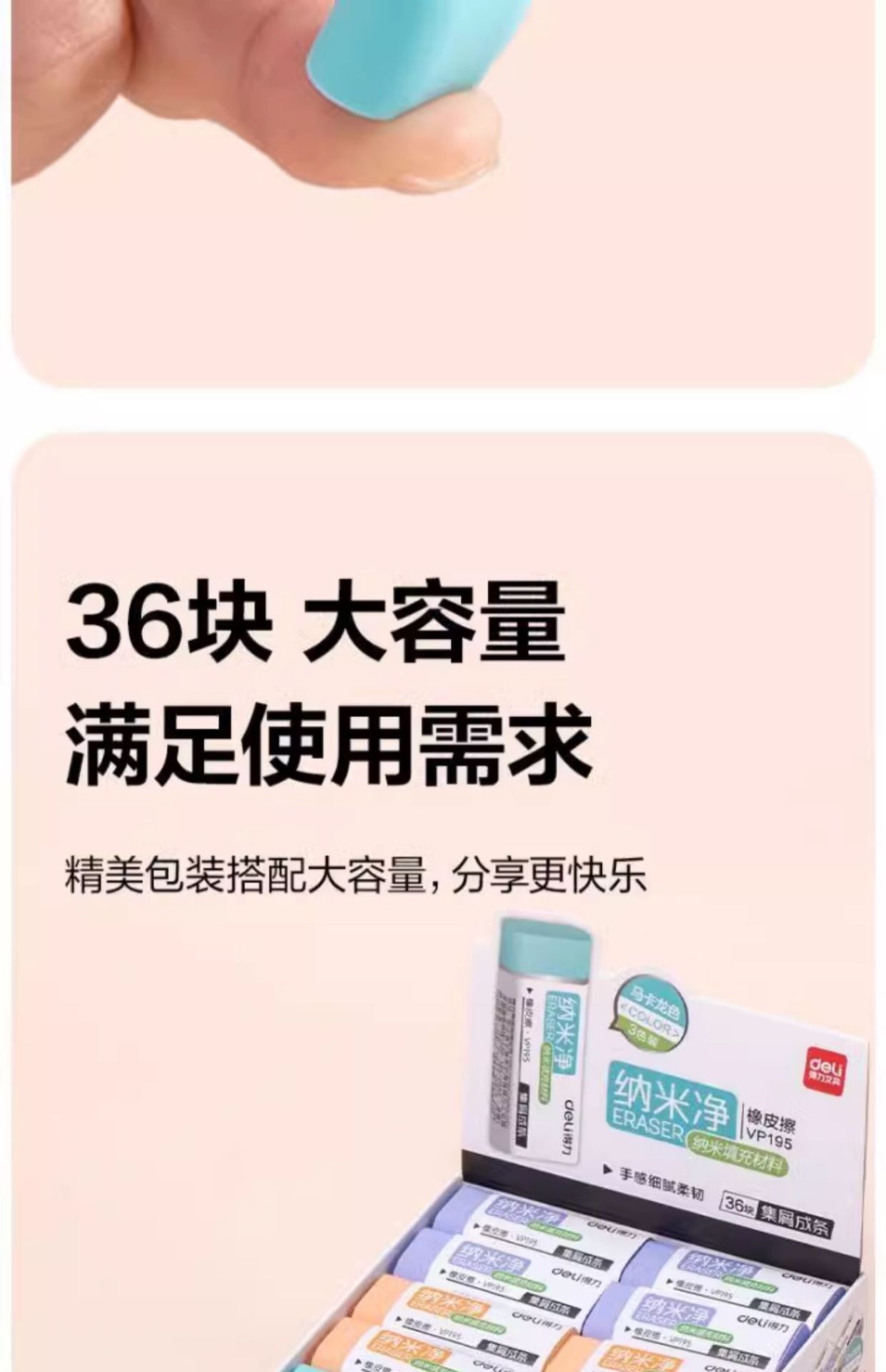 【易擦少屑❗不易留痕】得力纳米净橡皮擦学生专用真集屑不留痕无碎屑铅笔檫马卡龙橡皮。rg