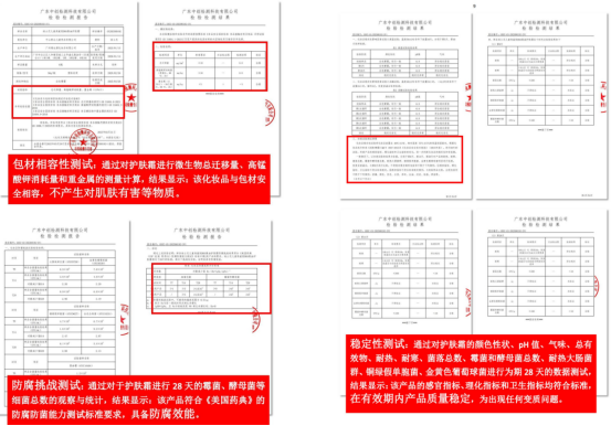 通过对于护肤霜进行28天的霉菌、酵母菌等细菌总数的观察与统计,结果显示:该产品符合《美国药典》的防腐防菌能力测试标准要求,具备防腐效能。