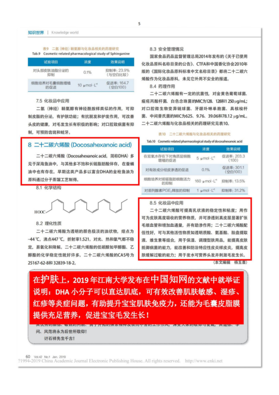 江南大学权威文献证实: (2019年江南大学发布在中国知网的文献) DHA小分子直透肌底,显著改善湿疹、红疹、泛红! 提升肌肤免疫力,打造天然防御盾!