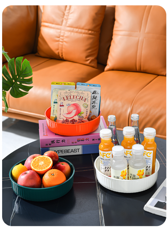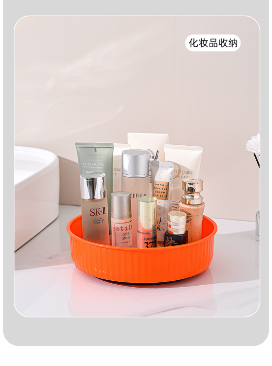 圆形设计,可旋转,取物更加得心应手, 适合书房/化妆台/洗漱台等多场景使用! 合理利用桌面空间,打造整洁有序居家生活!