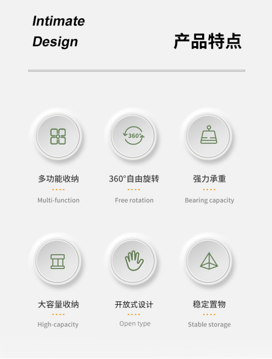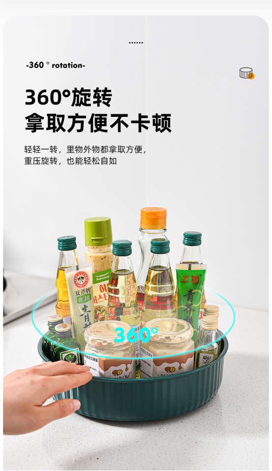 ✅360度自由旋转,拿取一目了然 ✅开放式收纳更规整,清洁无死角 ✅加厚材质,承重力强