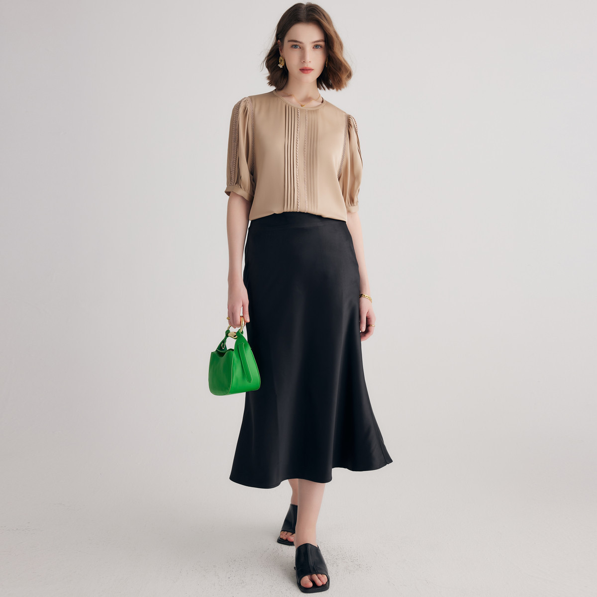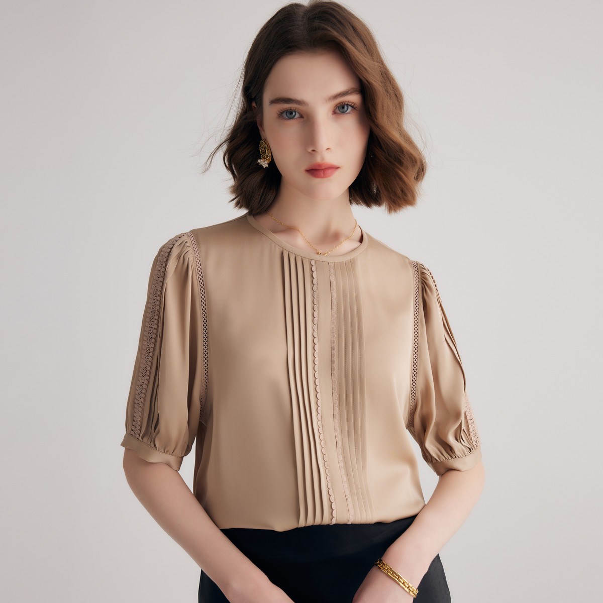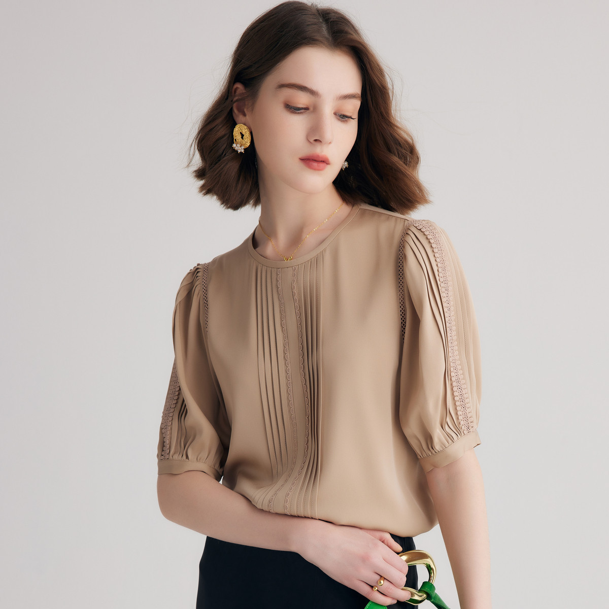【帕罗】B3F | 卡其色桑蚕丝短袖衬衫