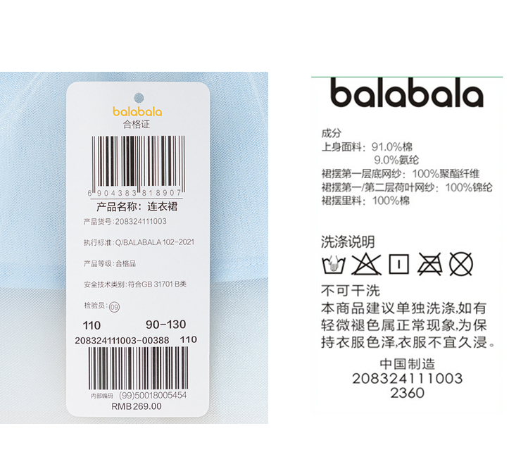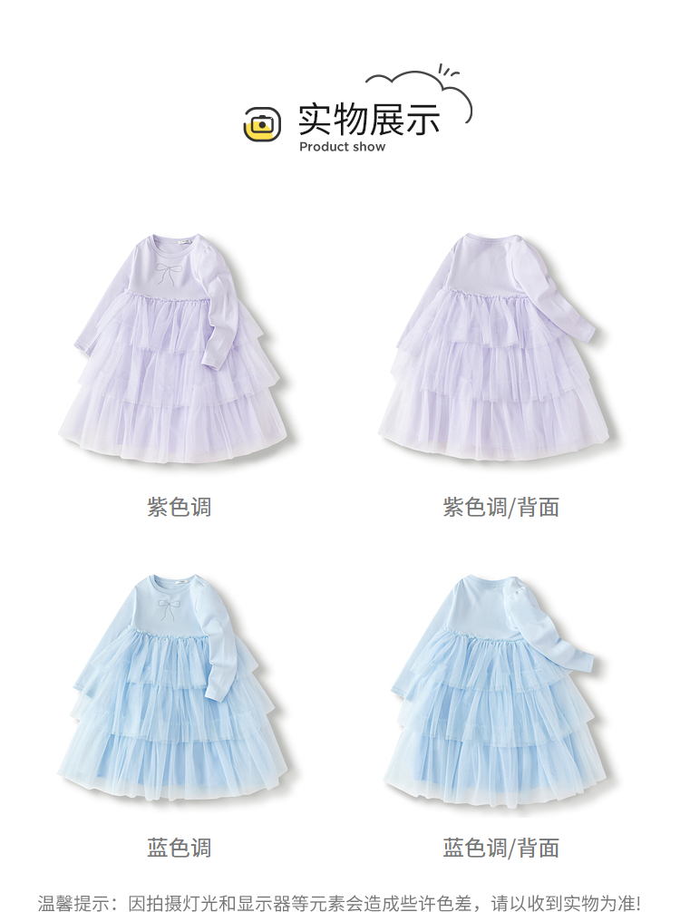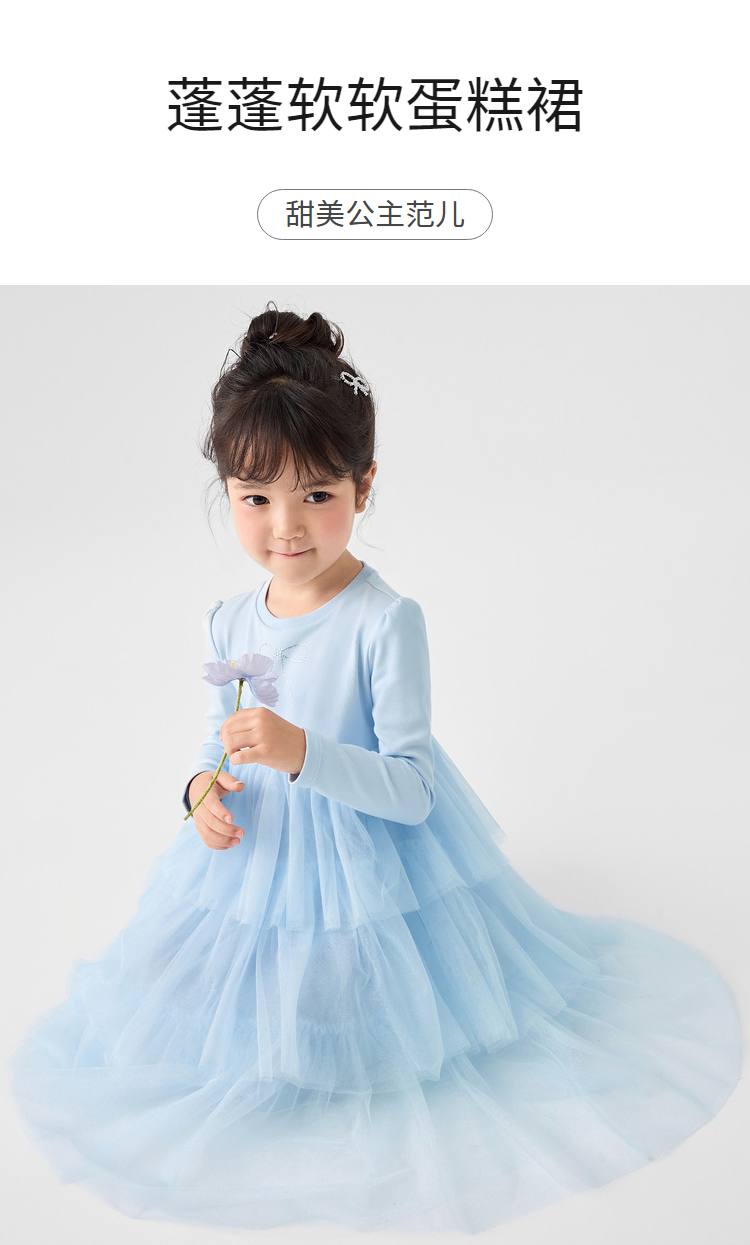 巴拉巴拉童装女童连衣裙秋装新款小童长袖网纱裙甜美儿童裙子