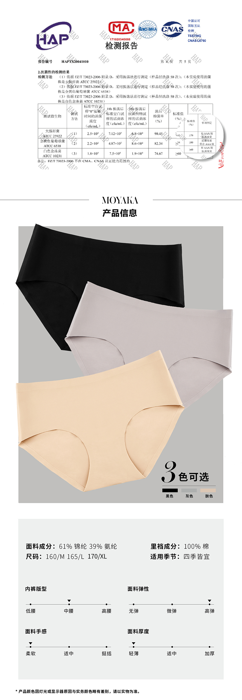 | 【商品名称】 MOYAKA零感无痕女士中腰内裤 |