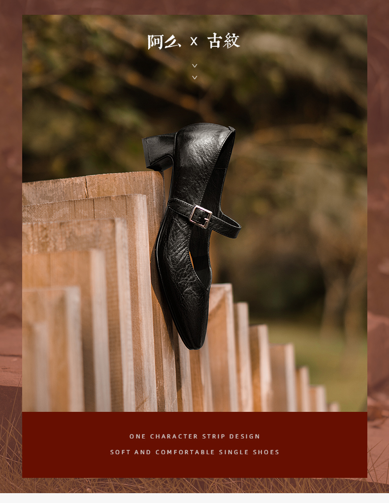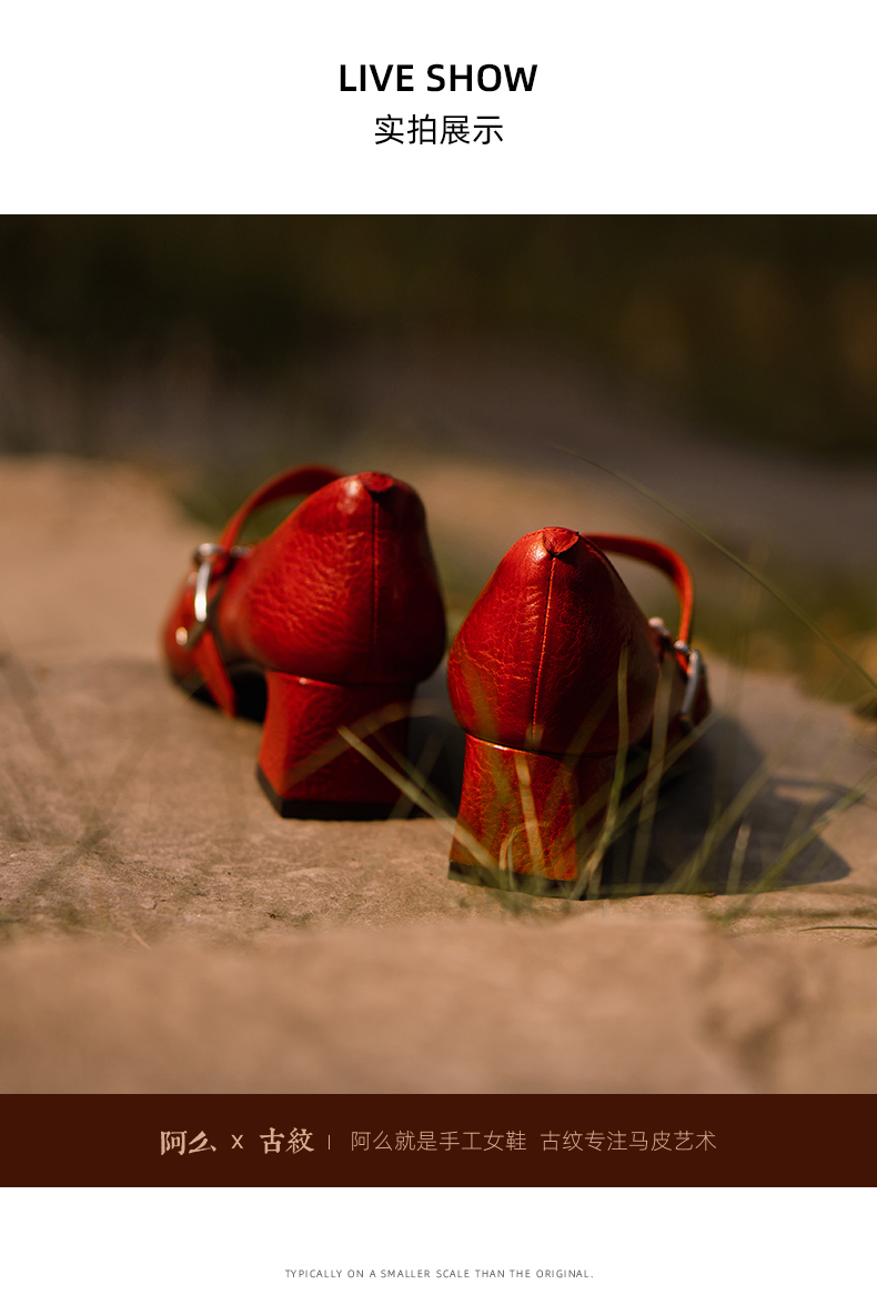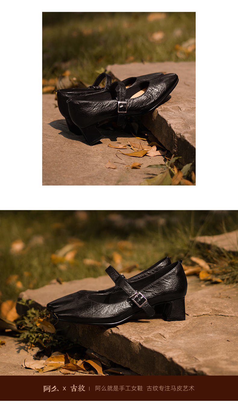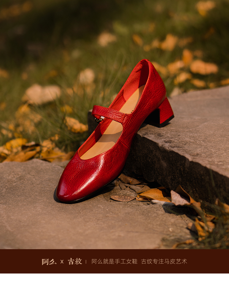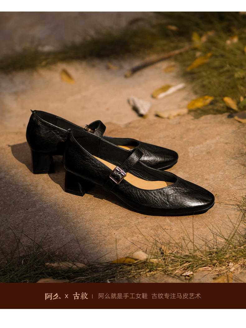 【阿么古纹马皮鞋】复古高级感浅口玛丽珍鞋4CM粗跟洋气百搭单鞋女
