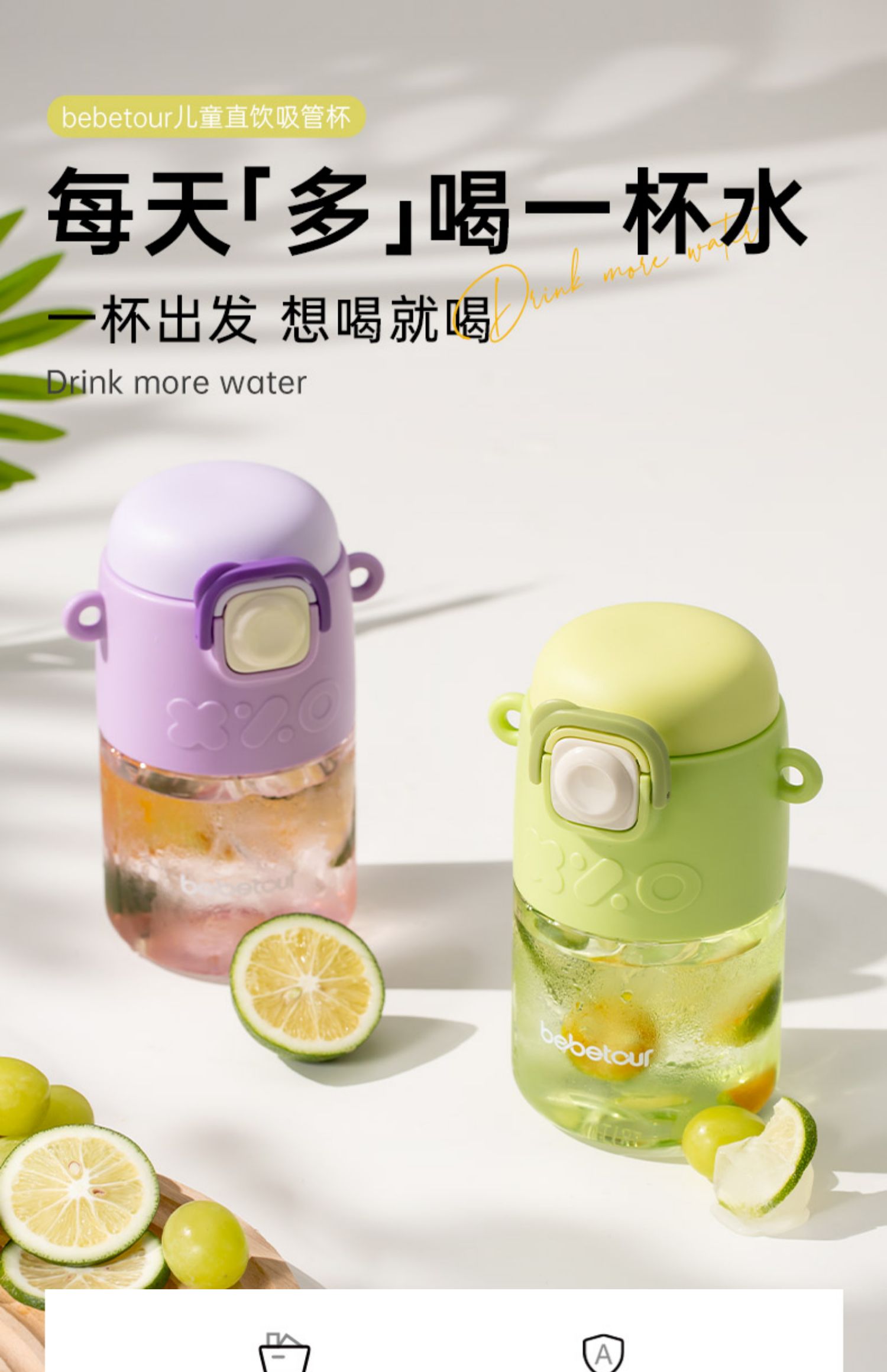 bebetour儿童吸管杯便携杯子直饮杯大容量