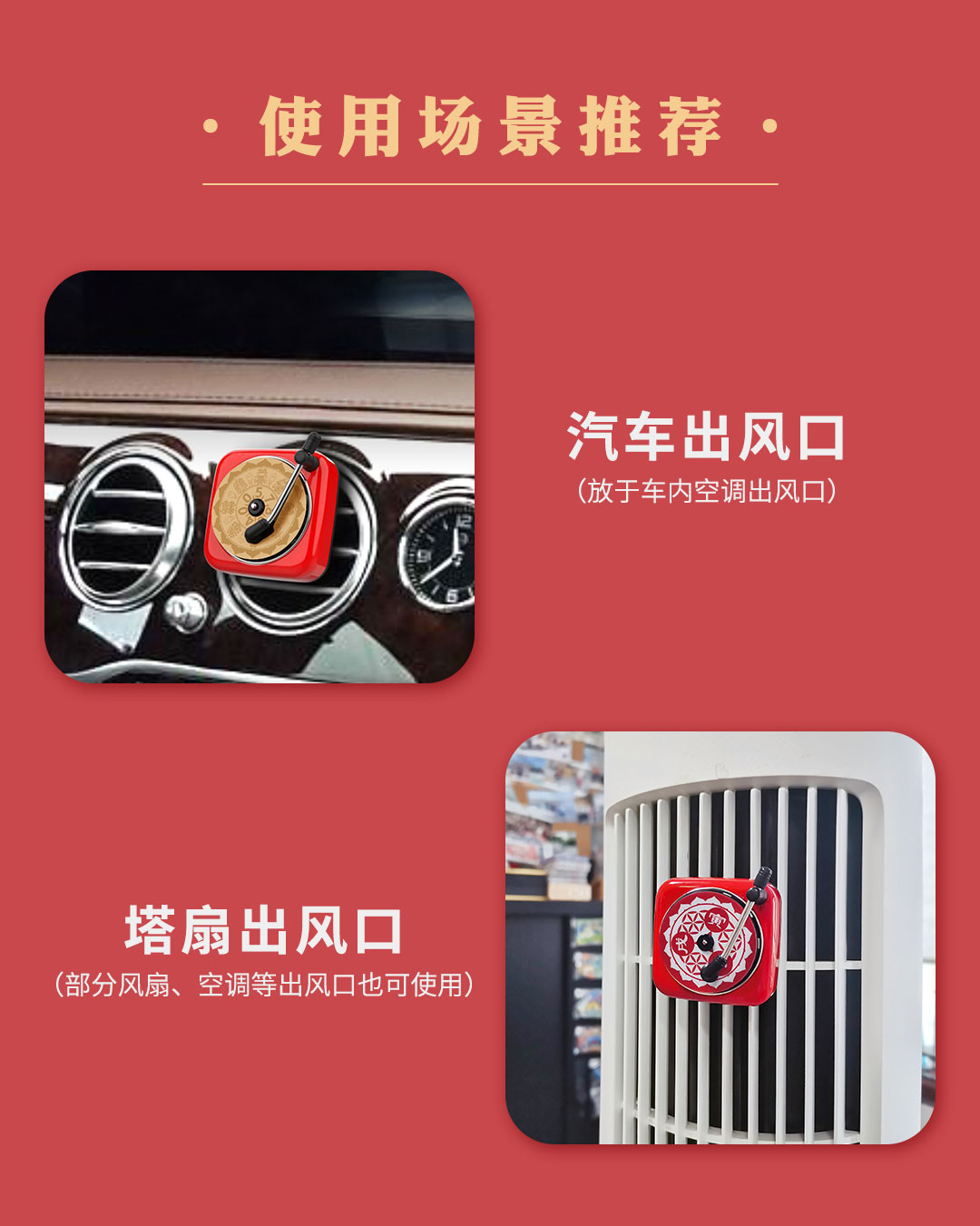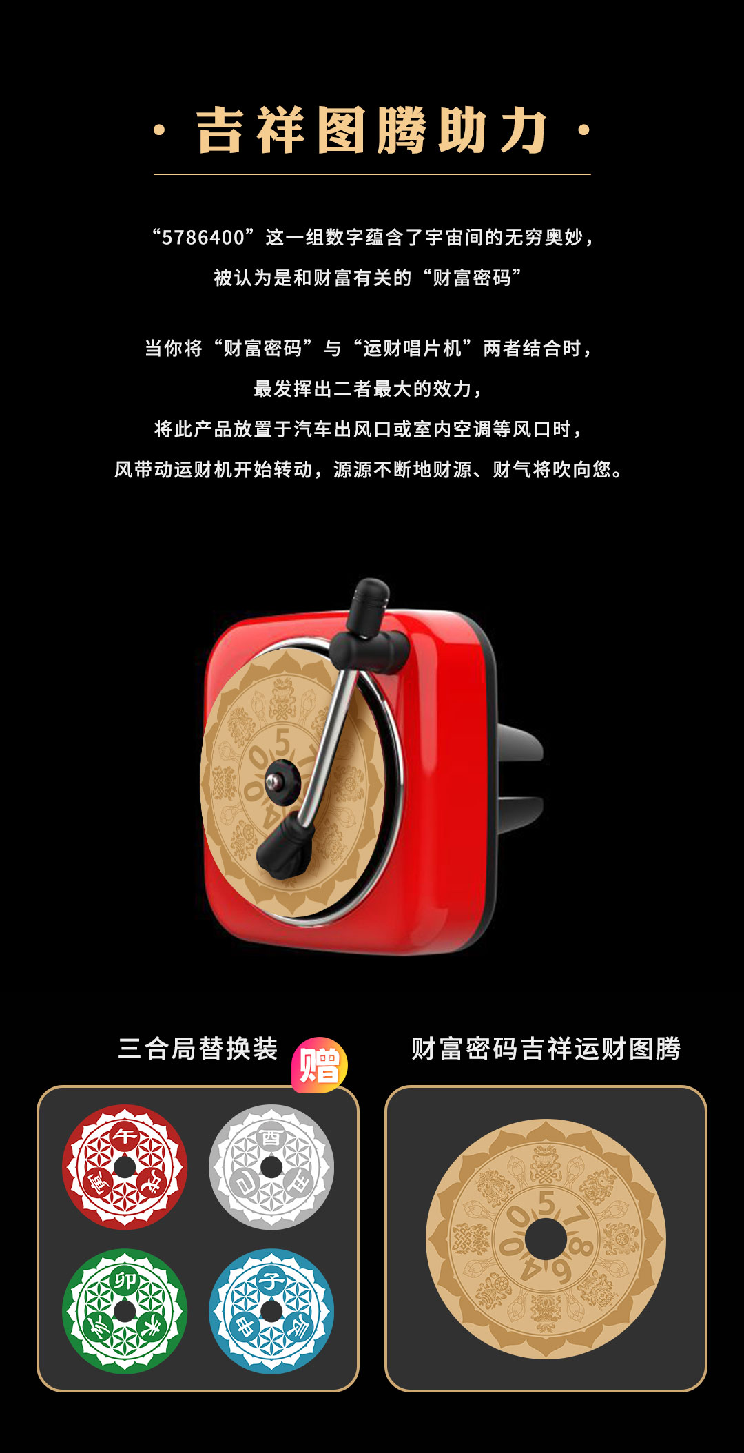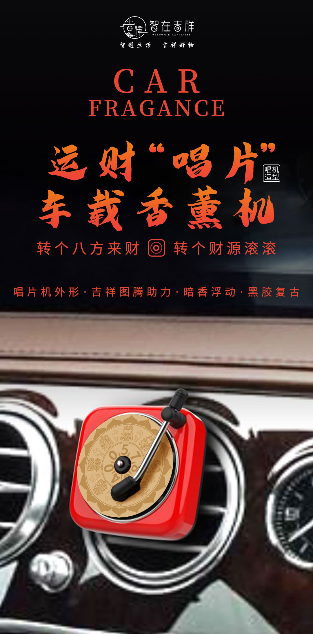 【智在吉祥】运财“唱片”香薰机 车载香薰 汽车空调口摆件 三合