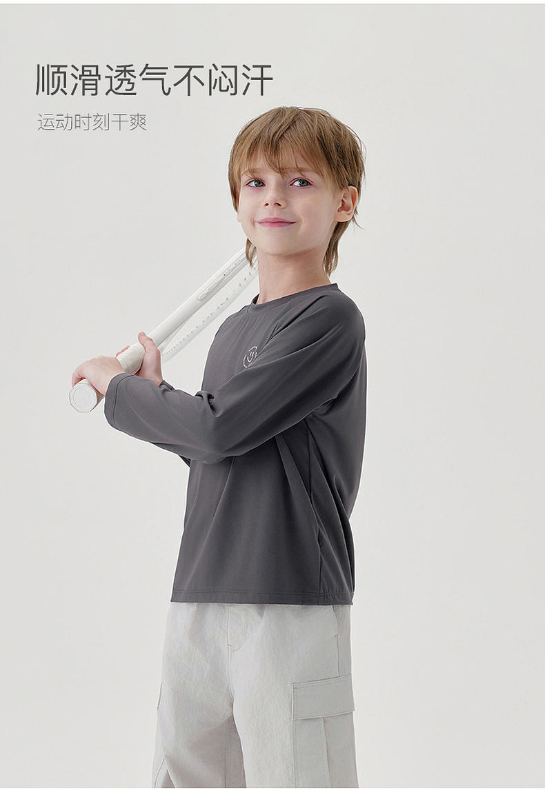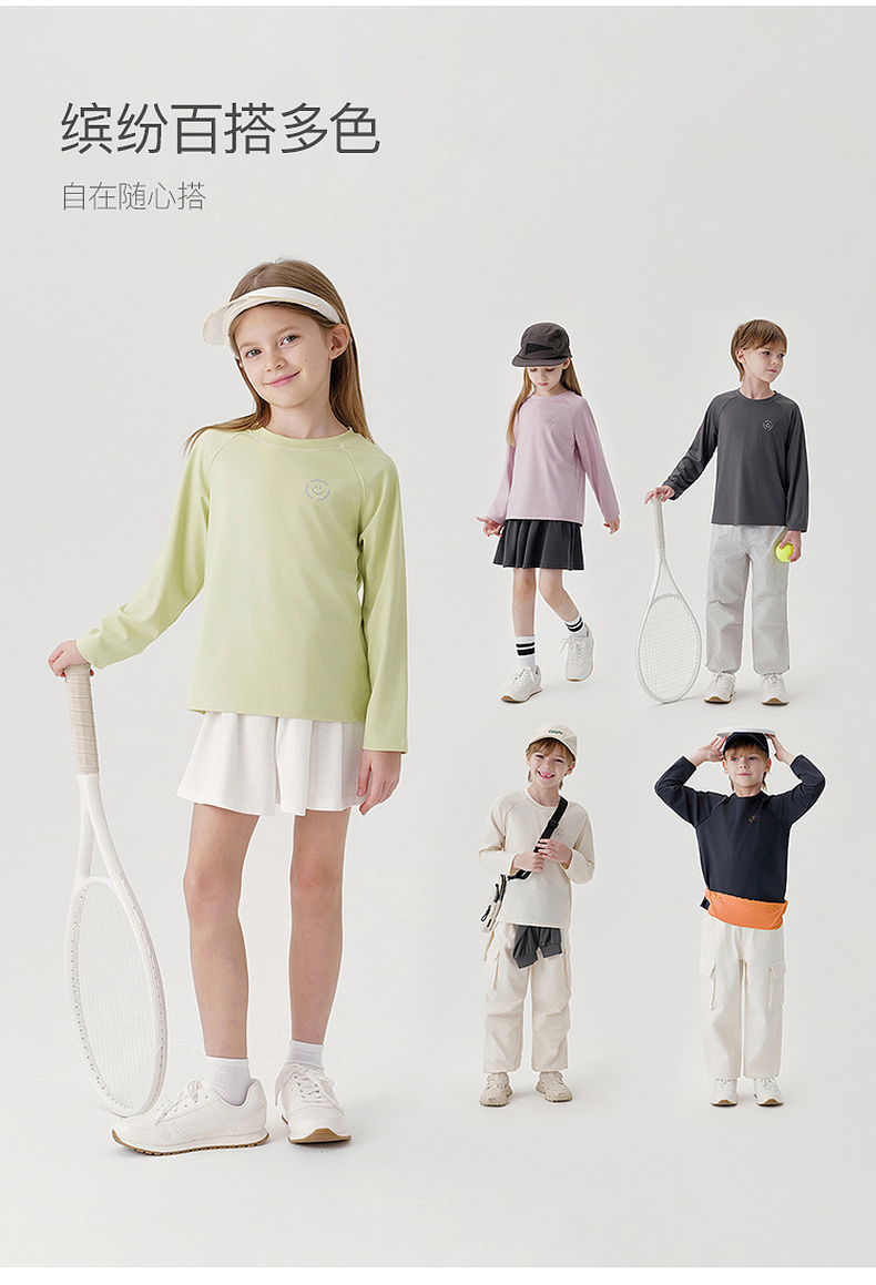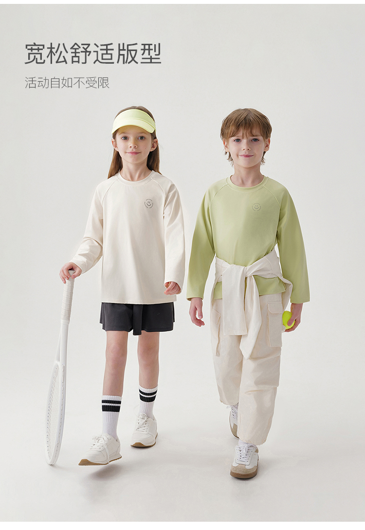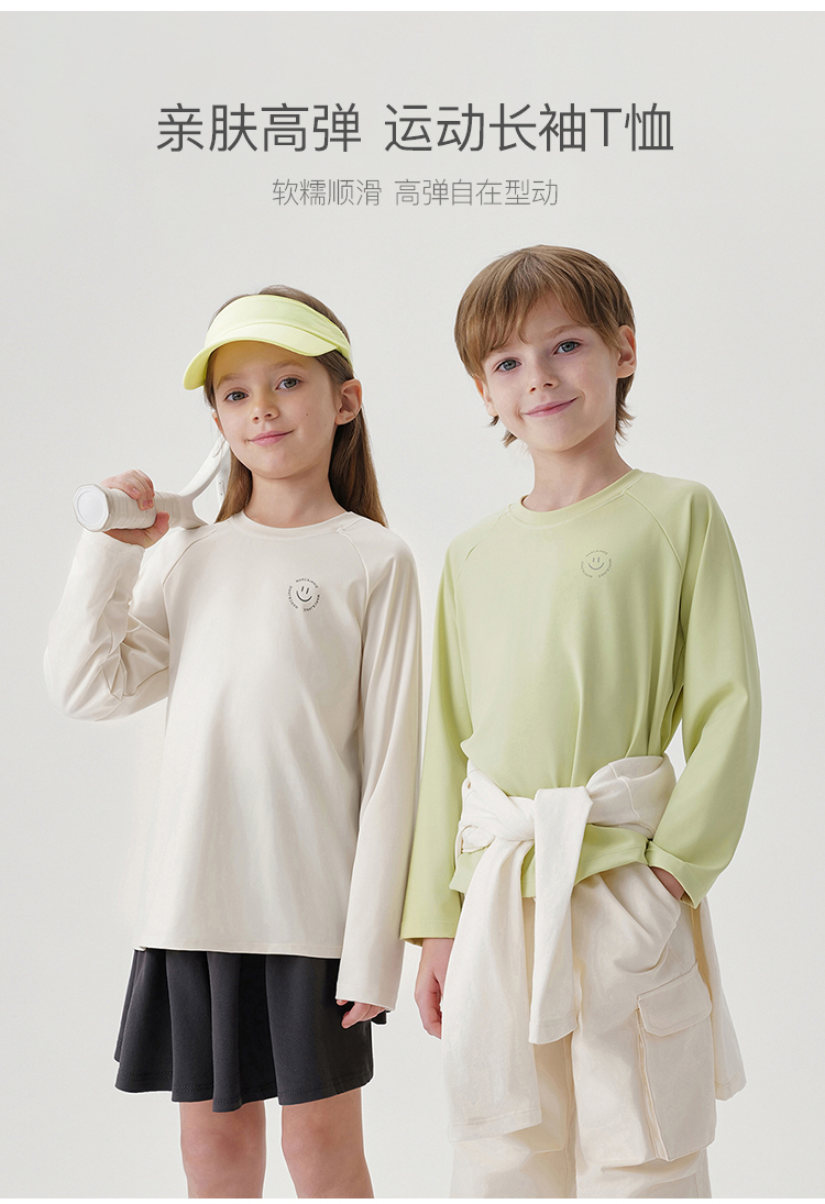 马克珍妮男女童弹力运动插肩长袖T恤儿童上衣2024秋装新款241126
