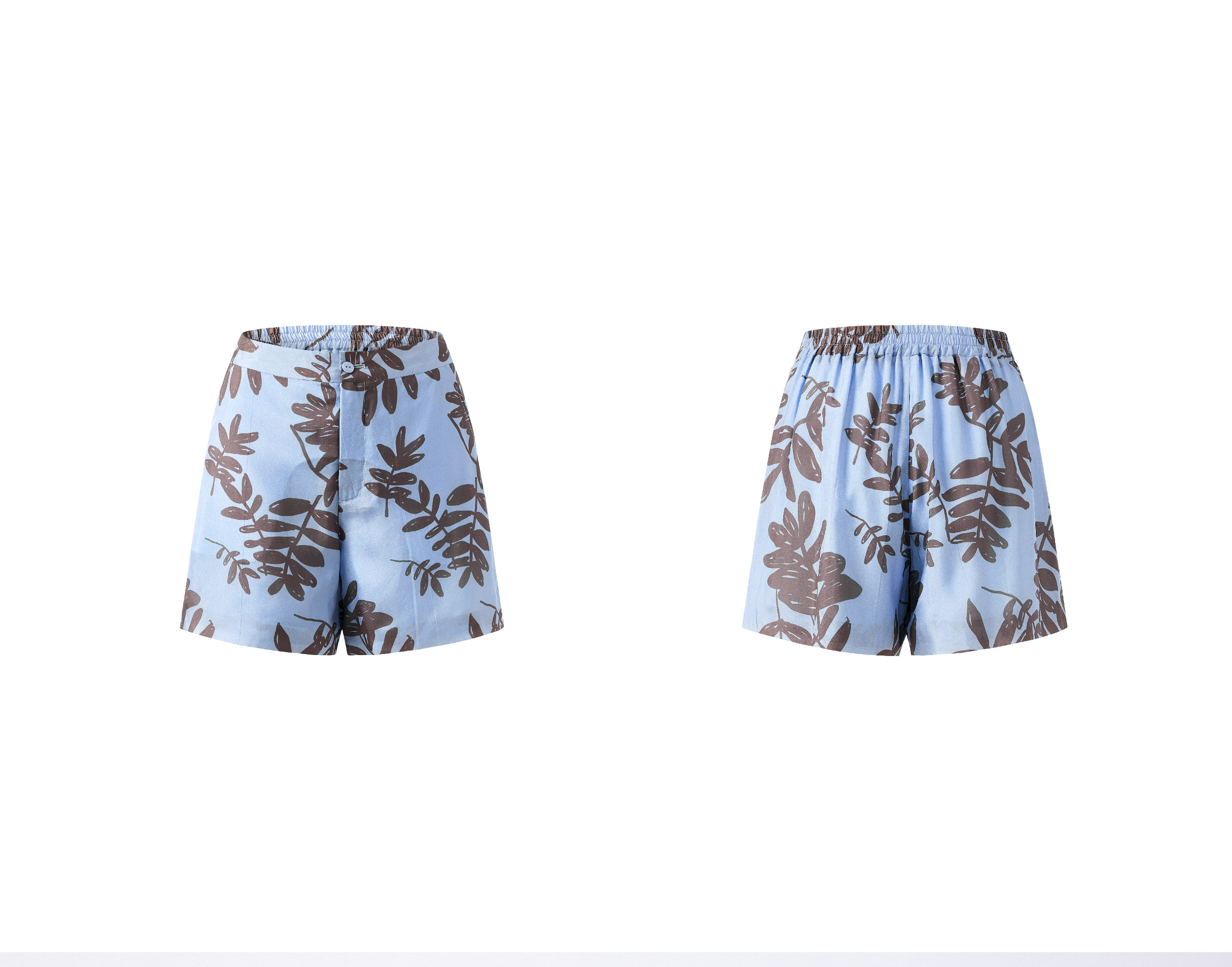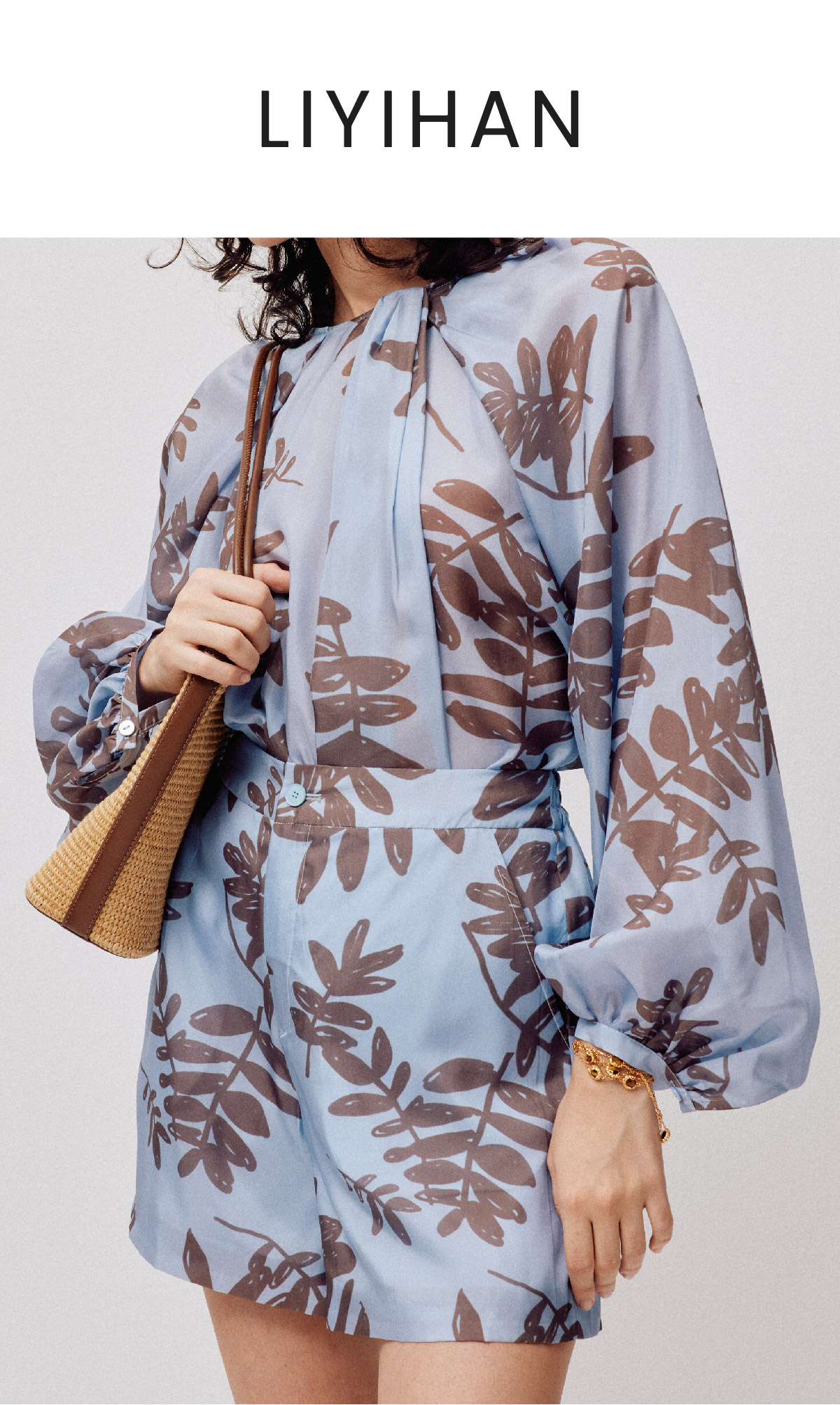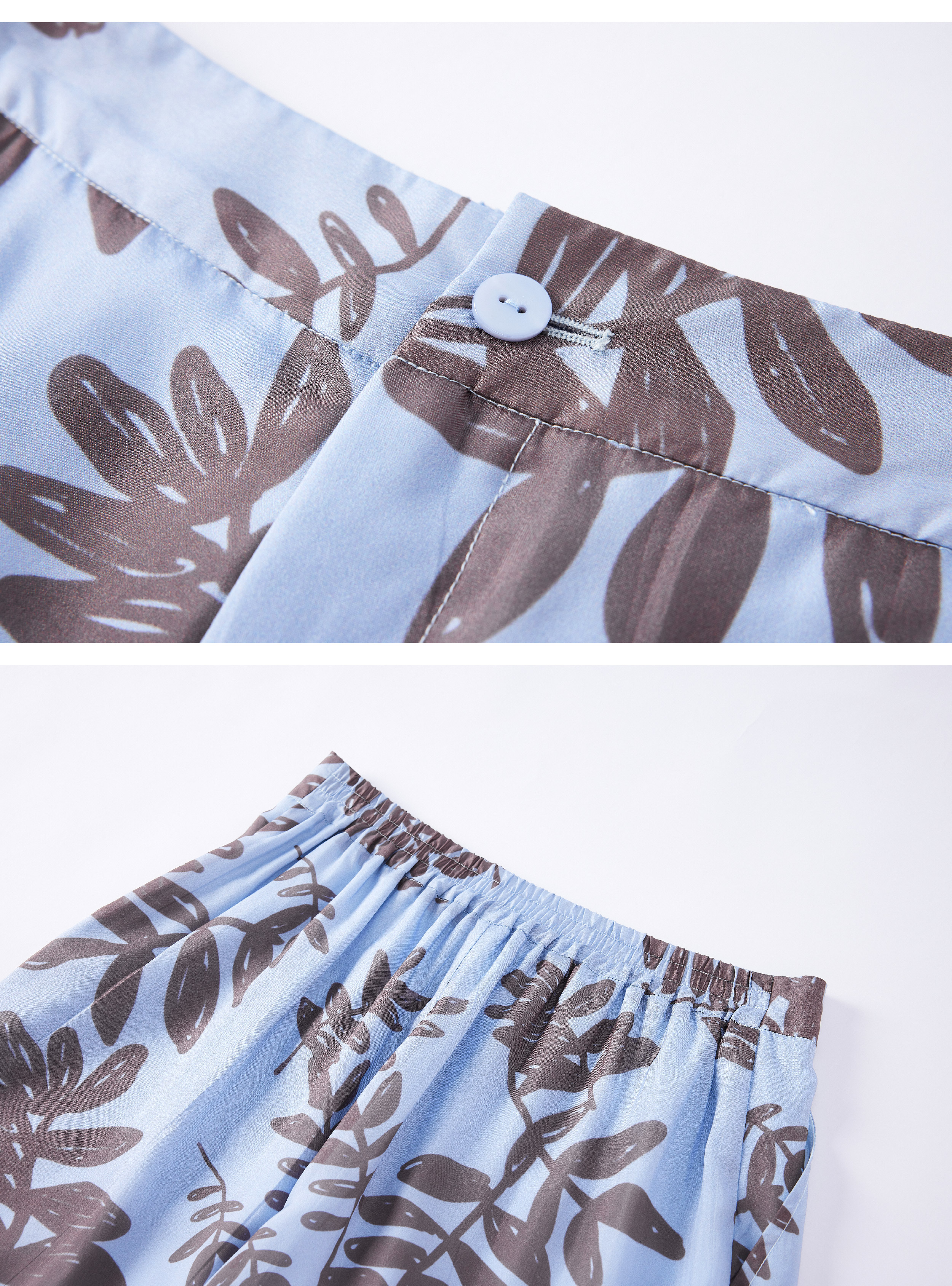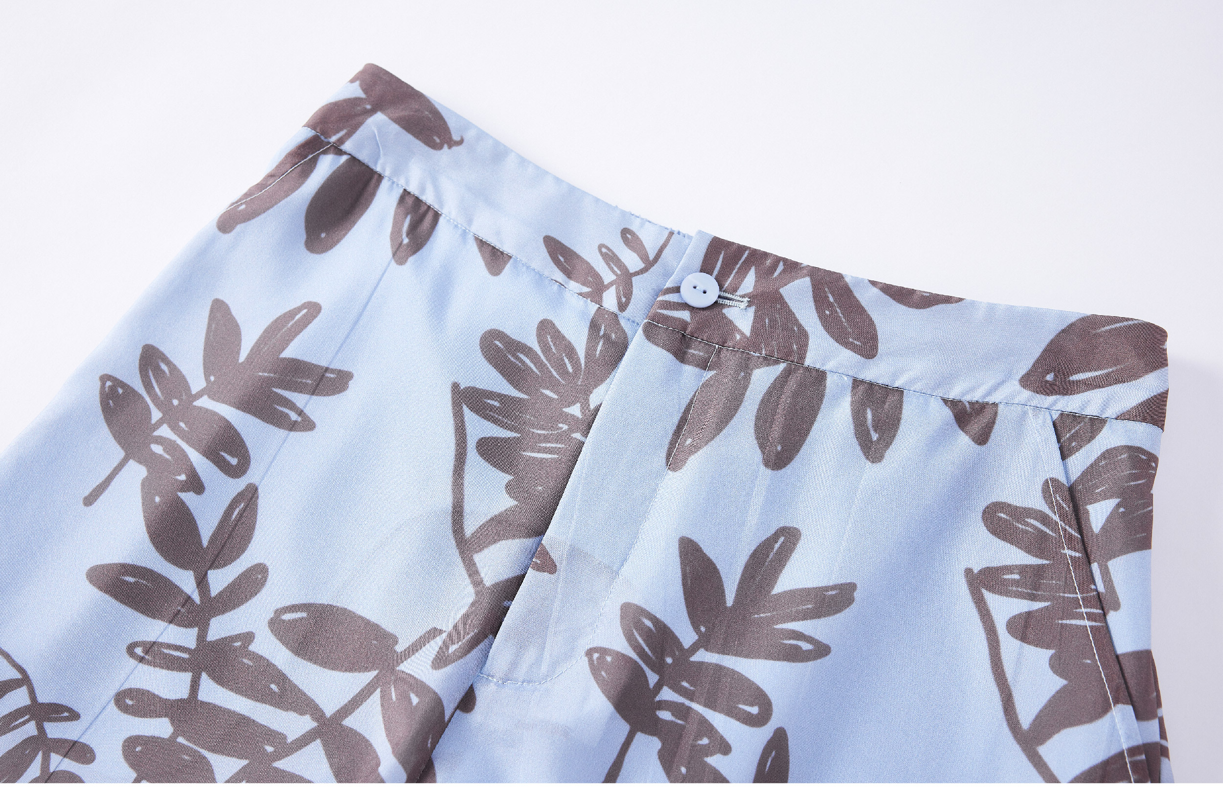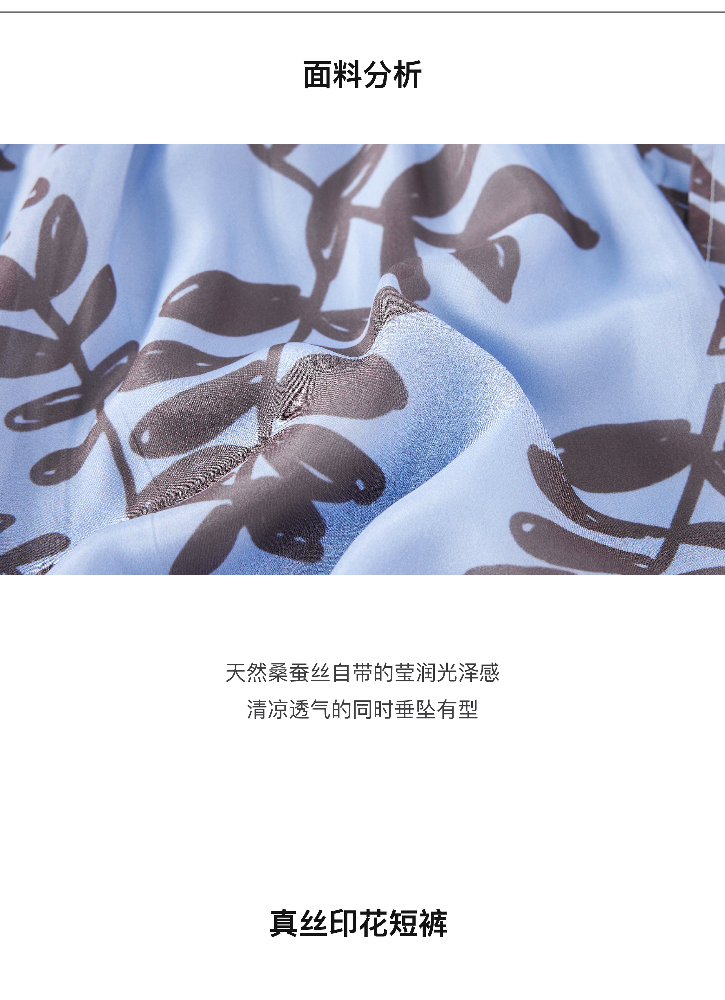 LIYIHAN花影 阔型凉感桑蚕丝真丝印花短裤中腰宽松透气度假风