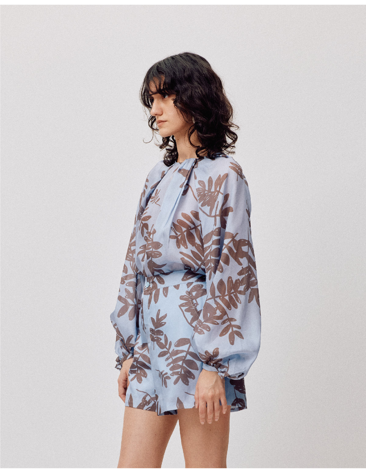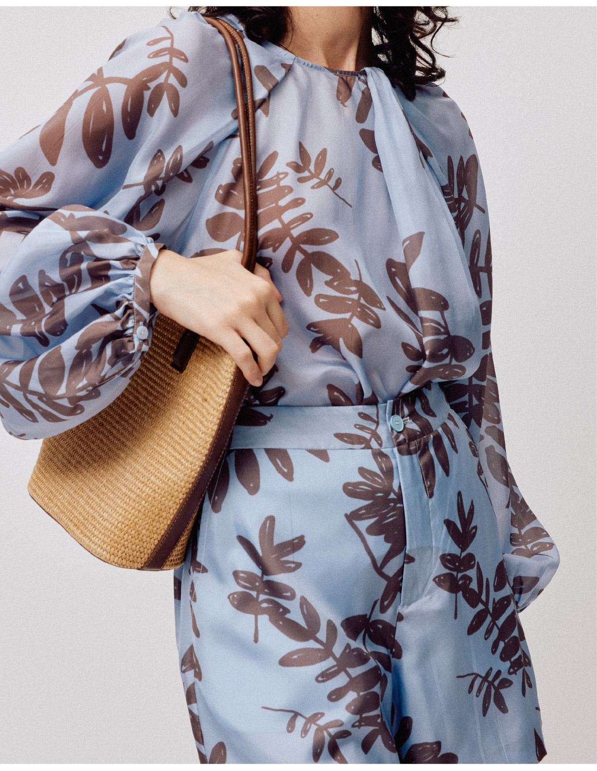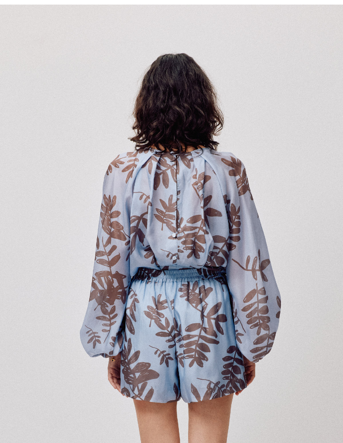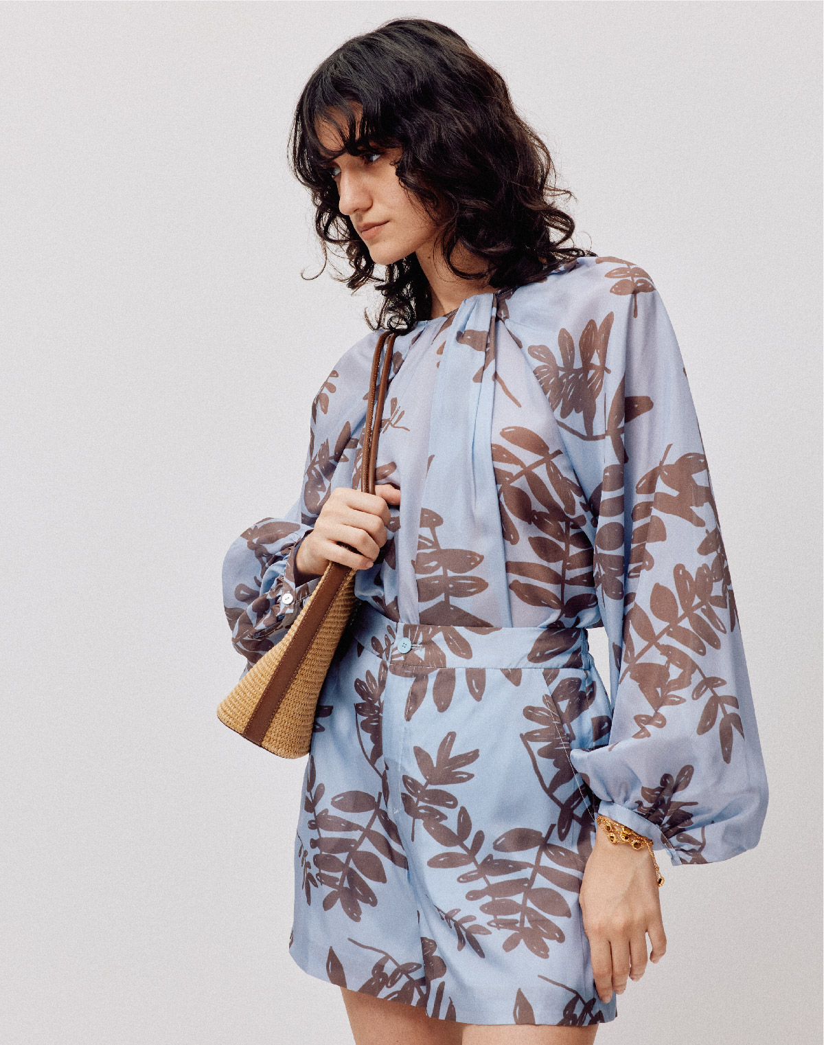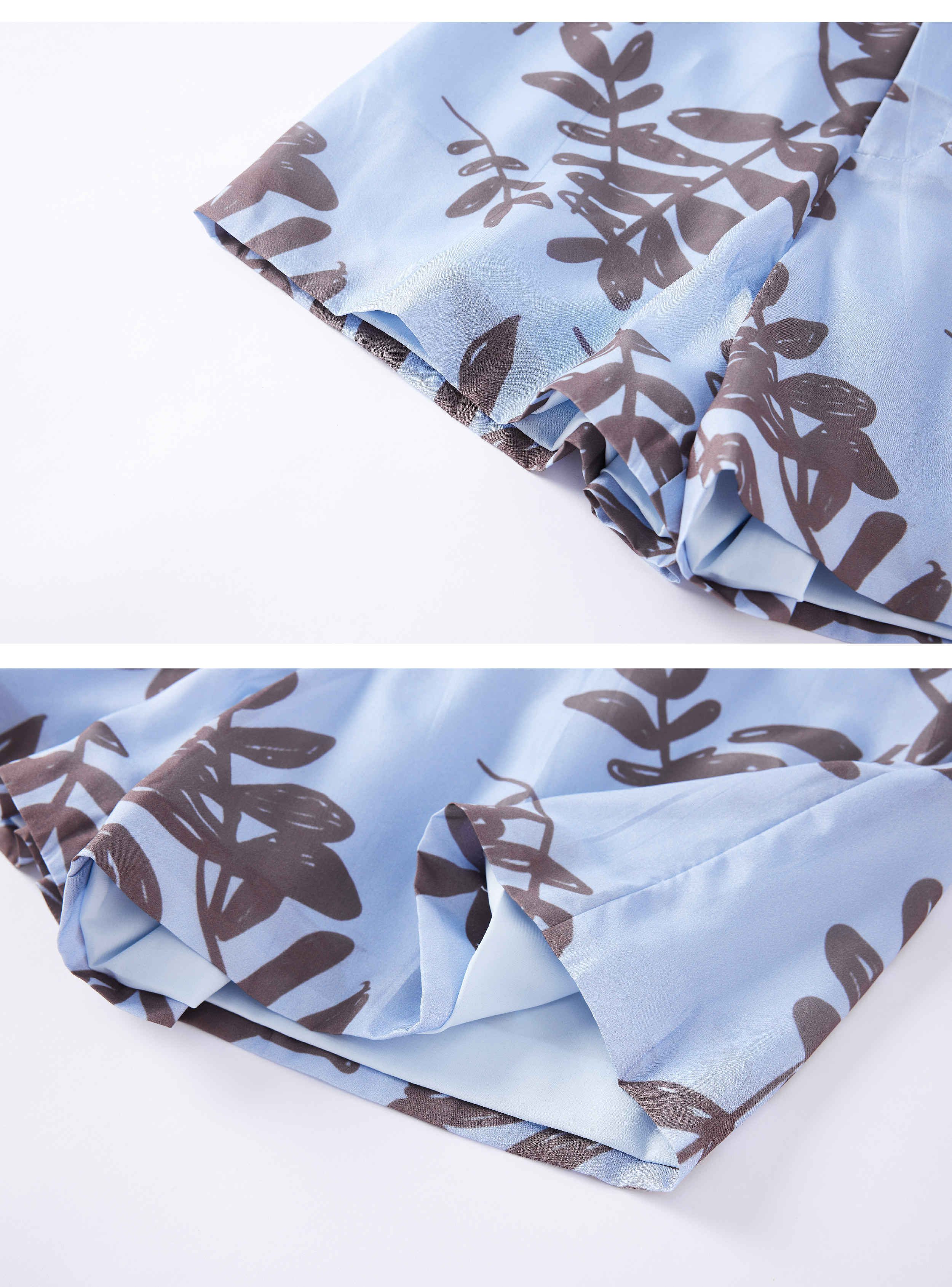 LIYIHAN花影 阔型凉感桑蚕丝真丝印花短裤中腰宽松透气度假风