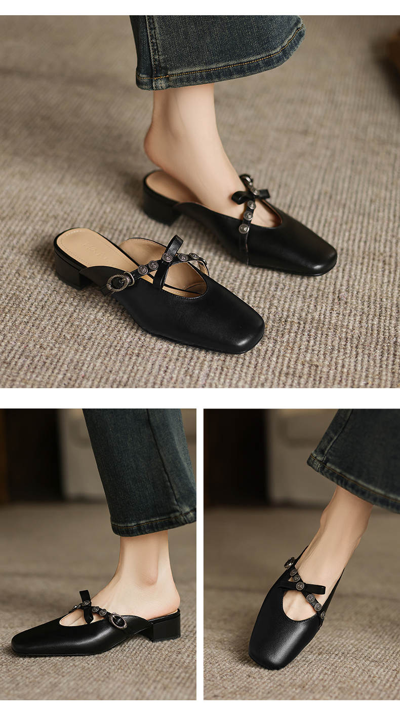 阿么手工女鞋新款一脚蹬浅口半拖包头鞋夏外穿百搭真皮穆勒鞋3CM