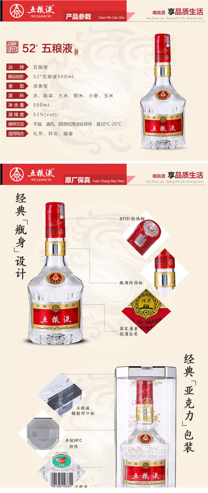 五粮液(52°) 500ml 瓶装浓香型白酒饮品