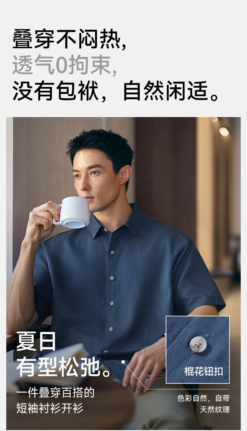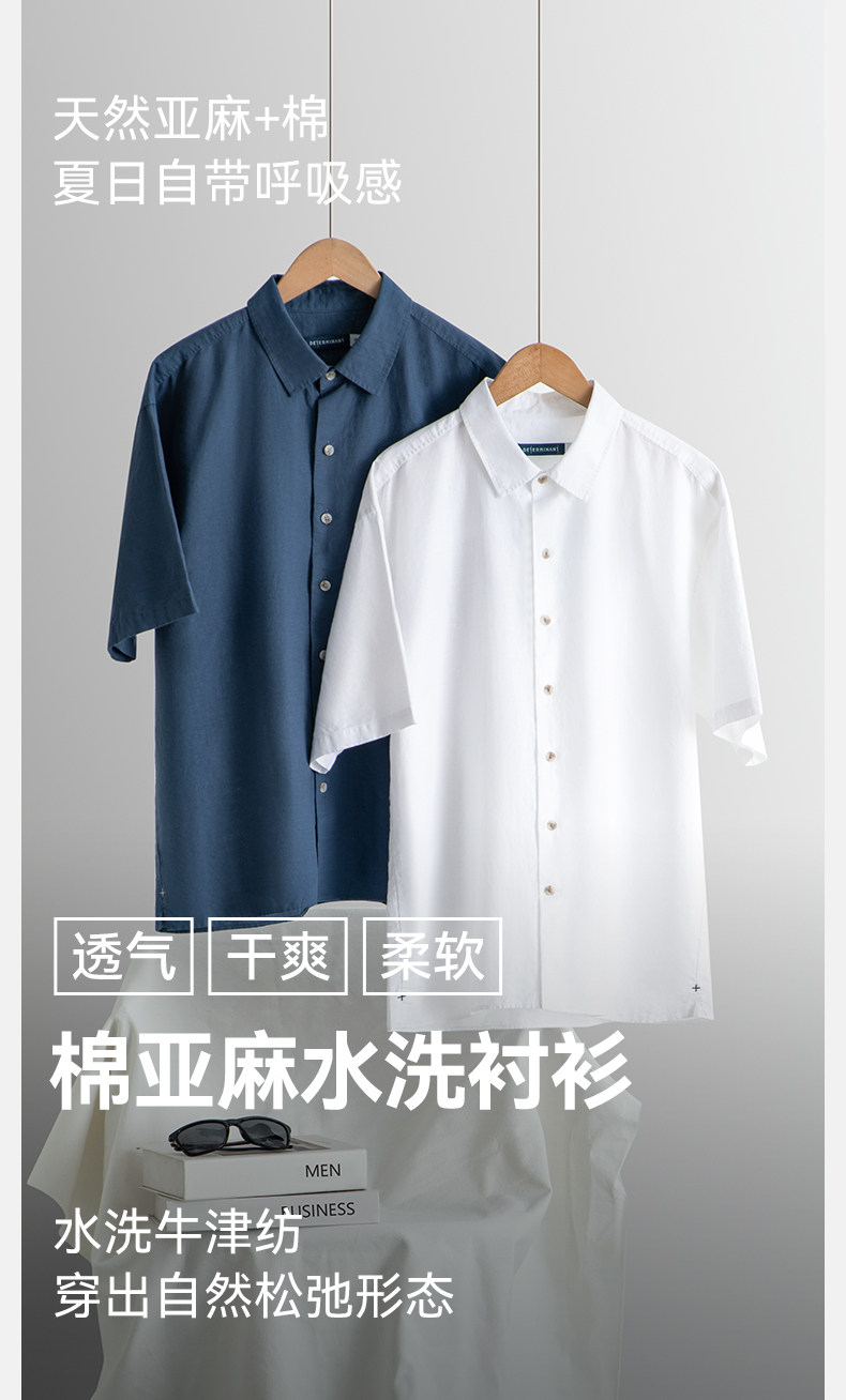 【春夏新品】十如仕叠穿百搭牛津纺棉麻水洗休闲短袖衬衫开衫CS21-02