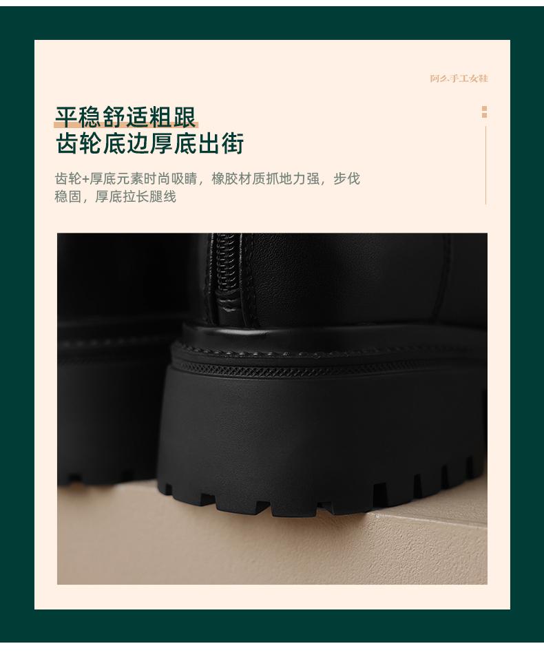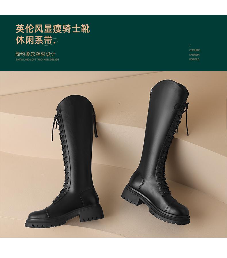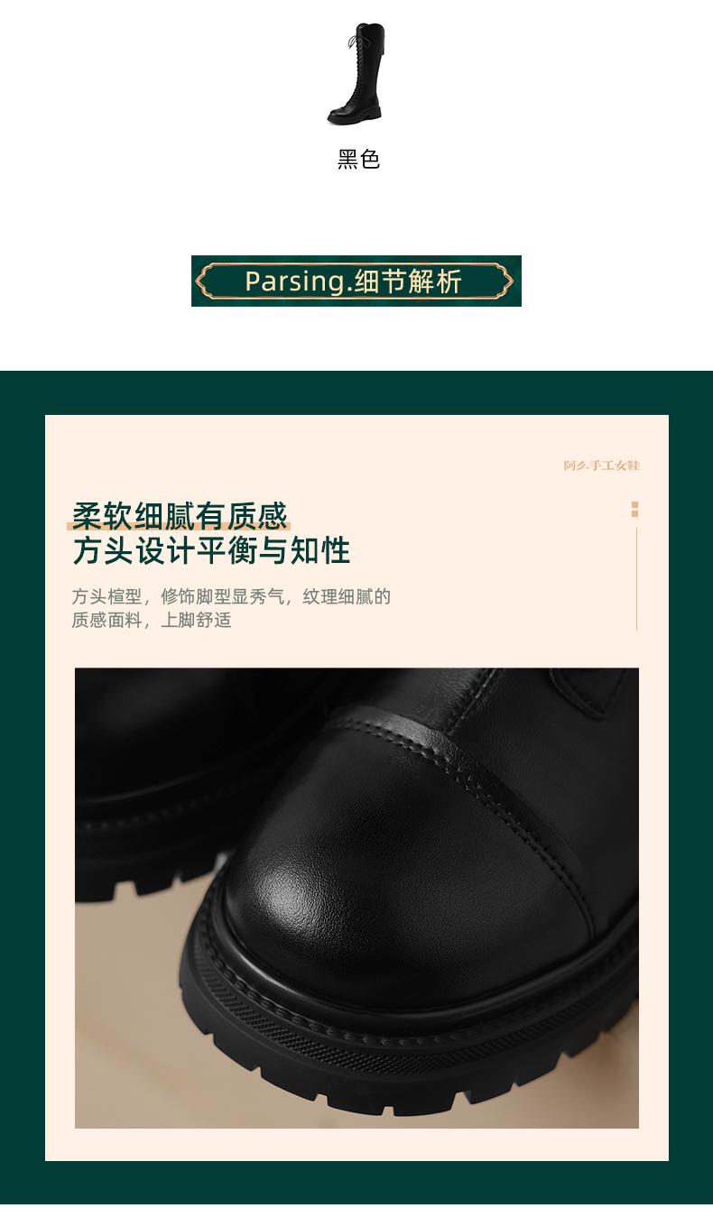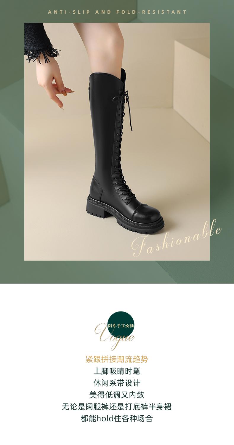 阿么手工女鞋显瘦小个子骑士靴厚底4CM秋冬黑色百搭时尚弹力长靴