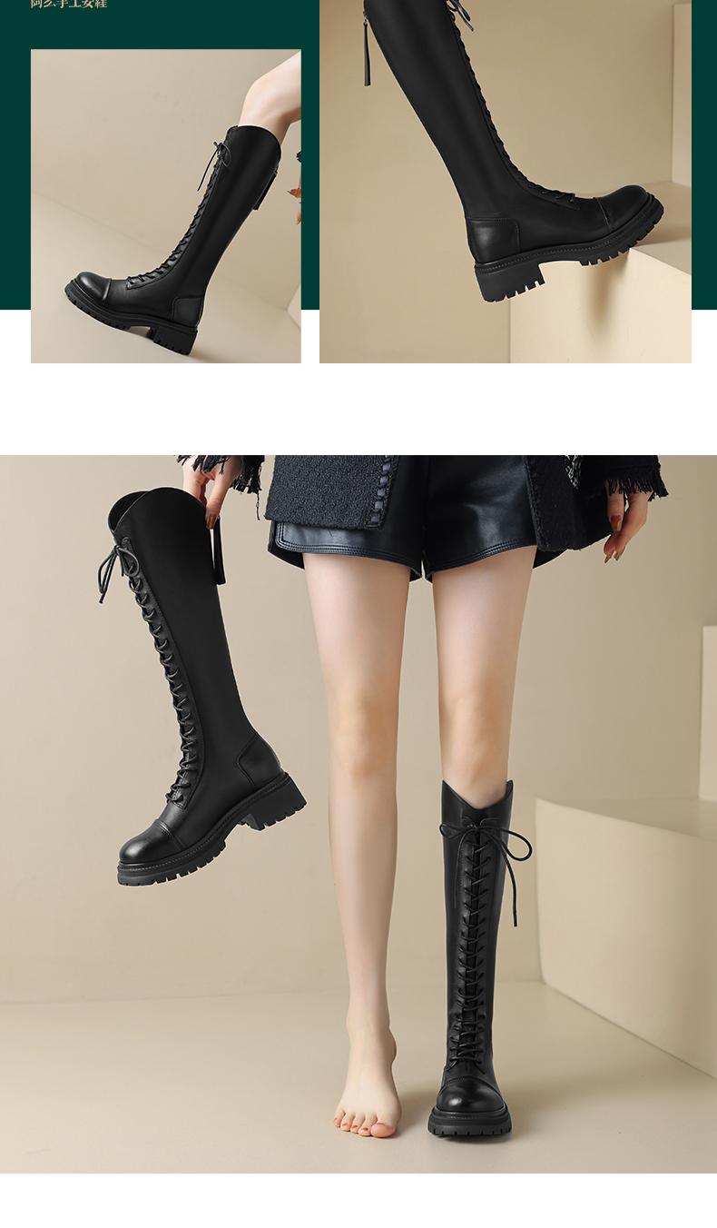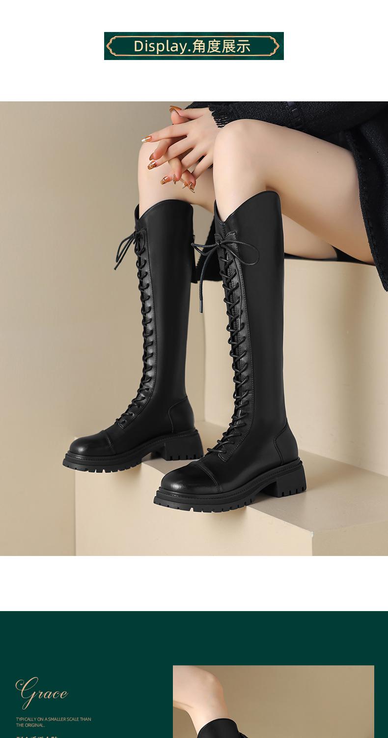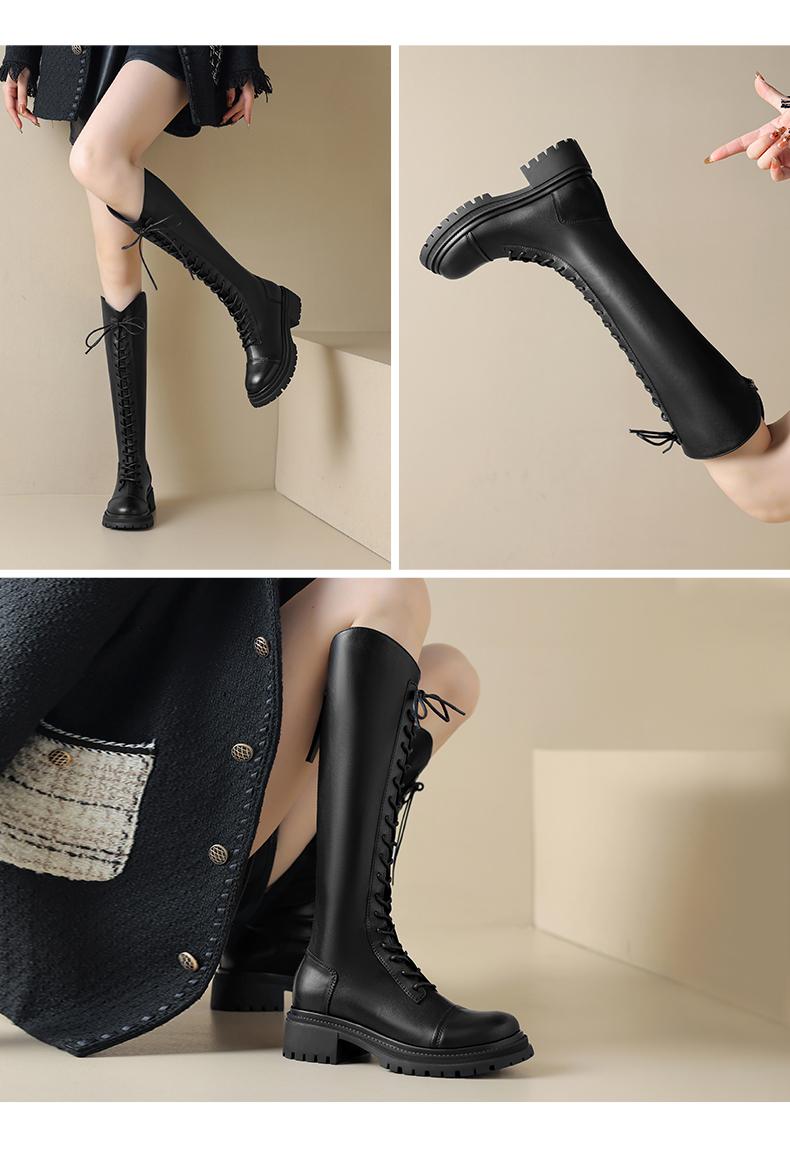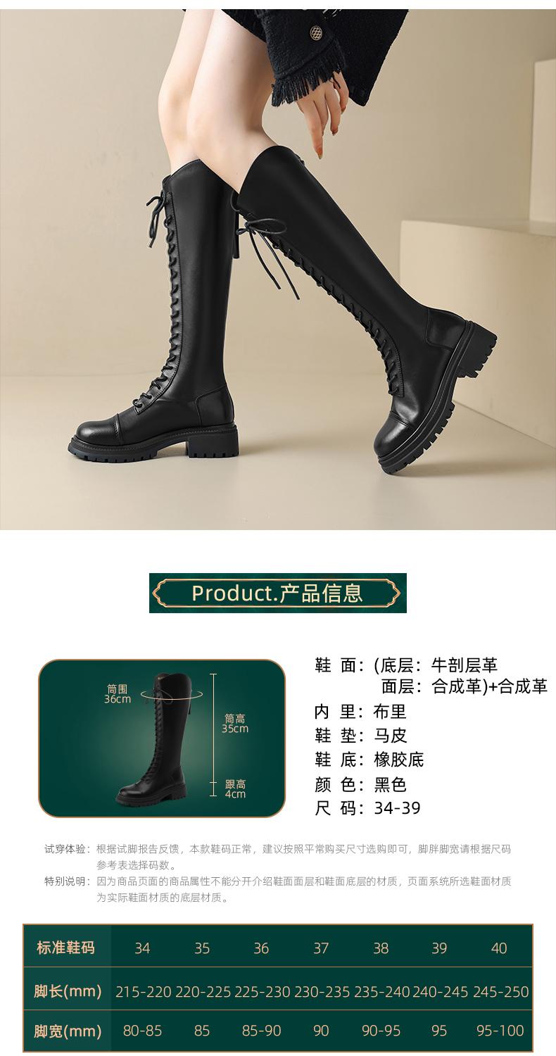 阿么手工女鞋显瘦小个子骑士靴厚底4CM秋冬黑色百搭时尚弹力长靴