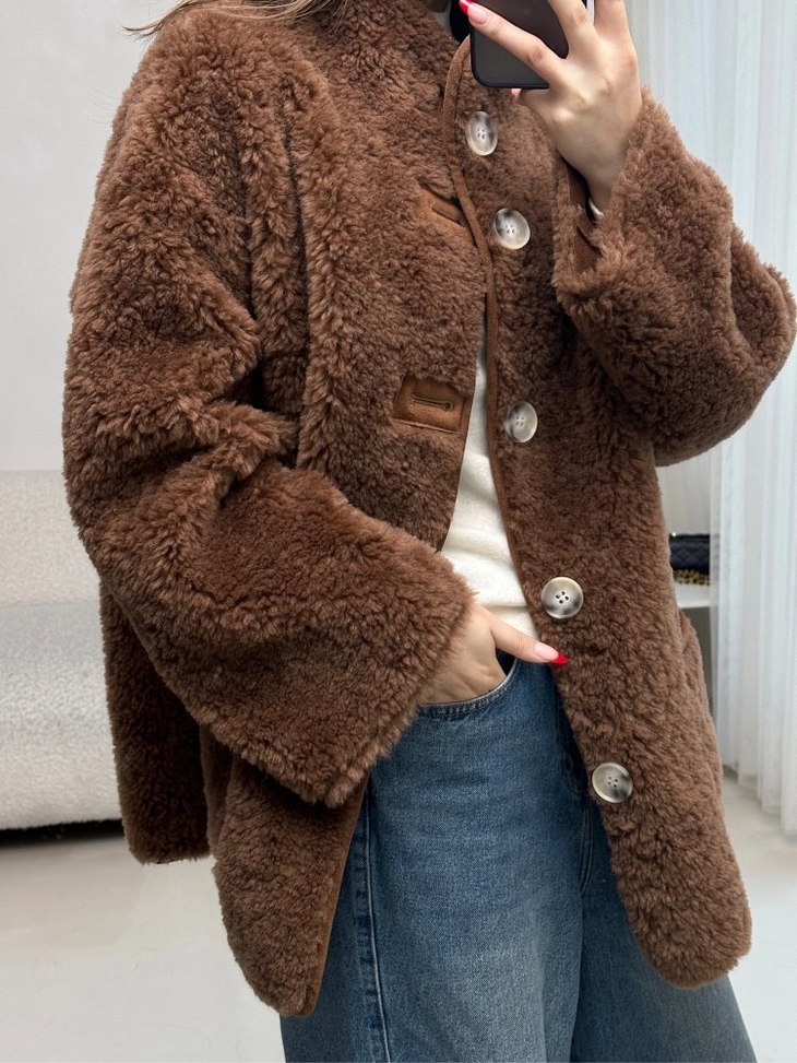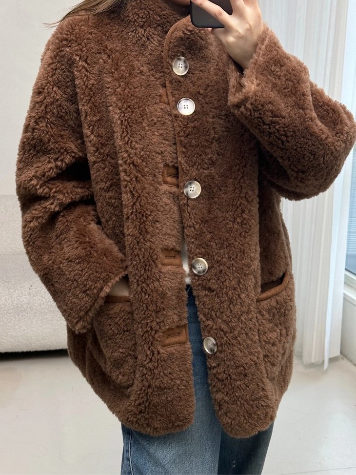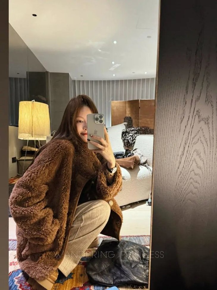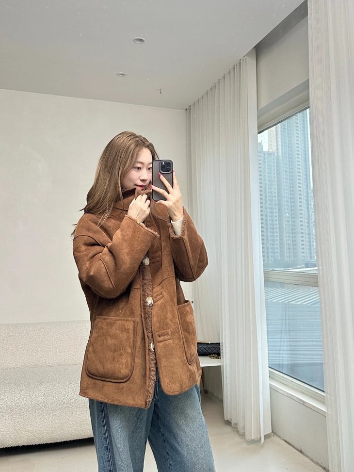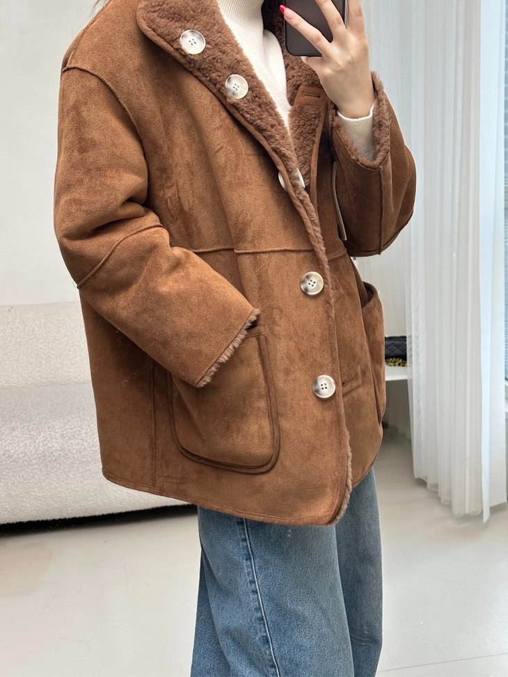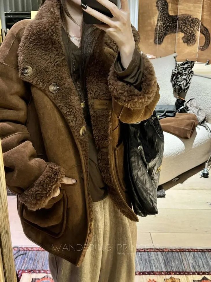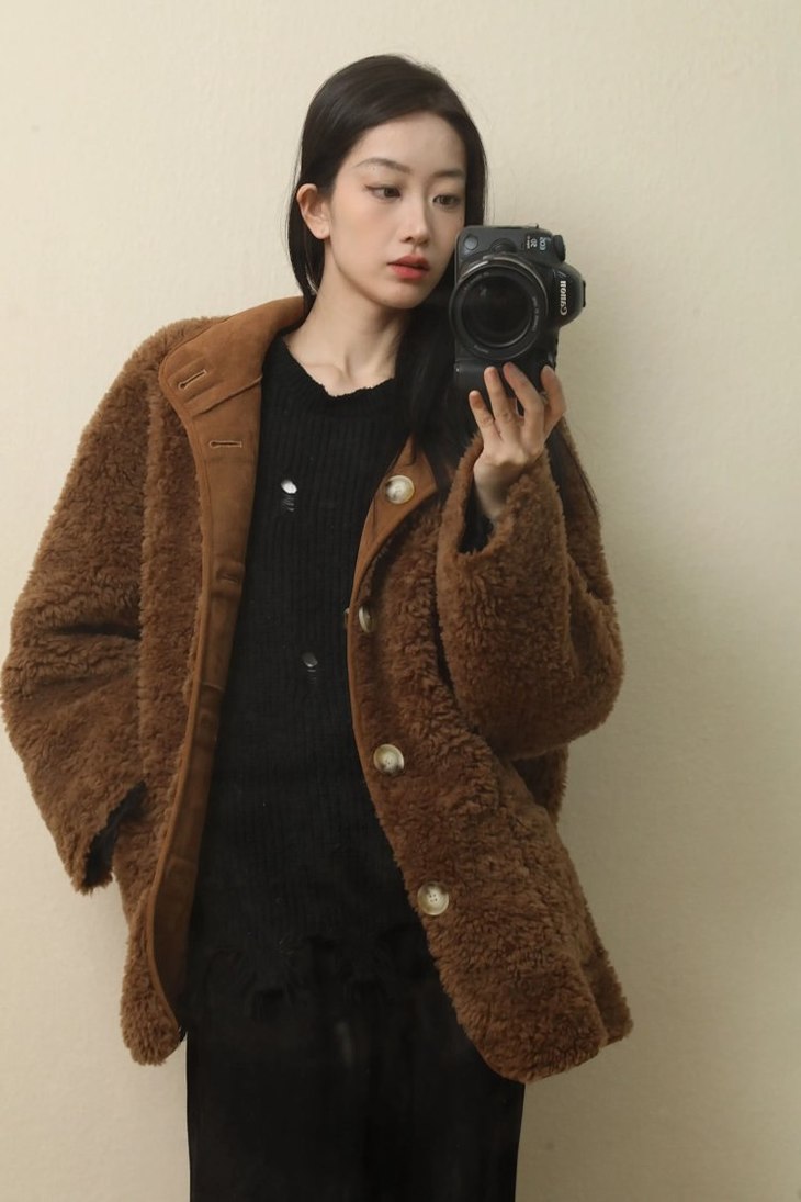 get韩女穿搭❗️【双面穿100%羊毛麂皮大衣】