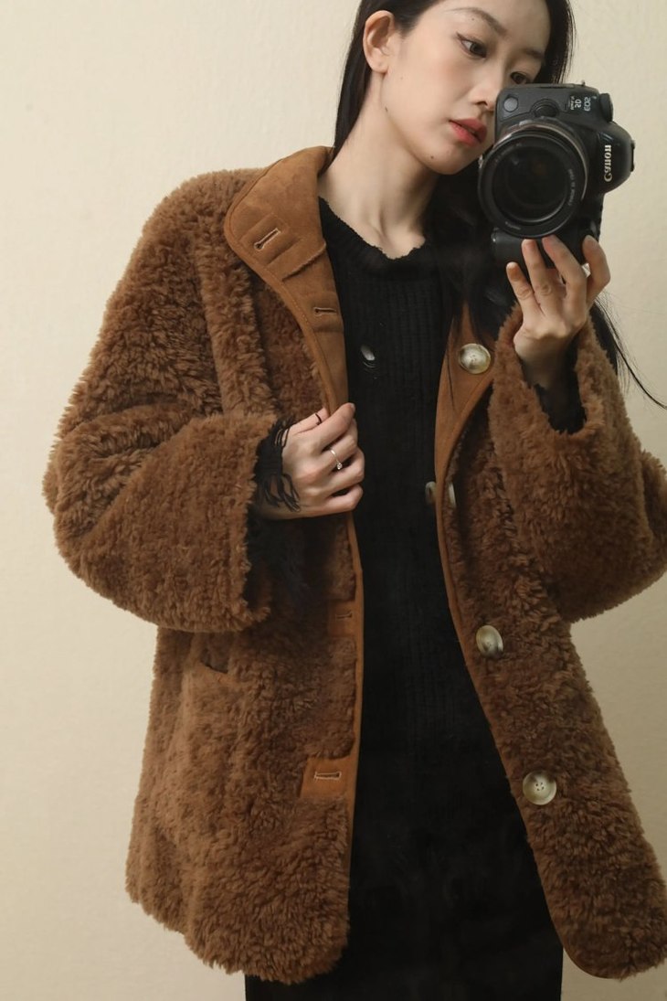 get韩女穿搭【双面穿100%羊毛麂皮大衣】100%绵羊毛🦙手感柔软有弹性,内里复合麂皮~正反都可以穿WD
