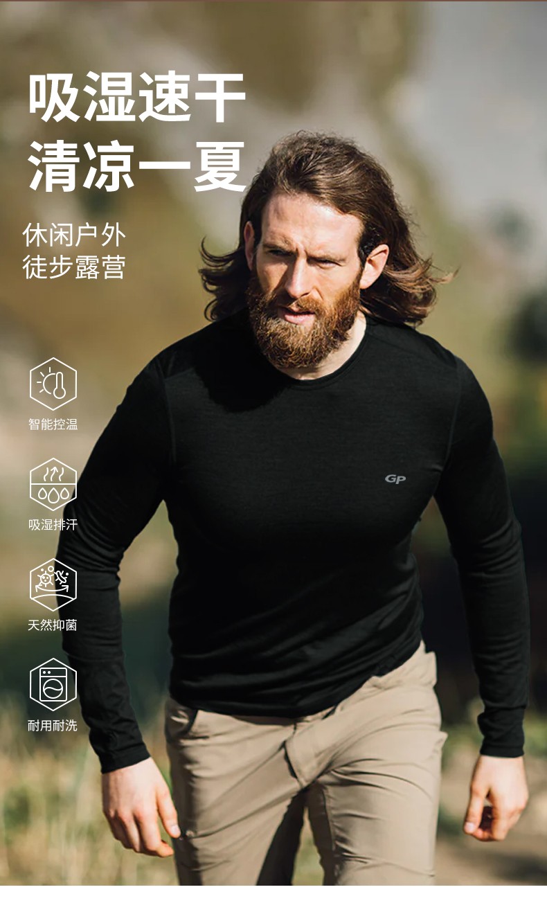 灰壳(Grey Preparer)春夏户外男款美丽诺天丝羊毛透气运动圆领长袖