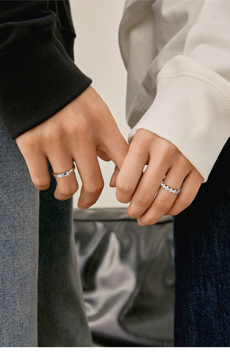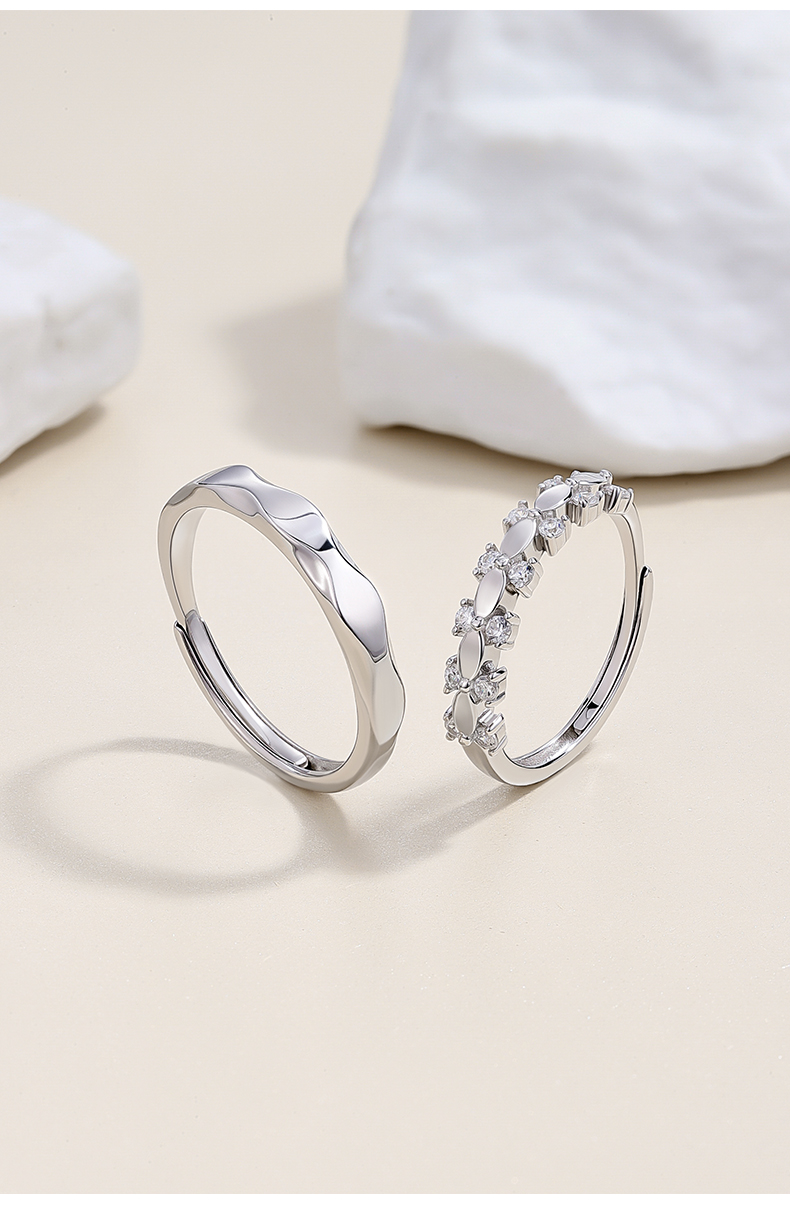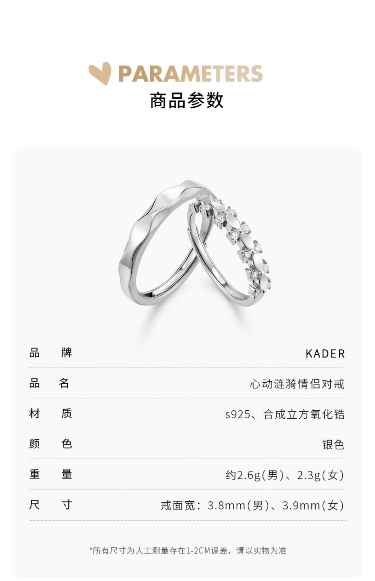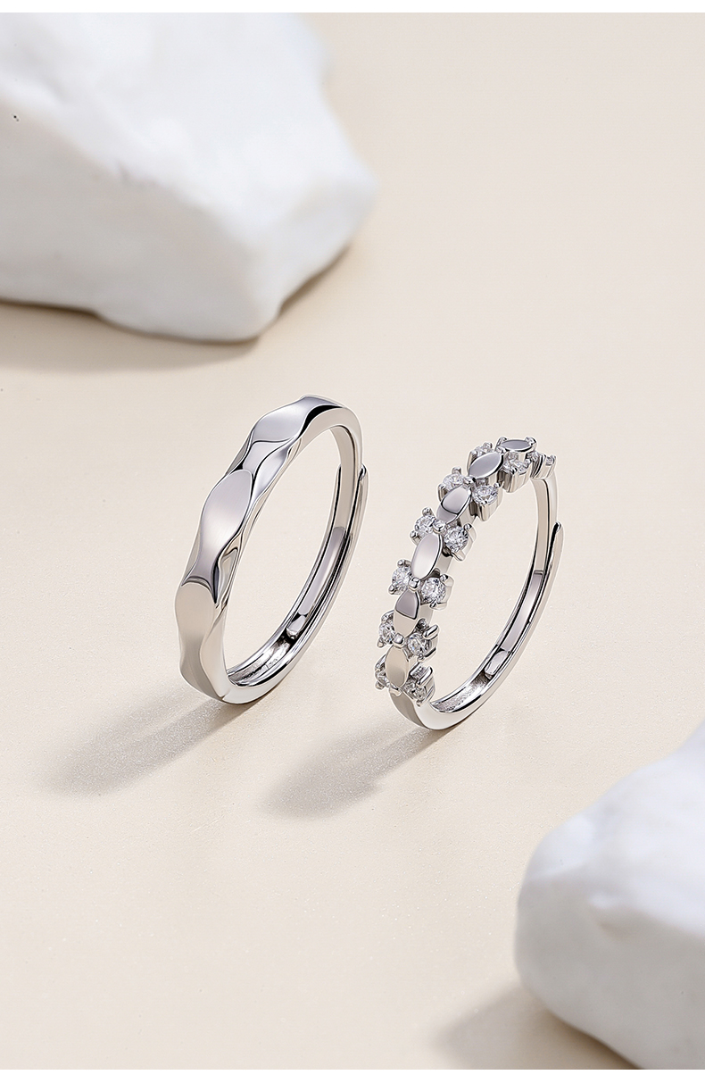 KADER卡蒂罗 甜蚀冰川 999足银 情侣对戒小众素圈开口可调节对戒 简约百搭极简风配饰 纪念日礼物礼盒 送女友