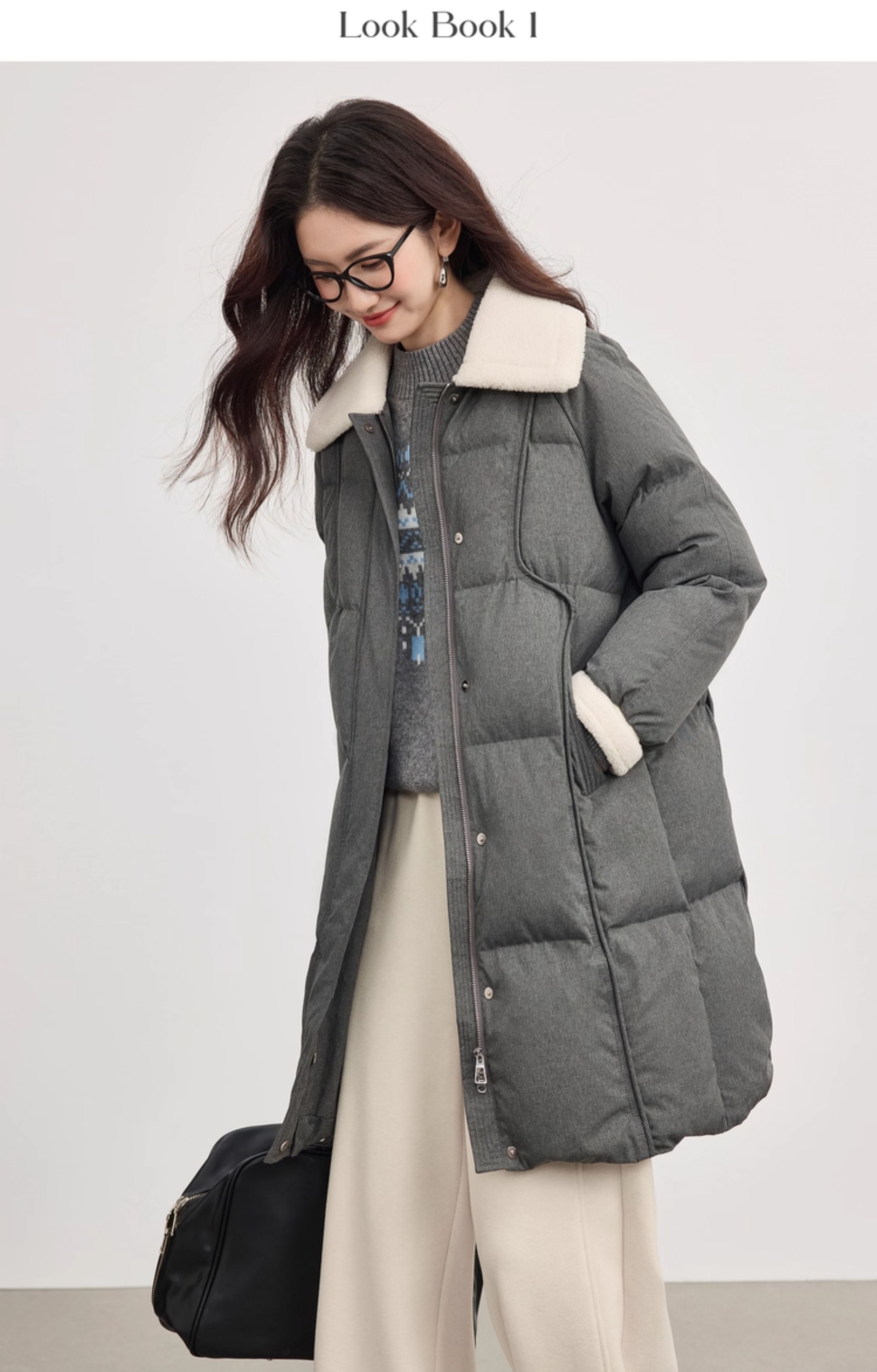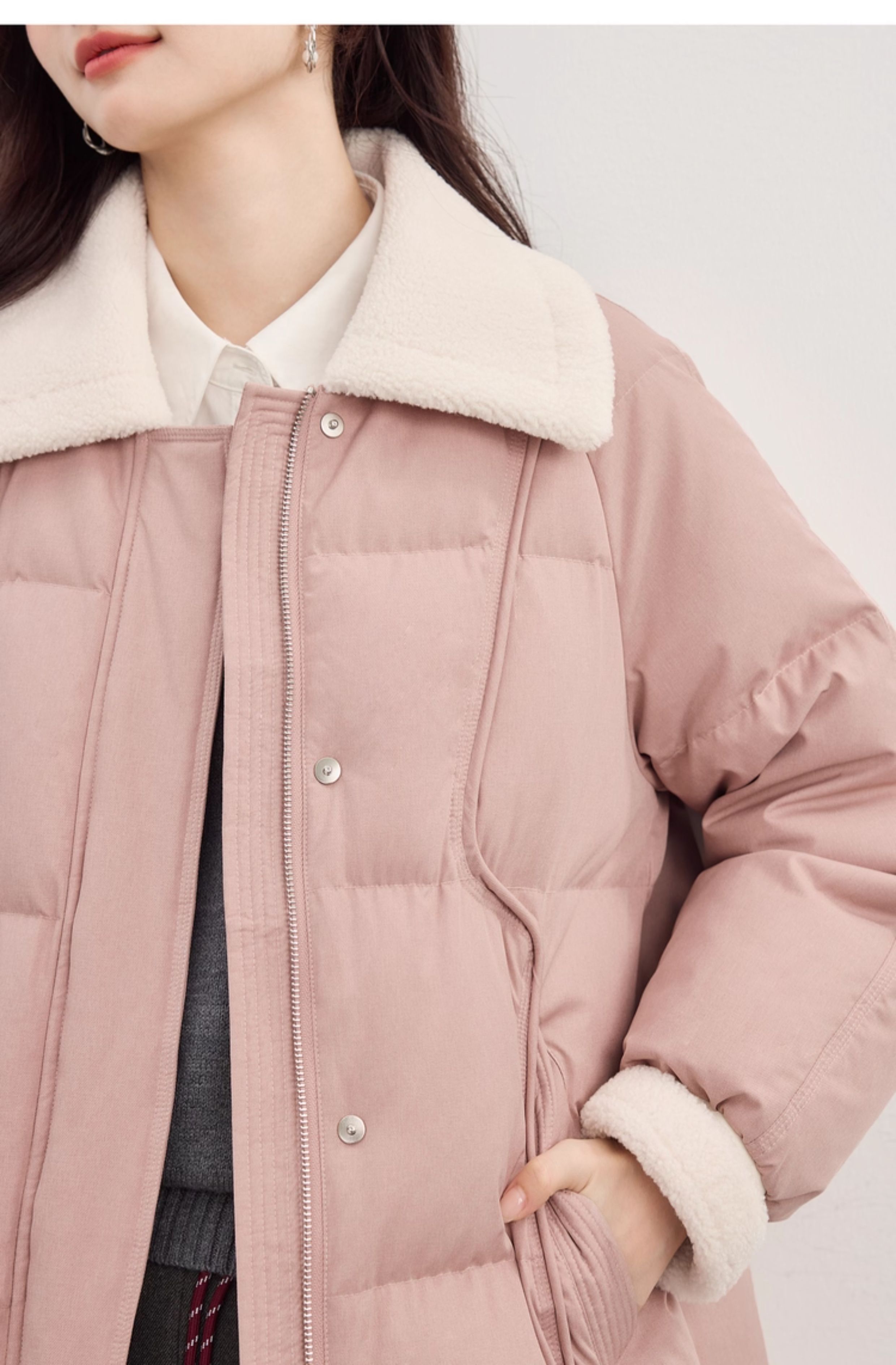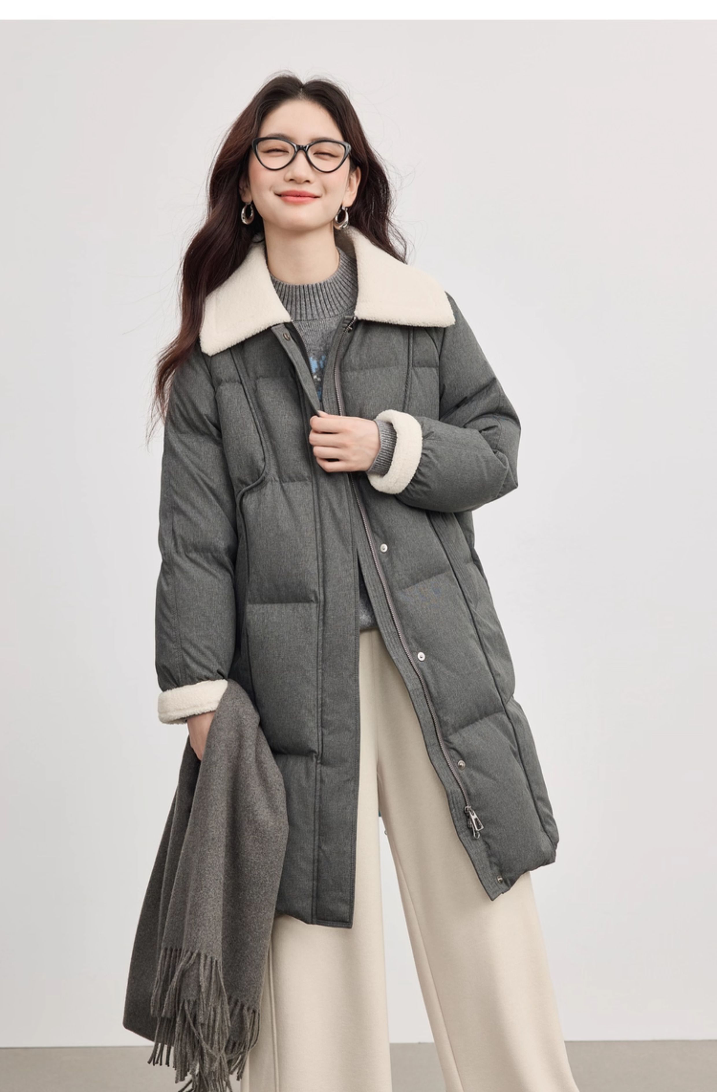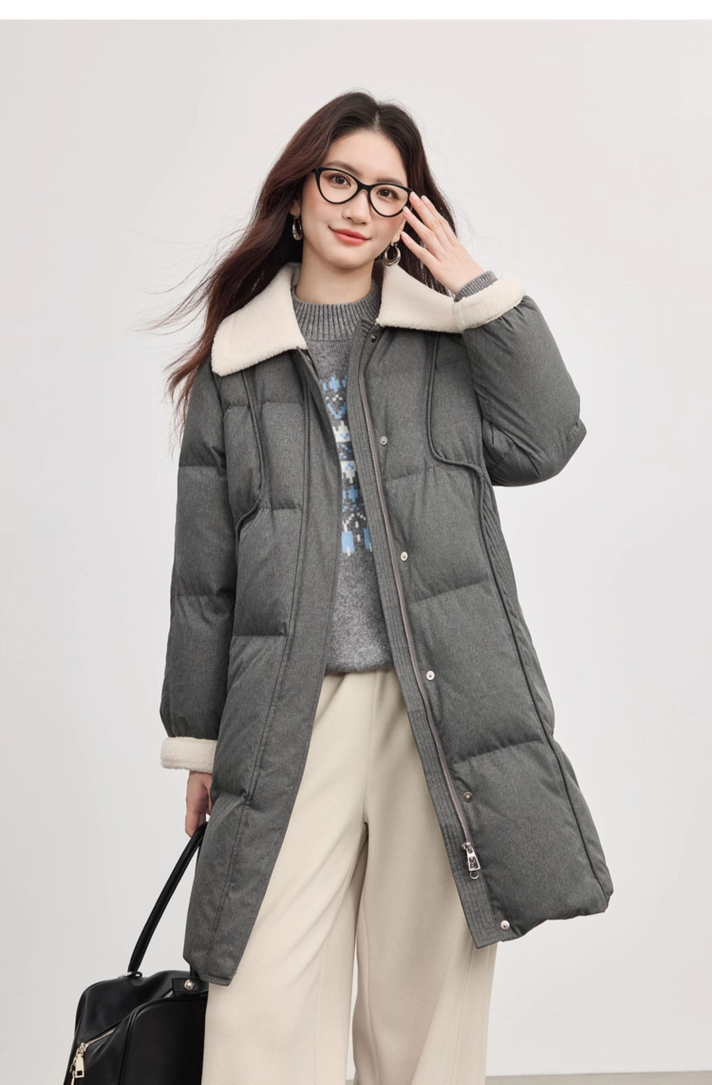 【10/15新品】熙世界重磅90白鸭绒羽绒服女中长款毛绒翻领保暖外套2025冬季新款