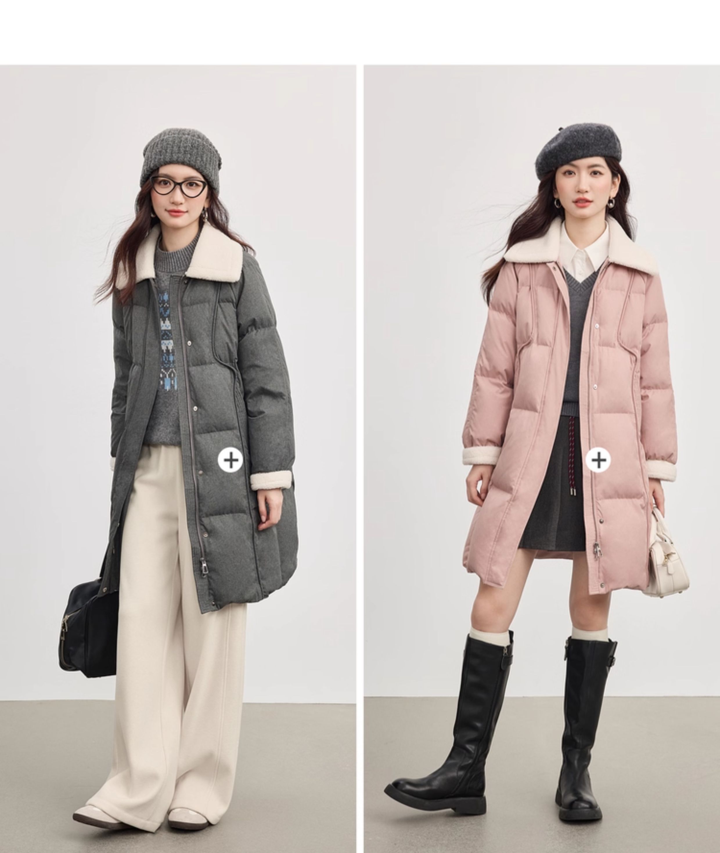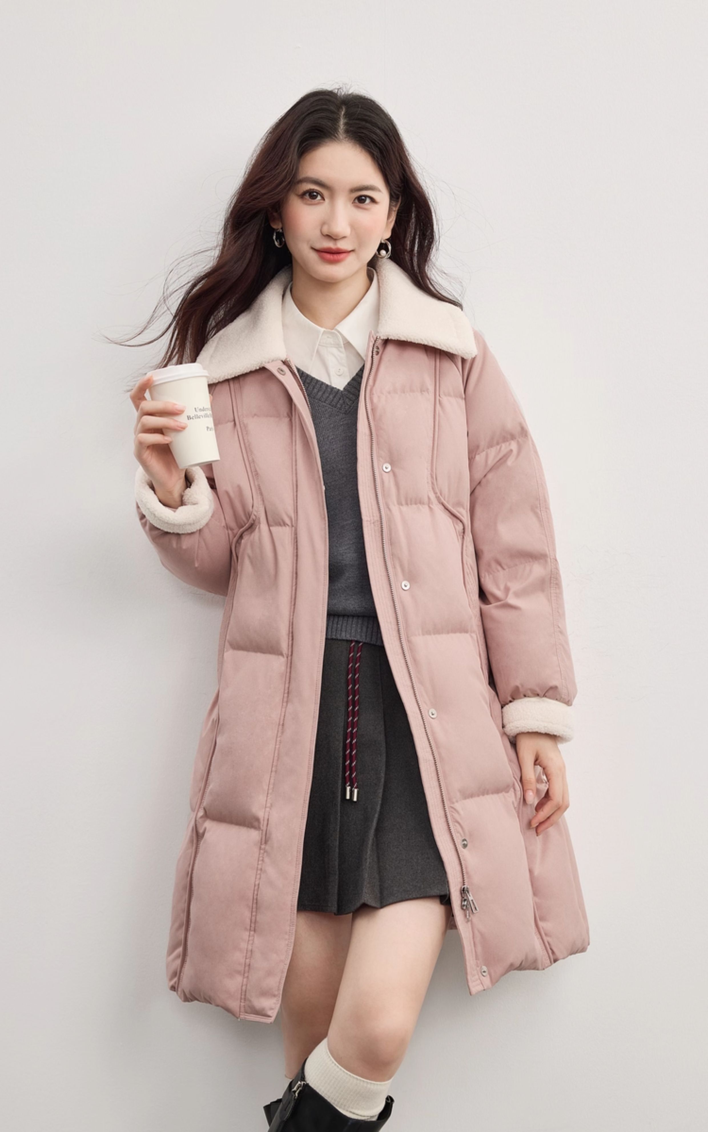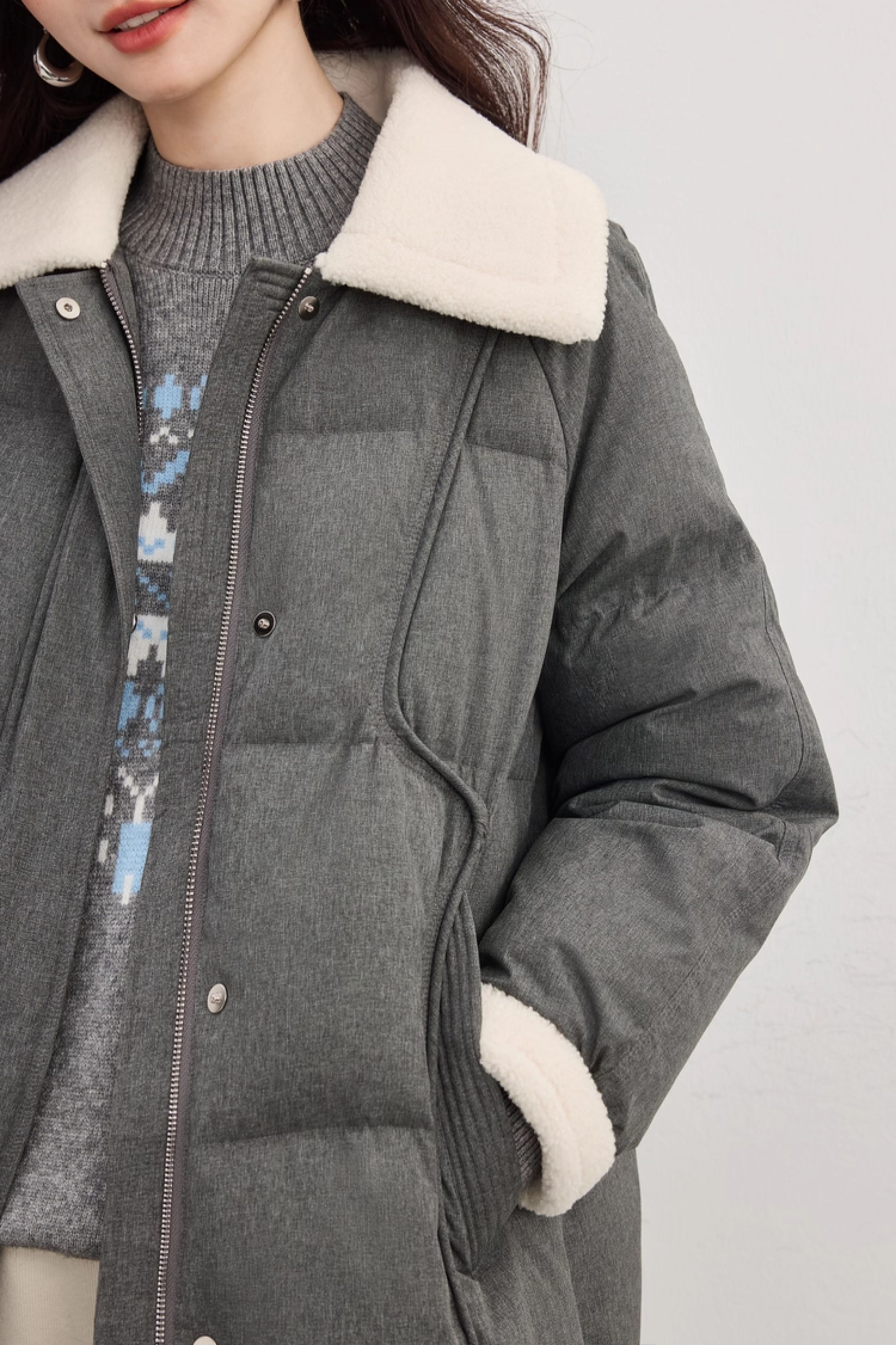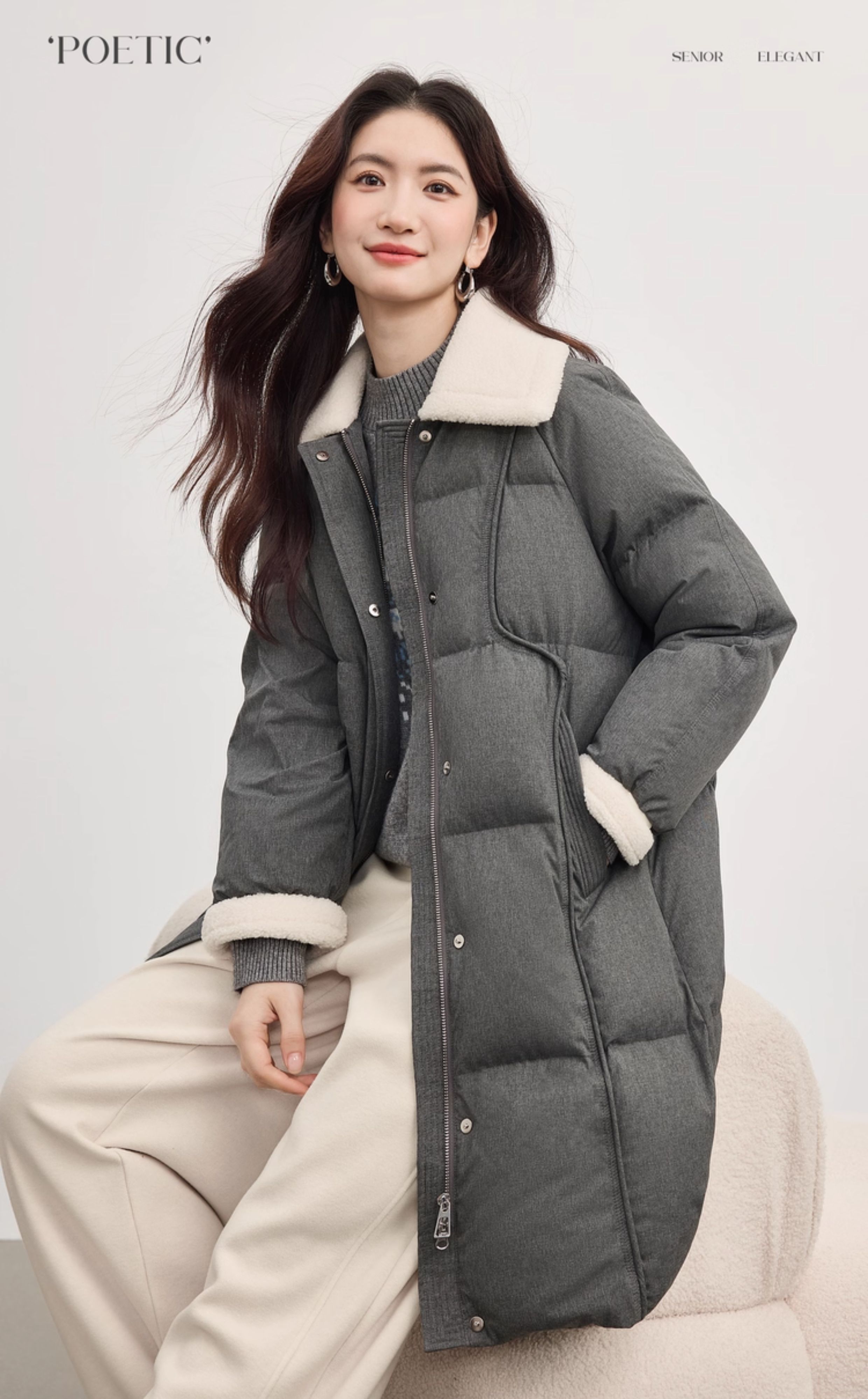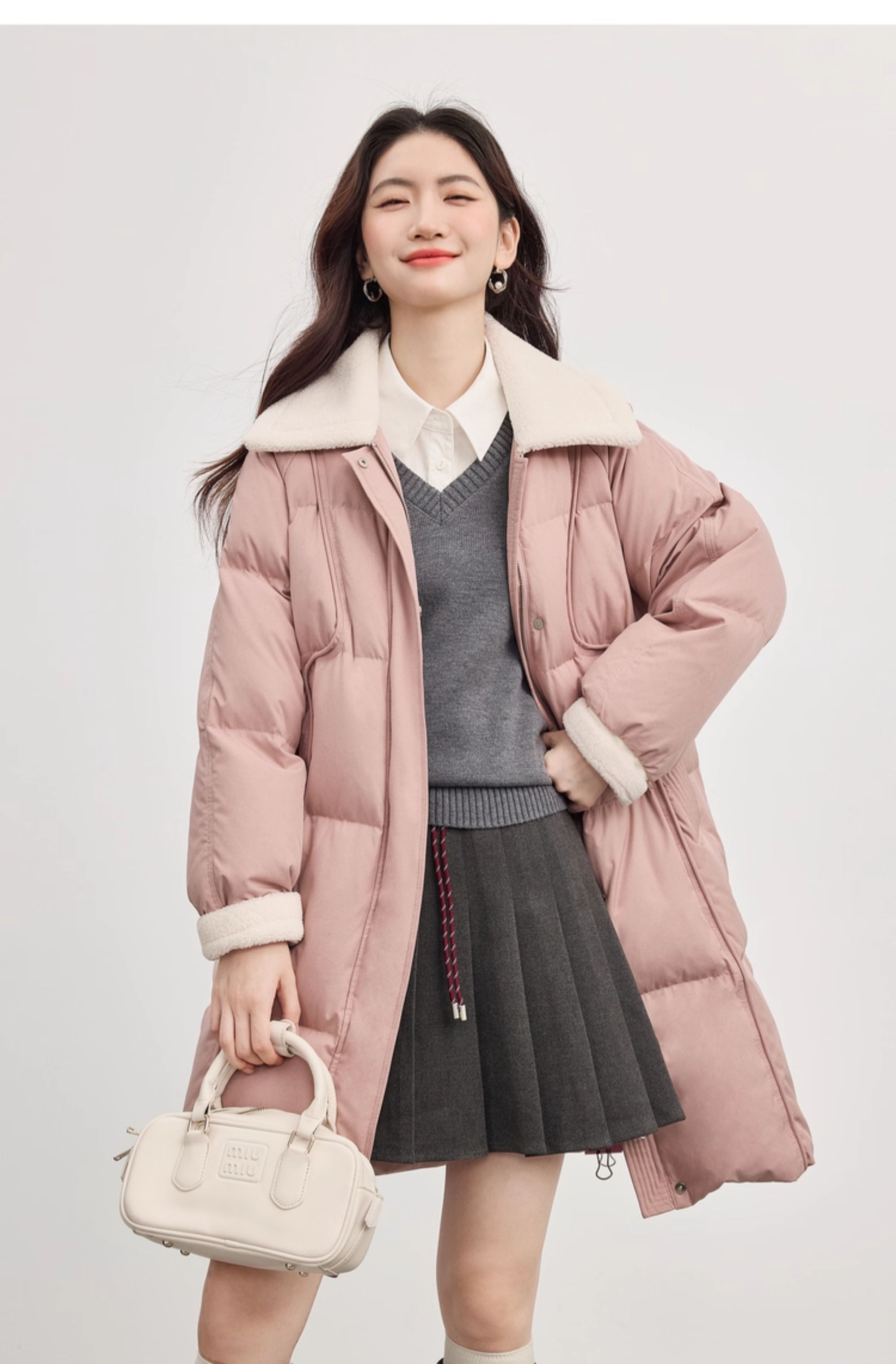 【10/15新品】熙世界重磅90白鸭绒羽绒服女中长款毛绒翻领保暖外套2025冬季新款