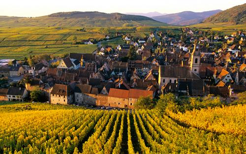 阿尔萨斯,是全法国最美丽的葡萄酒乡。葡萄园位于莱茵河西岸,在孚日山脉向东延伸的山脉上,风景如画的村庄以及令人肃然起敬的大教堂点缀其间。