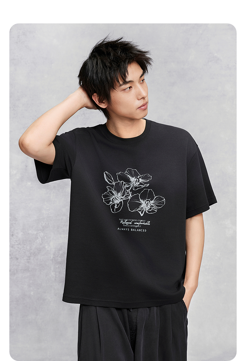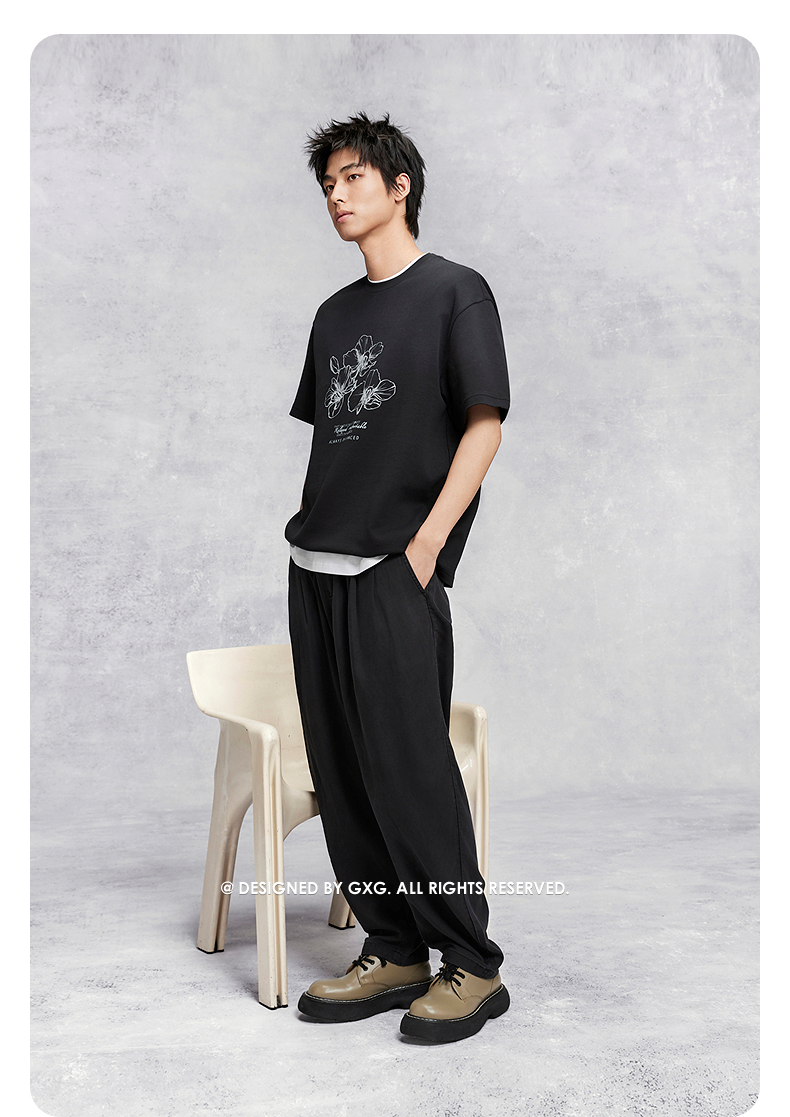 GXG男装 圆领T恤图案印花上衣短袖针织 2025年夏季热卖