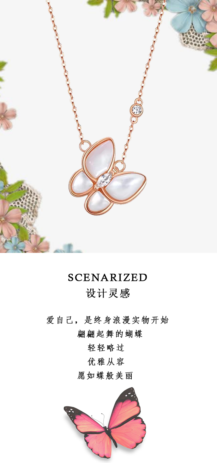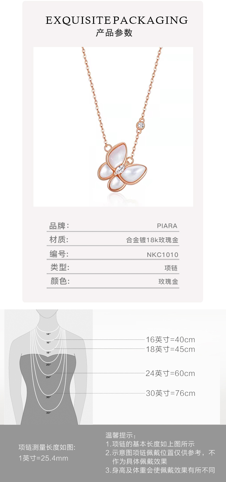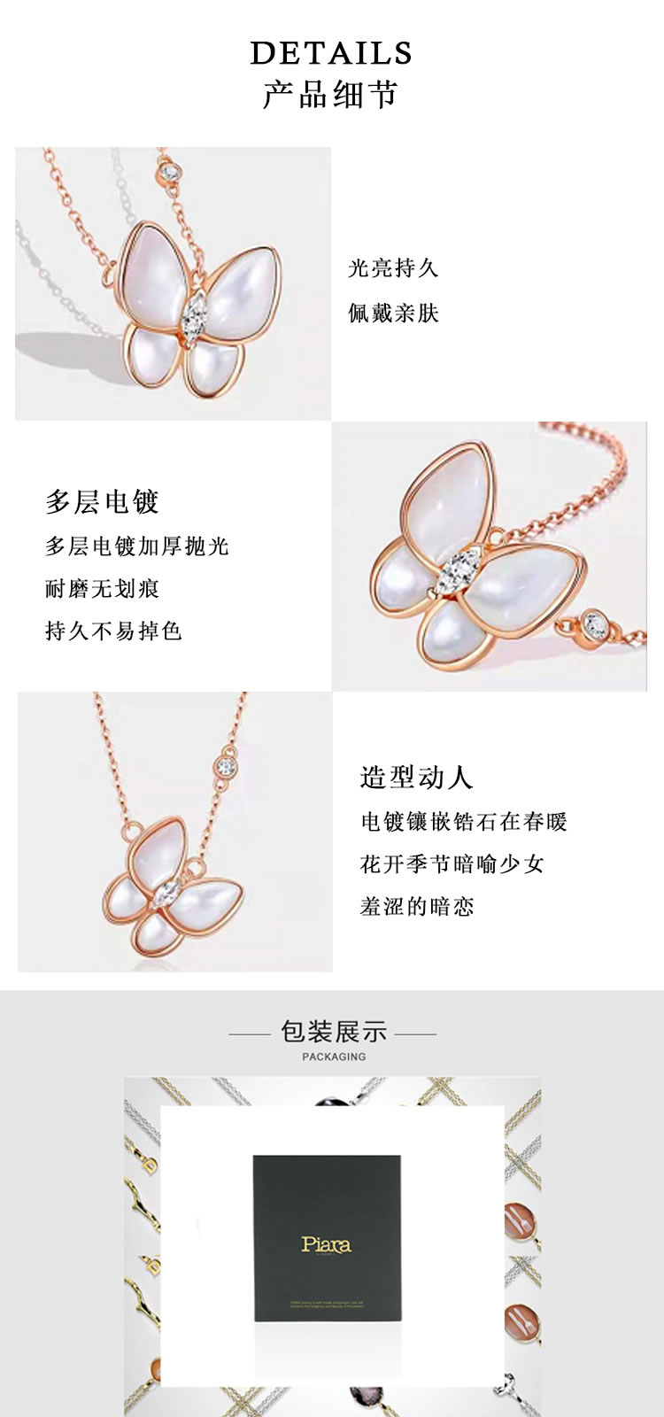 PIARA 天然母贝蝴蝶项链 简约百搭款锁骨链饰品NKC1010