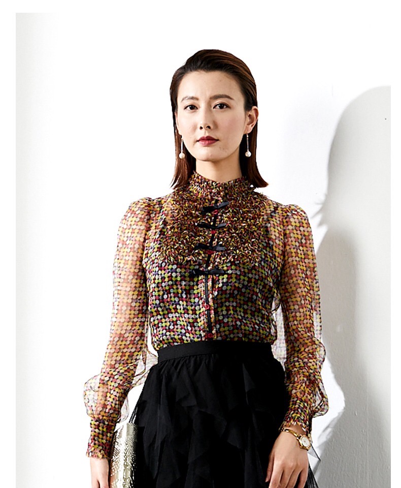 “巴洛克宫廷”颈袖添香新款时尚修身桑蚕丝雪纺衫上衣衬衣女式真丝衬衫J9233588(四季可穿)