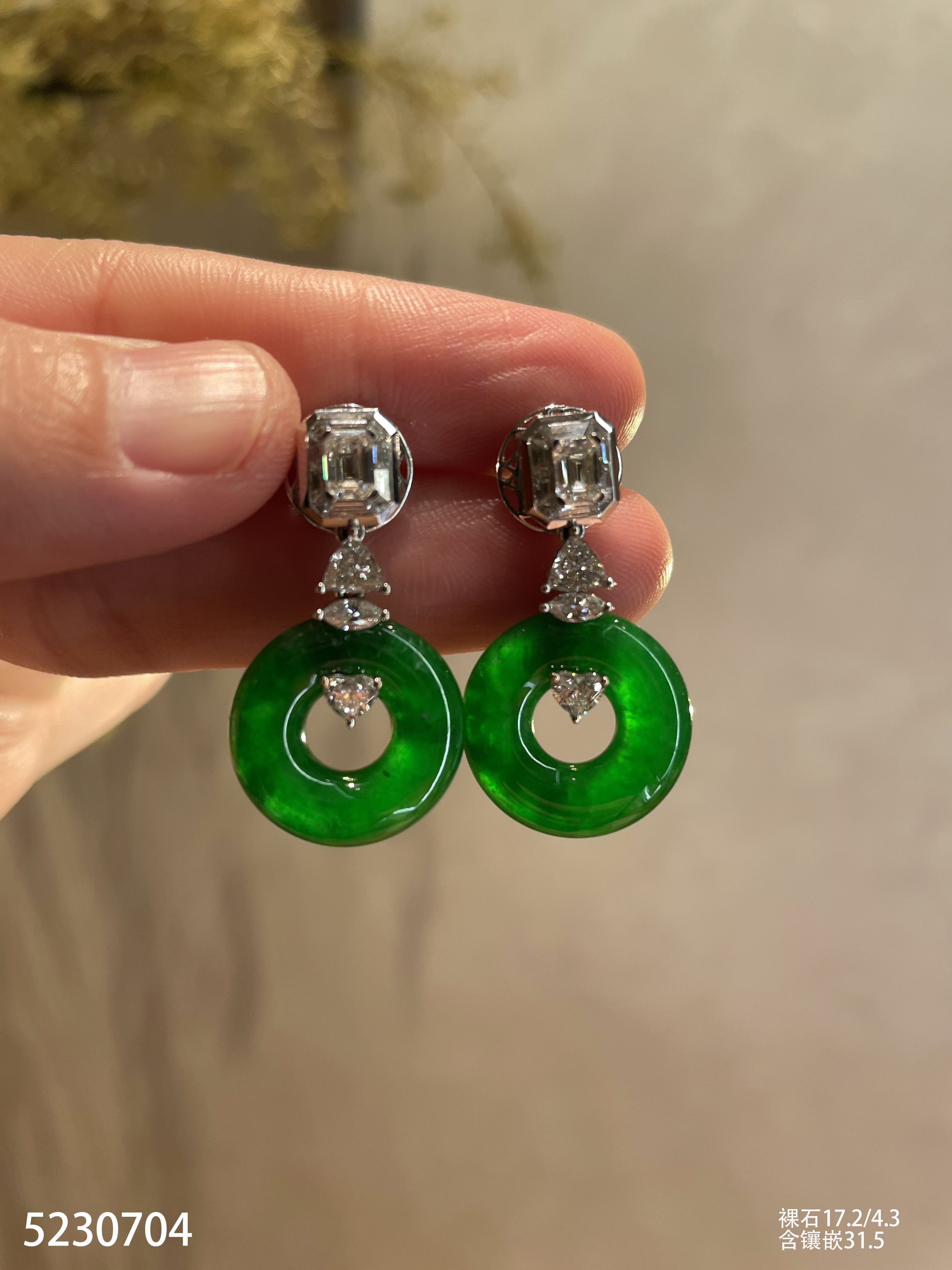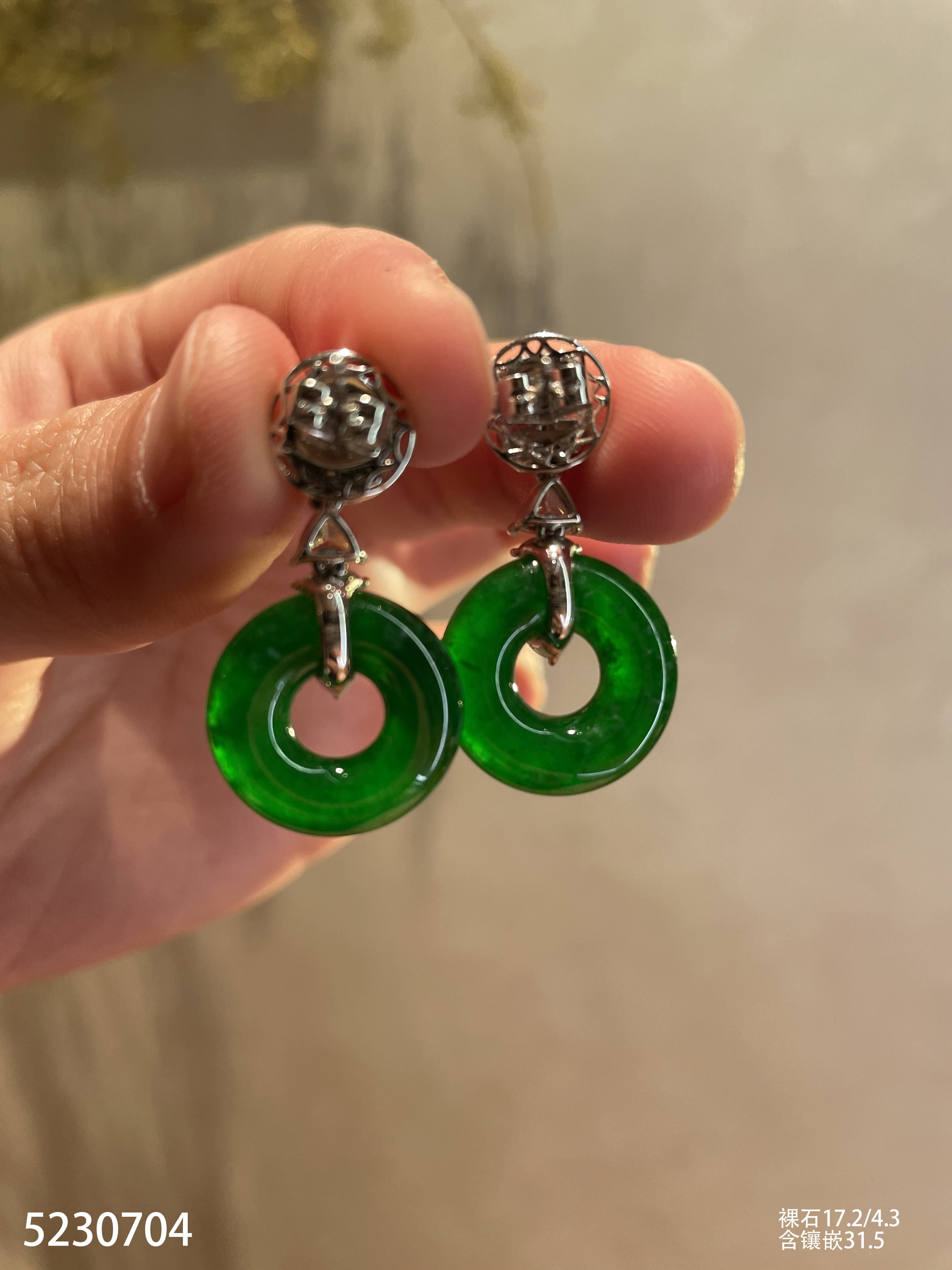 老坑帝王绿平安扣耳坠【5230704】具体价格微信咨询