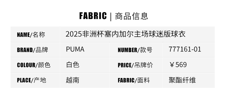 SFS彪马Puma 2025塞内加尔主场球迷版球衣短袖足球服男 777161-01