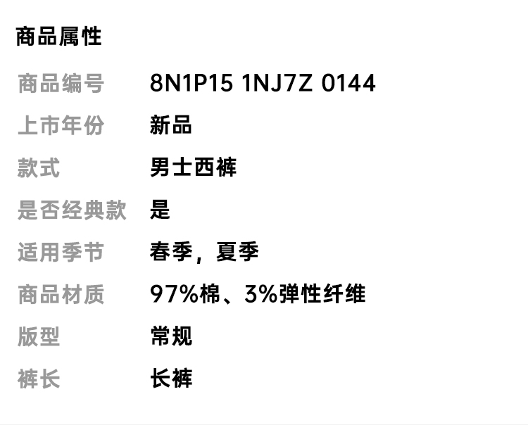 【一】EMPORIO ARMANI 阿玛尼 男士棉质修身长款直筒休闲裤 浅褐色 8N1P15 1NJ7Z 0144