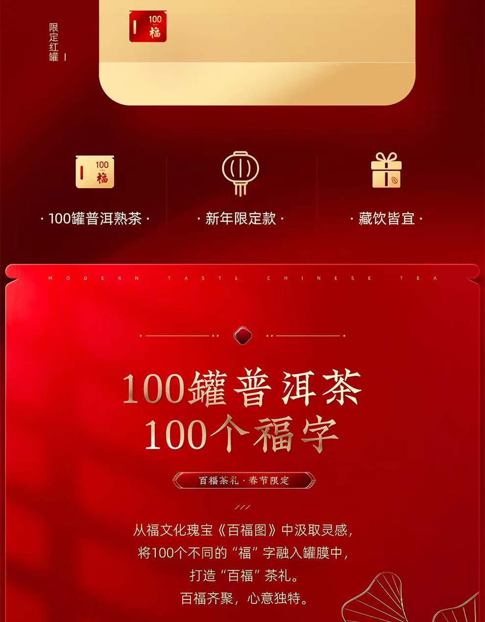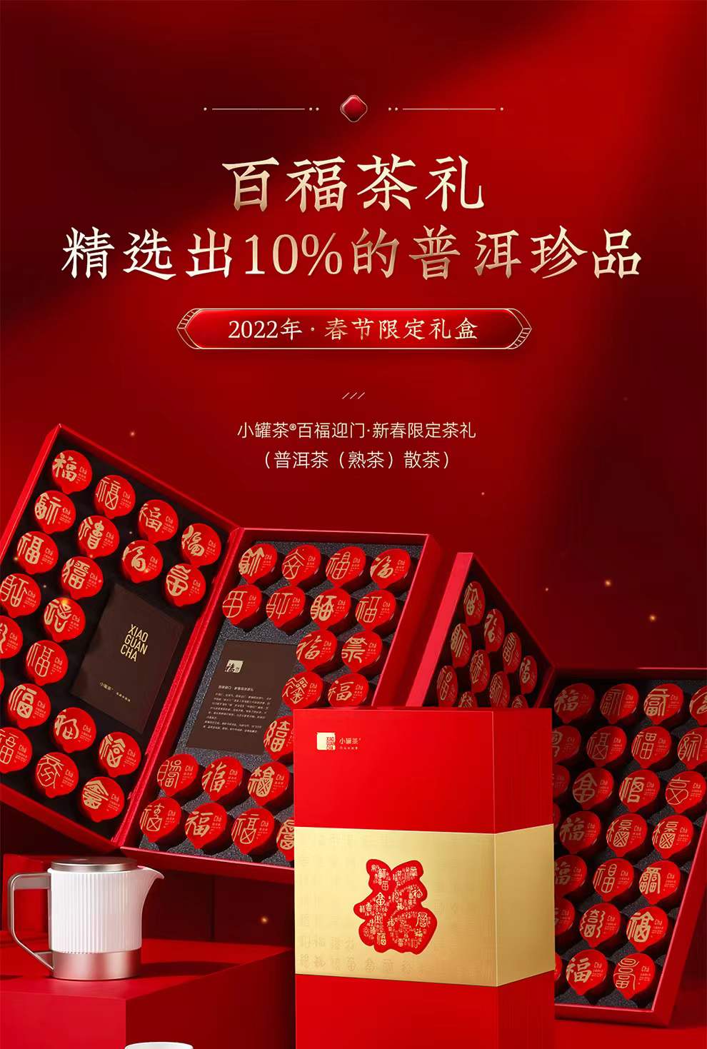 【外盒微瑕】小罐茶百福限定礼云南特级普洱熟茶茶叶礼盒装100罐400g限时送小罐茶茶具一套