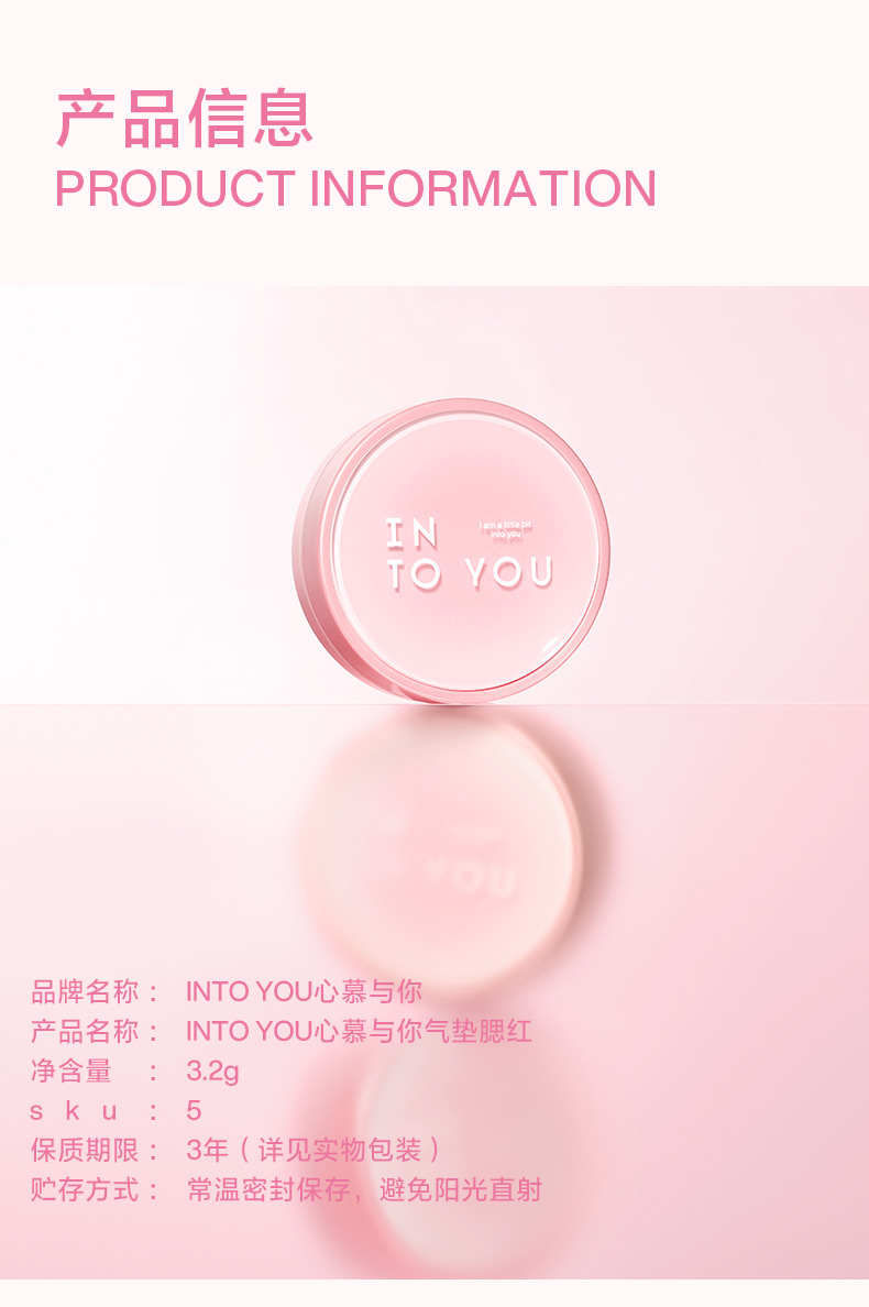 INTO YOU心慕与你 气垫腮红膏3.2g 持久便携 服帖匀净 48小时发货