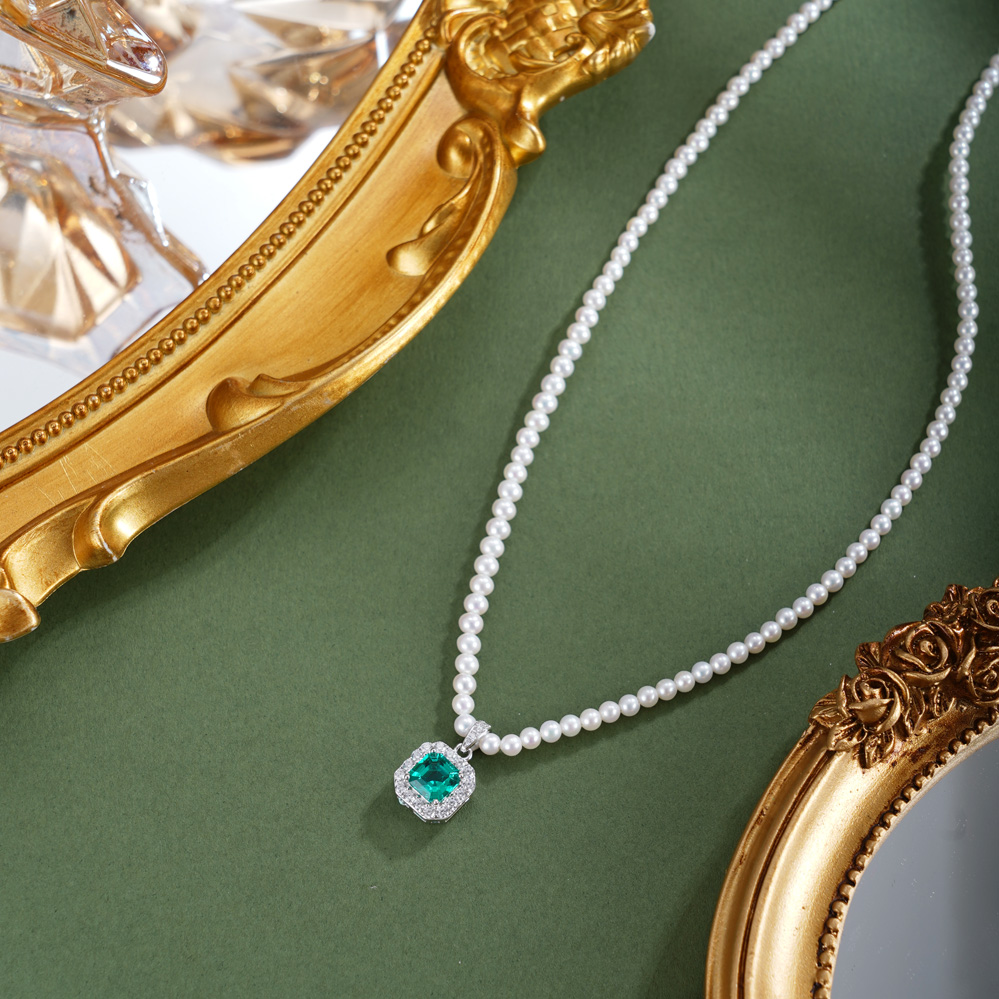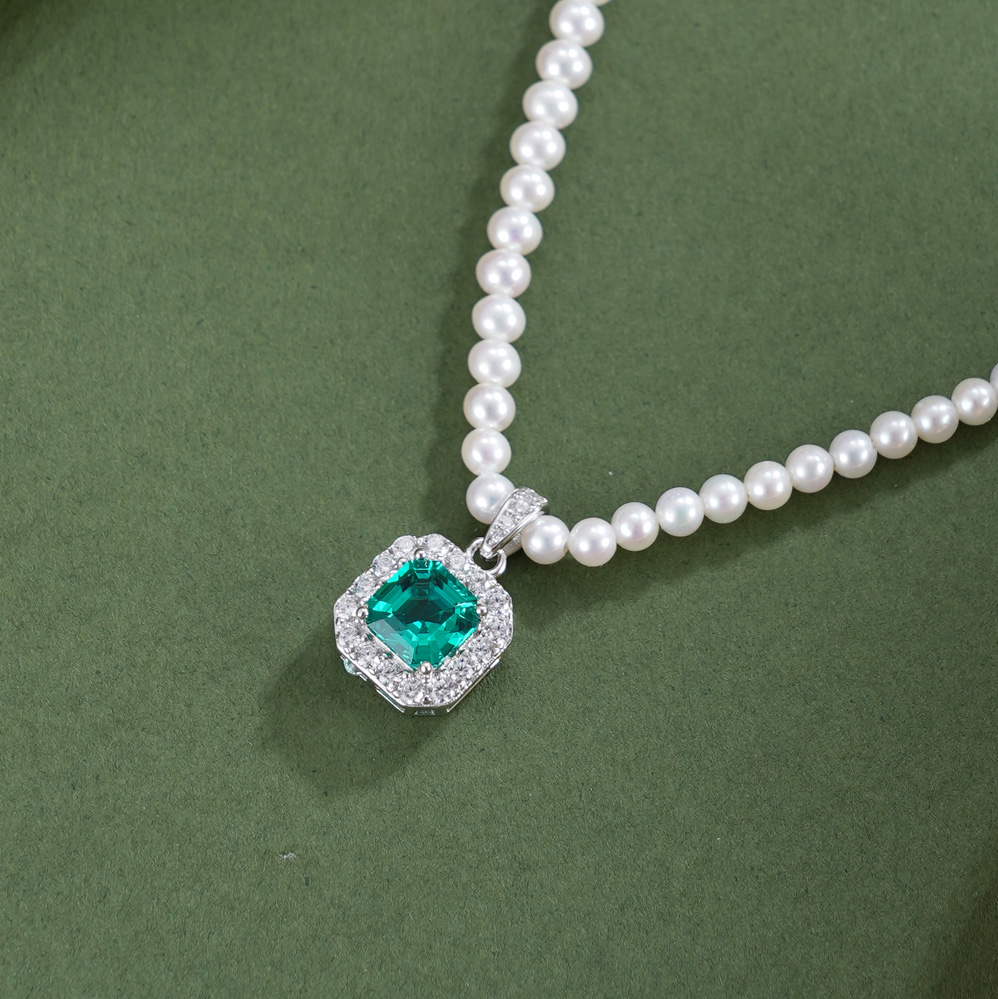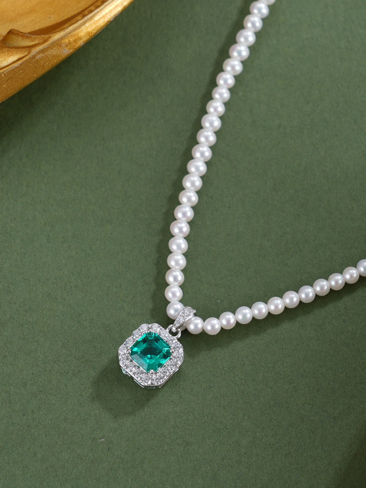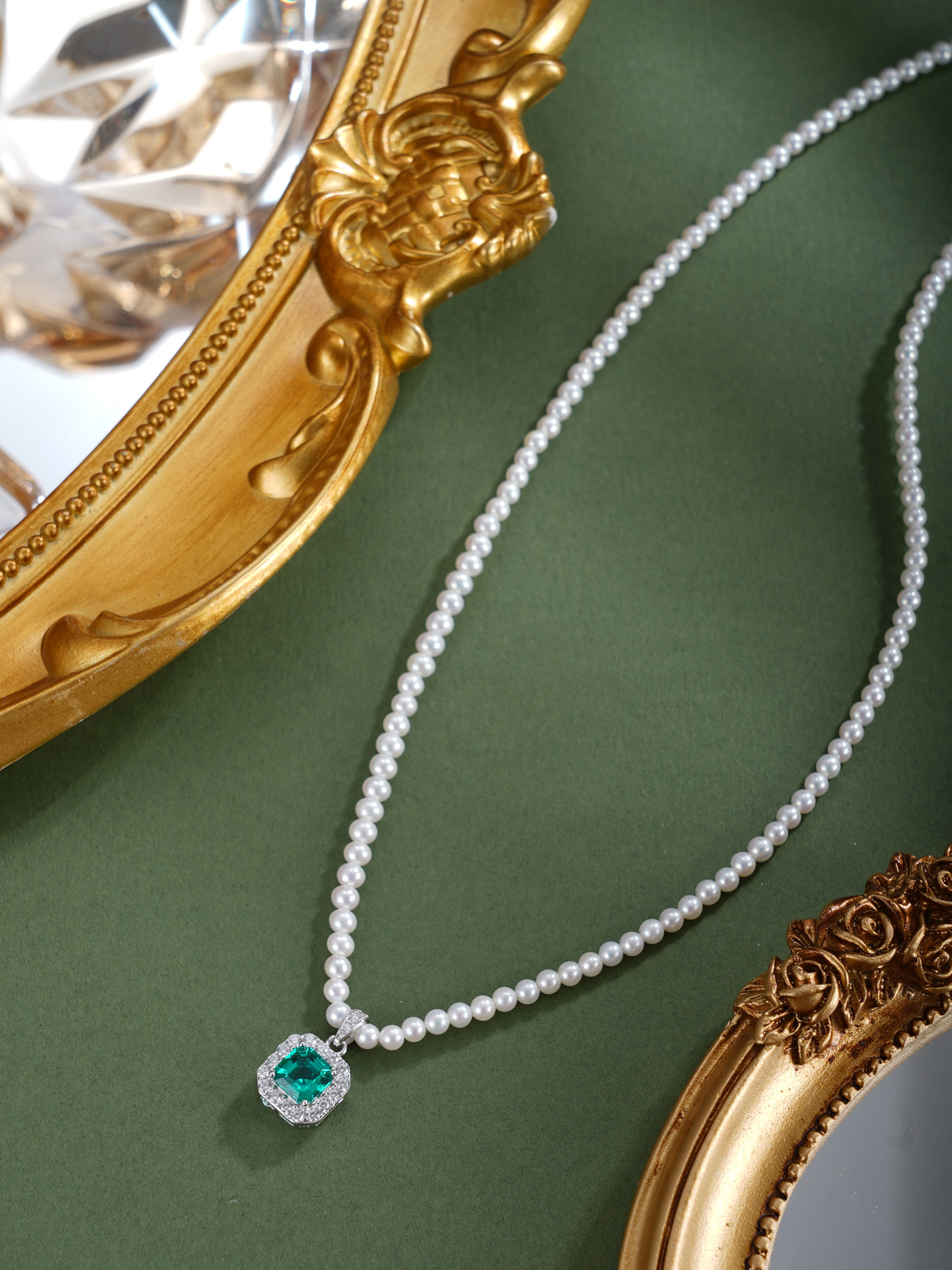 子佩集【碧海方糖】银S925珍珠惜王妃项链【ZZXL019】2.8mm珠绿方块2601