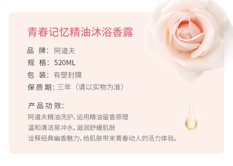 阿道夫 精油香护理专研 沐浴香露 青春记忆沐浴乳 520ml 48小时发货
