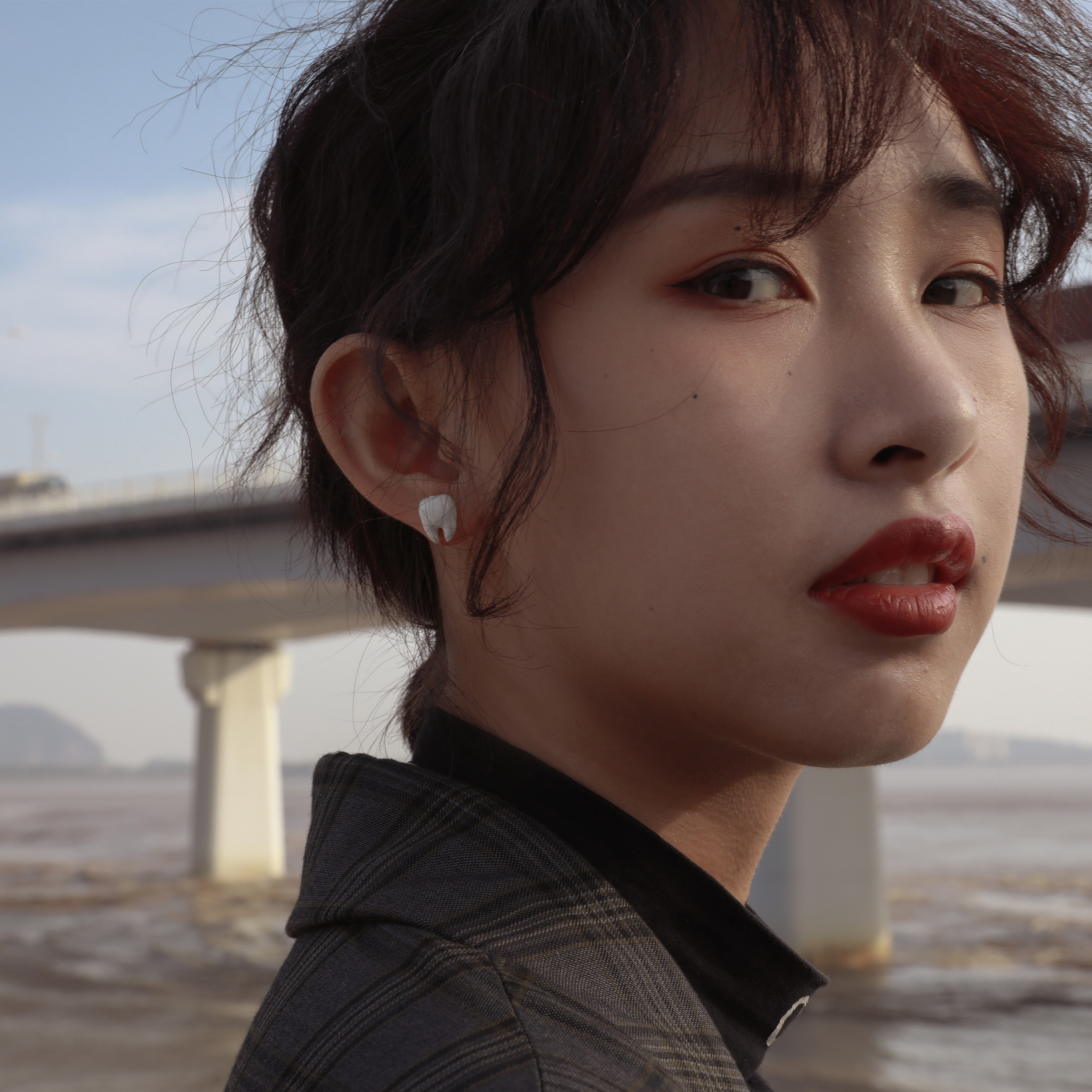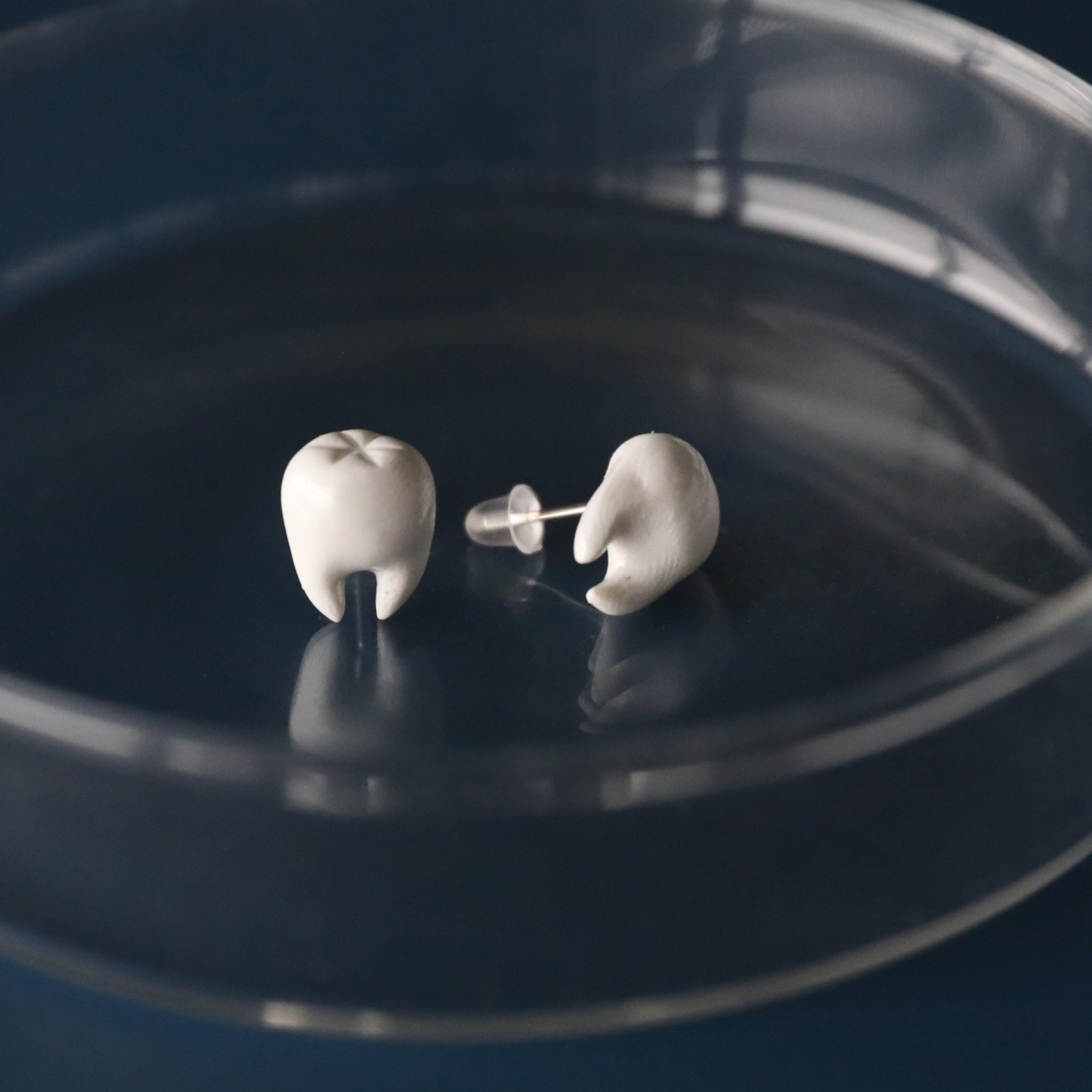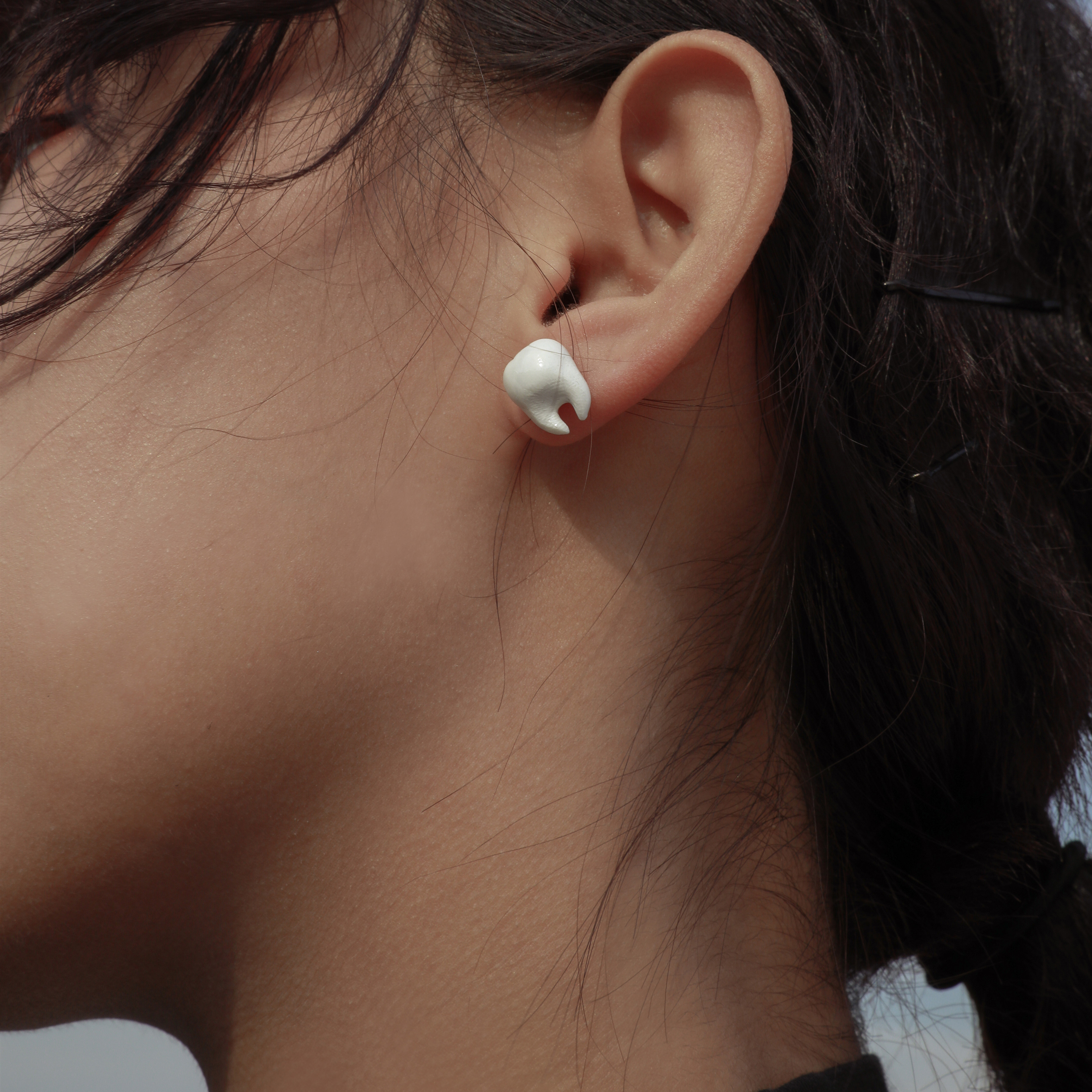 七口『迷你纯白牙齿』 |手工软陶黏土耳环饰