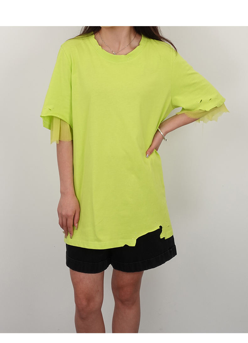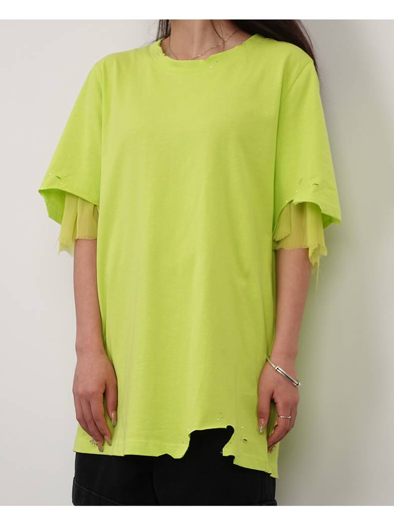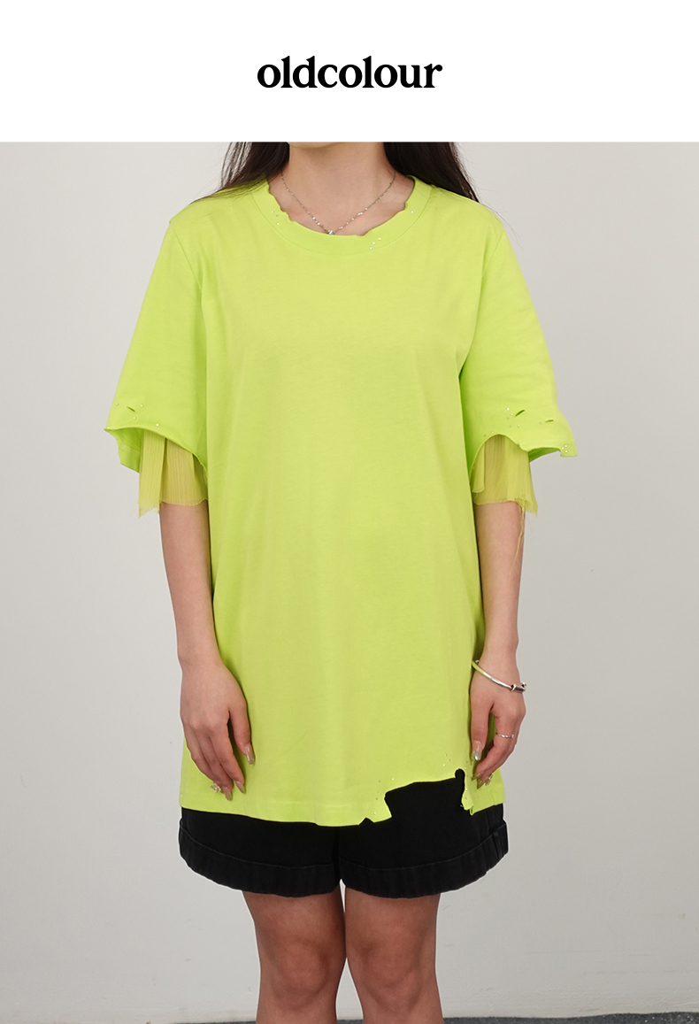 oldcolour夏宽松百搭休闲慵懒纯色上衣中长款圆领T恤N24021404